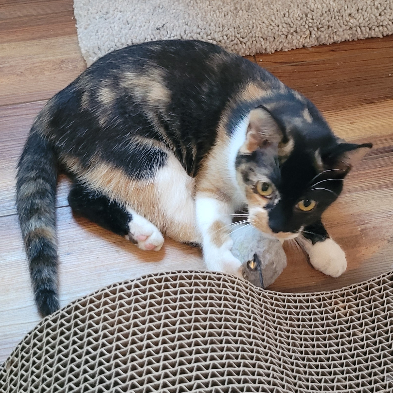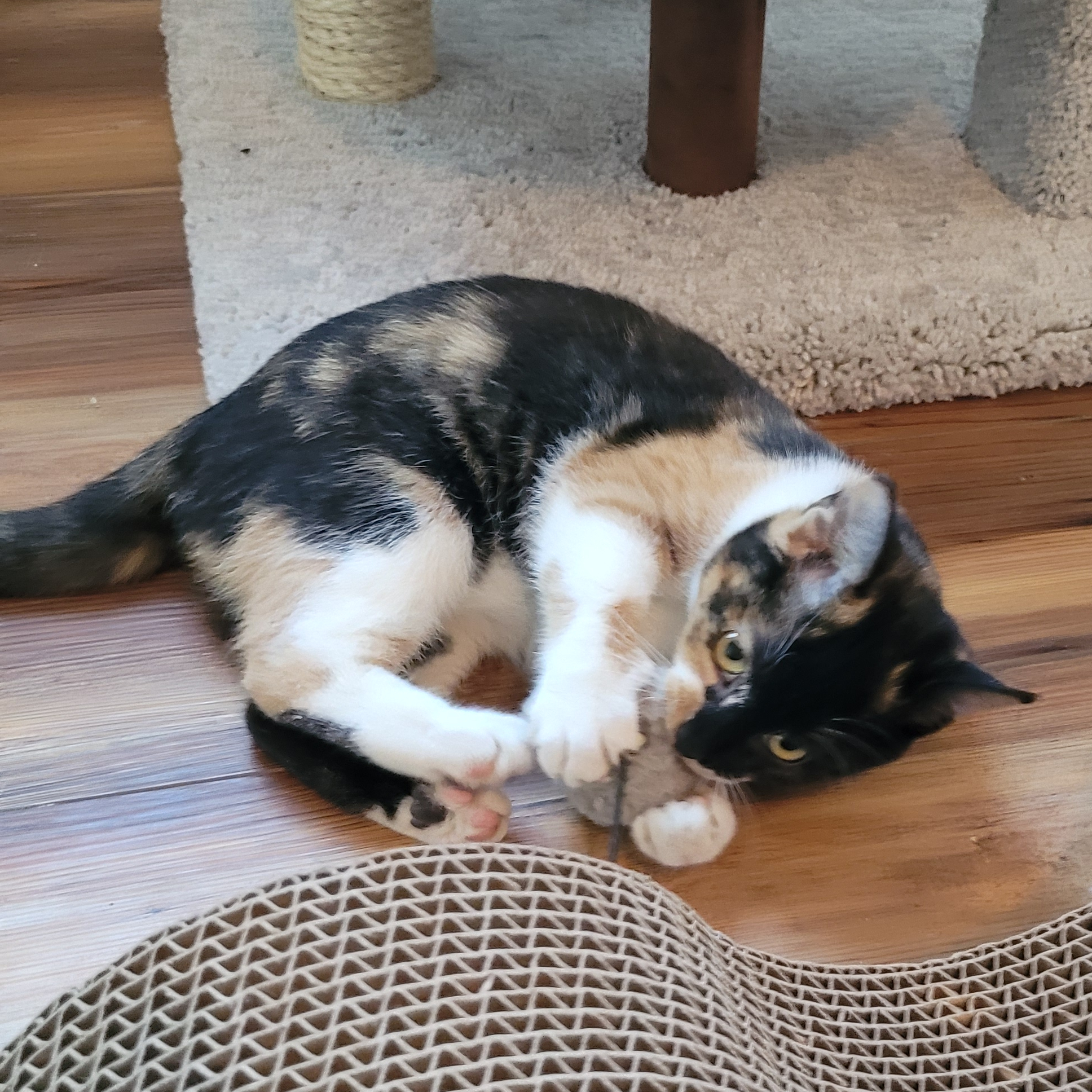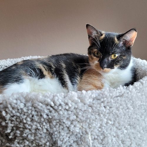 Angelica was emaciated and sick when she came to us as a tiny baby. She struggled to gain weight for quite a while, but now she's a happy and healthy girl! She is sweet and cuddly, cute and funny, playful and silly. She is the complete, small package.