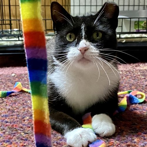 Meet two-year-old April! This sweet girl may be a little shy at first, but her gentle nature quickly wins you over. She’ll peek out to observe new people from a safe distance, taking her time to feel comfortable—but once she does, you’ll see just how special she is. April absolutely loves other cats and would thrive in a home with a feline friend. Whether she’s snuggling up for a cozy nap or chasing her buddies around, she really comes to life with companionship. And don’t let April’s petite size fool you—she’s got a slightly chubby little figure that just adds to her charm! She’s also very food motivated, which makes bonding with her (and winning her trust) that much easier. This girl has come a long way since being rescued while caring for her babies, and she’s ready to find a safe, loving home of her own. April’s favorite things include sunny windows, cozy hideaways, and tall cat trees where she can perch and observe the world. When it’s playtime, she goes crazy for feather toys, laser pointers, and fluffy mice. With a little patience and a lot of love, April will blossom into an incredibly devoted companion.