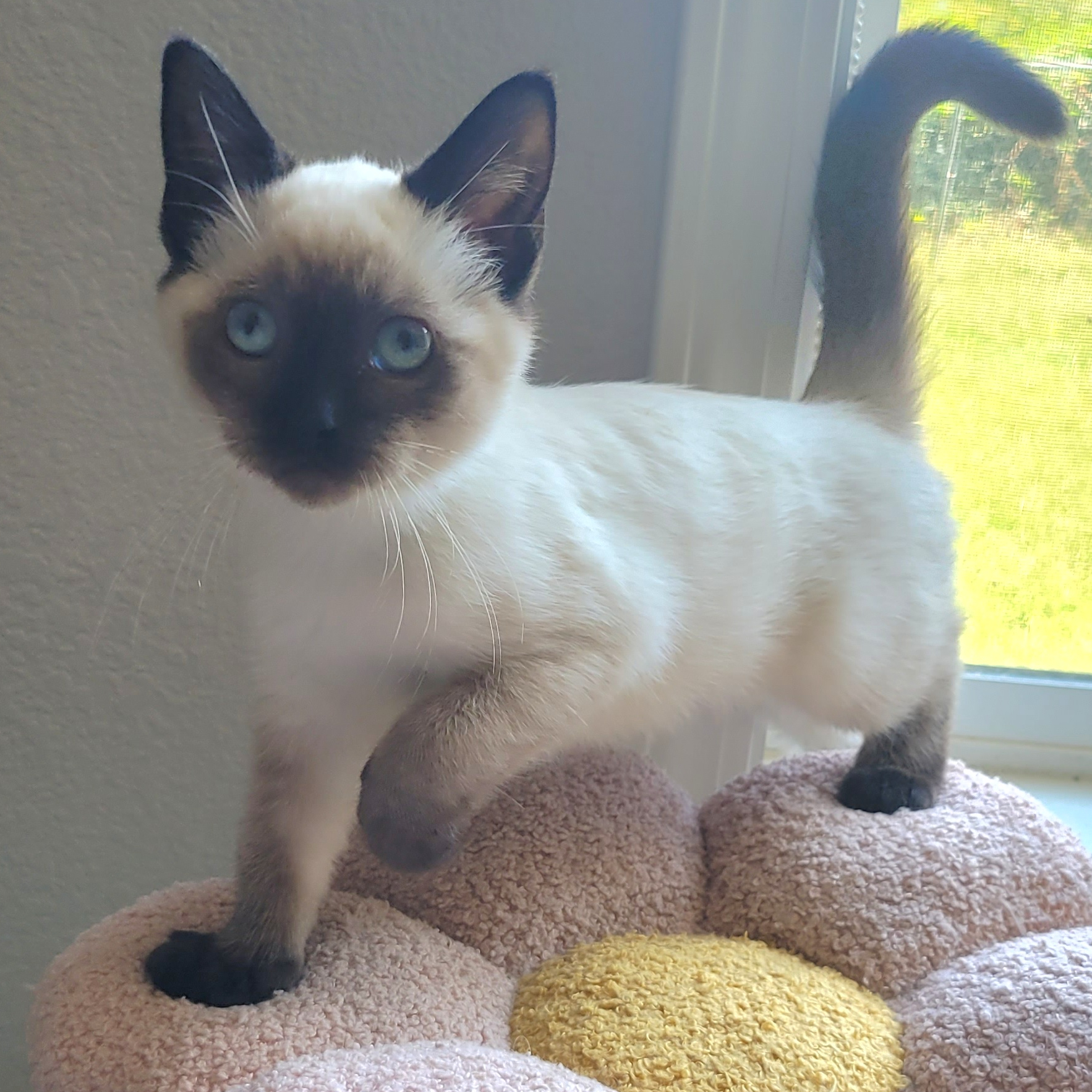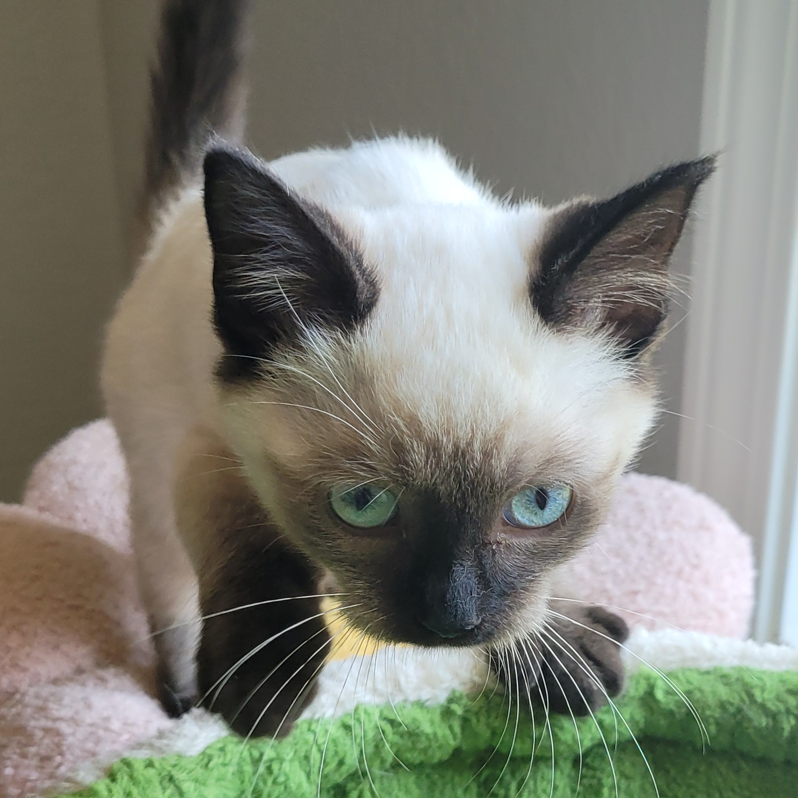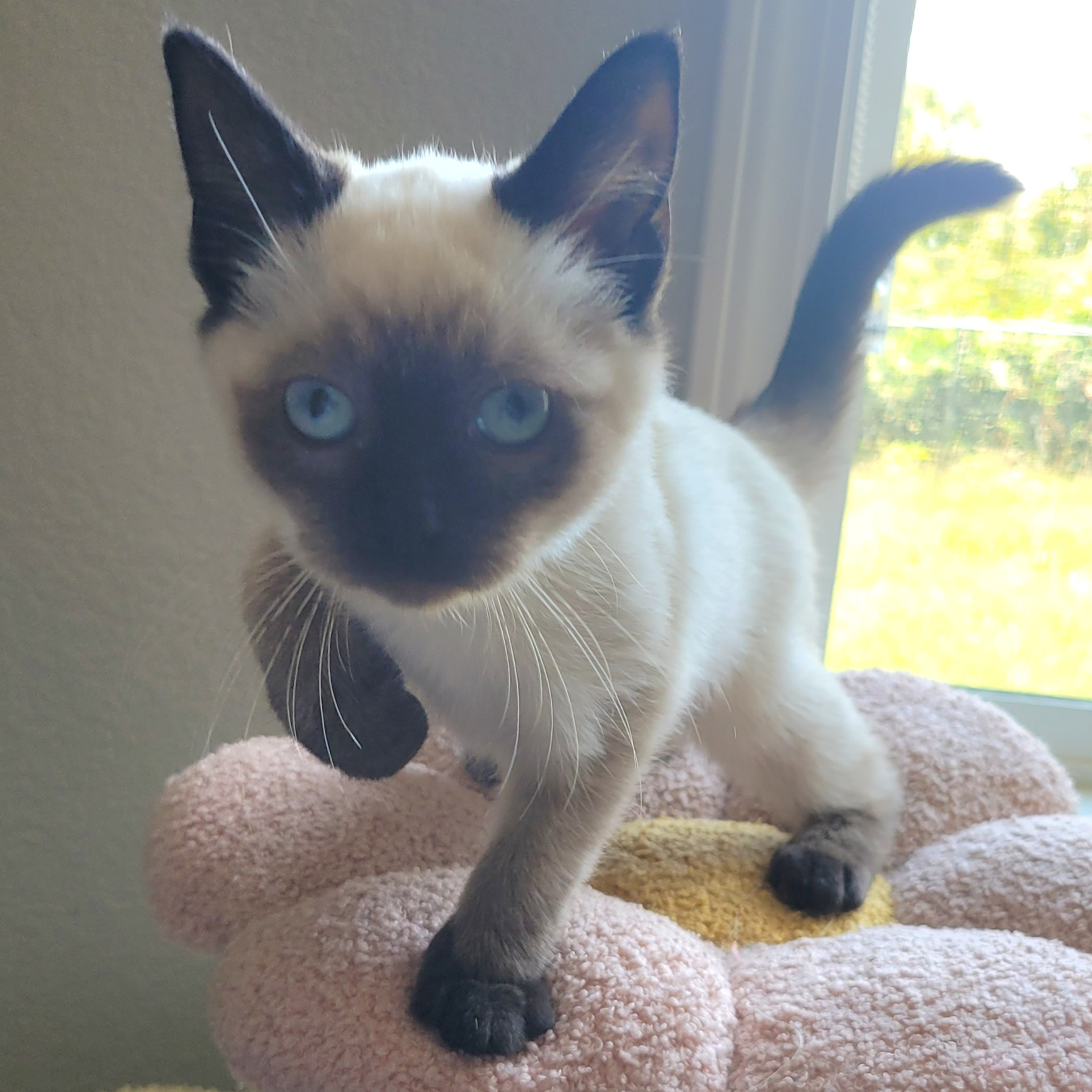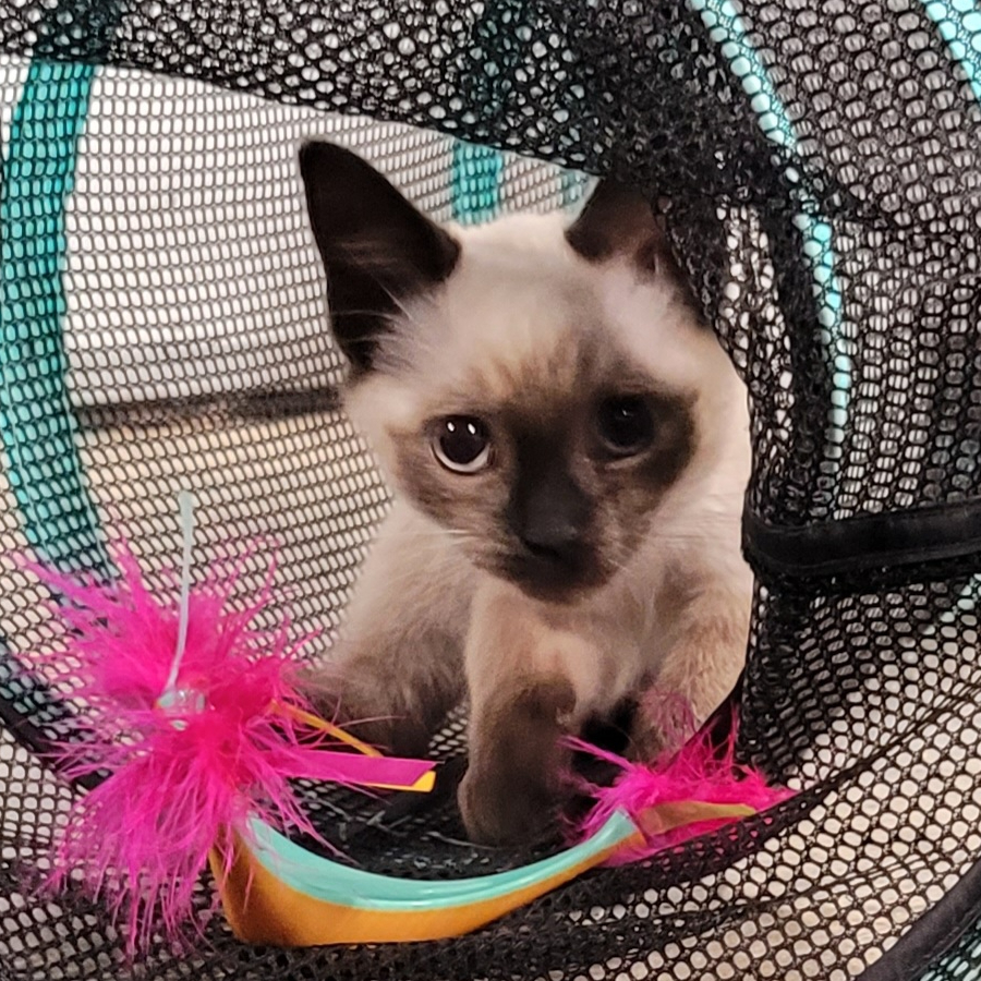 Autumn is a lively little girl! She loves to play, play, play! She'll play with any toy she can find and she thinks playing with her brother is pretty fun too! Autumn is friendly and likes to rub her face on you. She's a little too busy for cuddles at this age, but if you catch her in a sleepy moment, you may get a quick snuggle in!