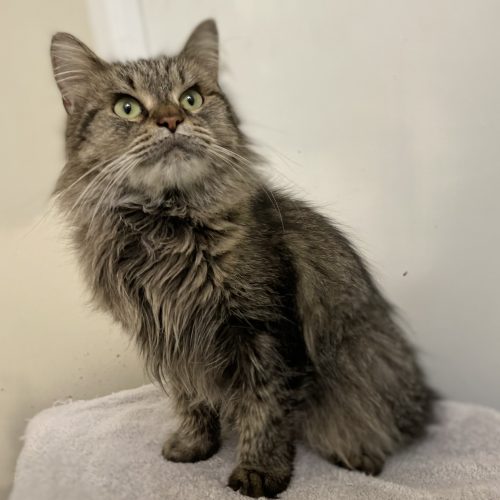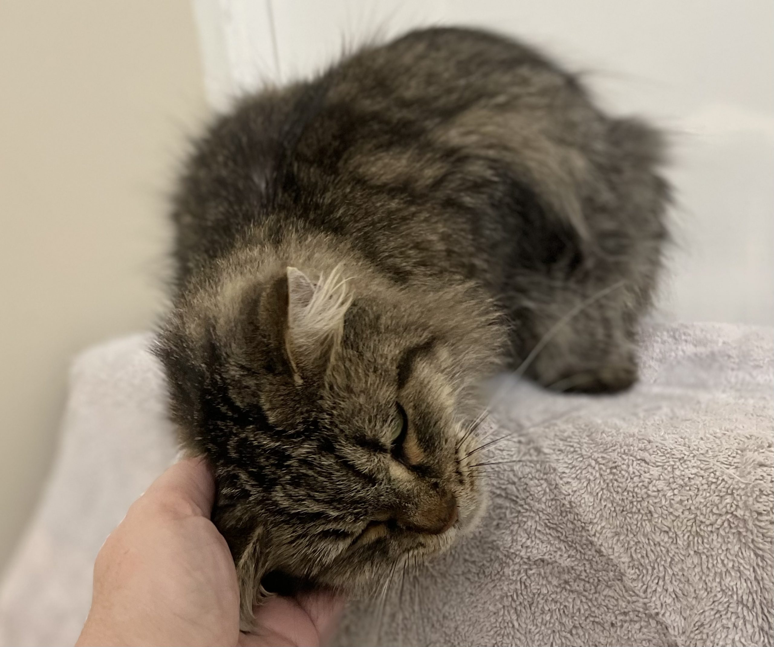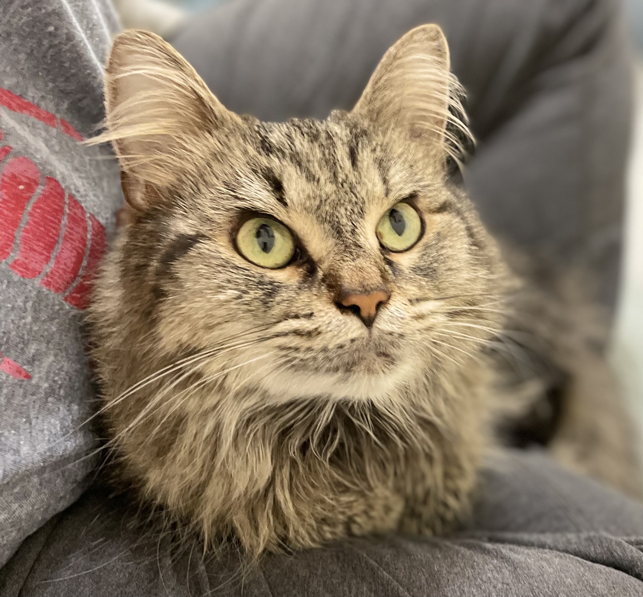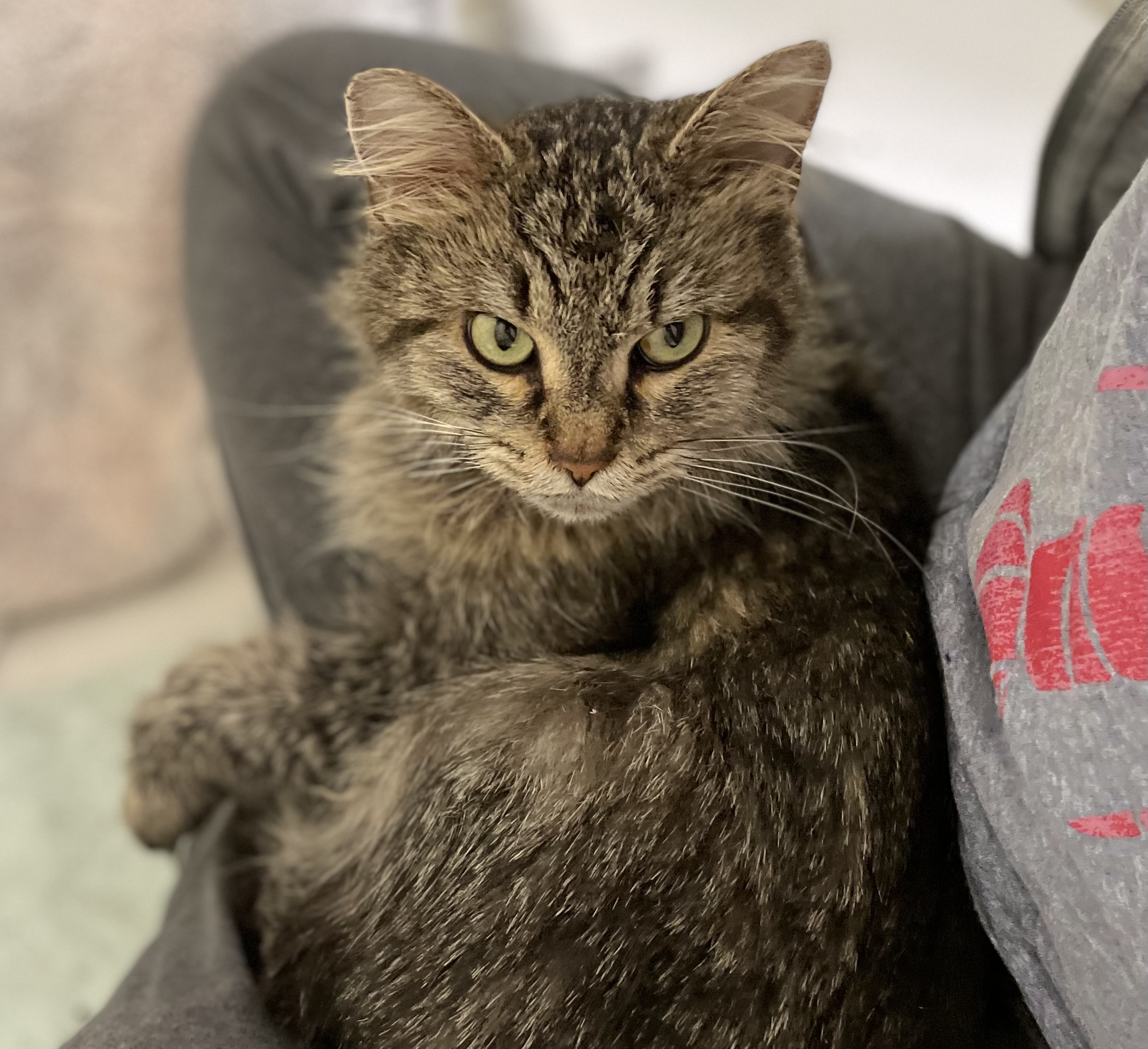 Did you ever meet someone who had a stern resting er, um, "grump" face, almost seeming unapproachable, but then when you get to know them you realize how sweet they are? Well if that person were a cat, they would be Blisskit. One year old Blisskit has that natural judgemental look, but you soon realize it's just a look masking her sweet personality. Beautiful Blisskit is all about the pets, purrs, and cuddles. Blisskit was rescued when she was dumped at a feral colony we had previously helped with TNR. The feeders called us immediately asking for help with this skinny girl. After a bath and additional "spa" treatments, Blisskit has made herself at home with a foster letting us know she prefers the inside life with a readily available warm lap.