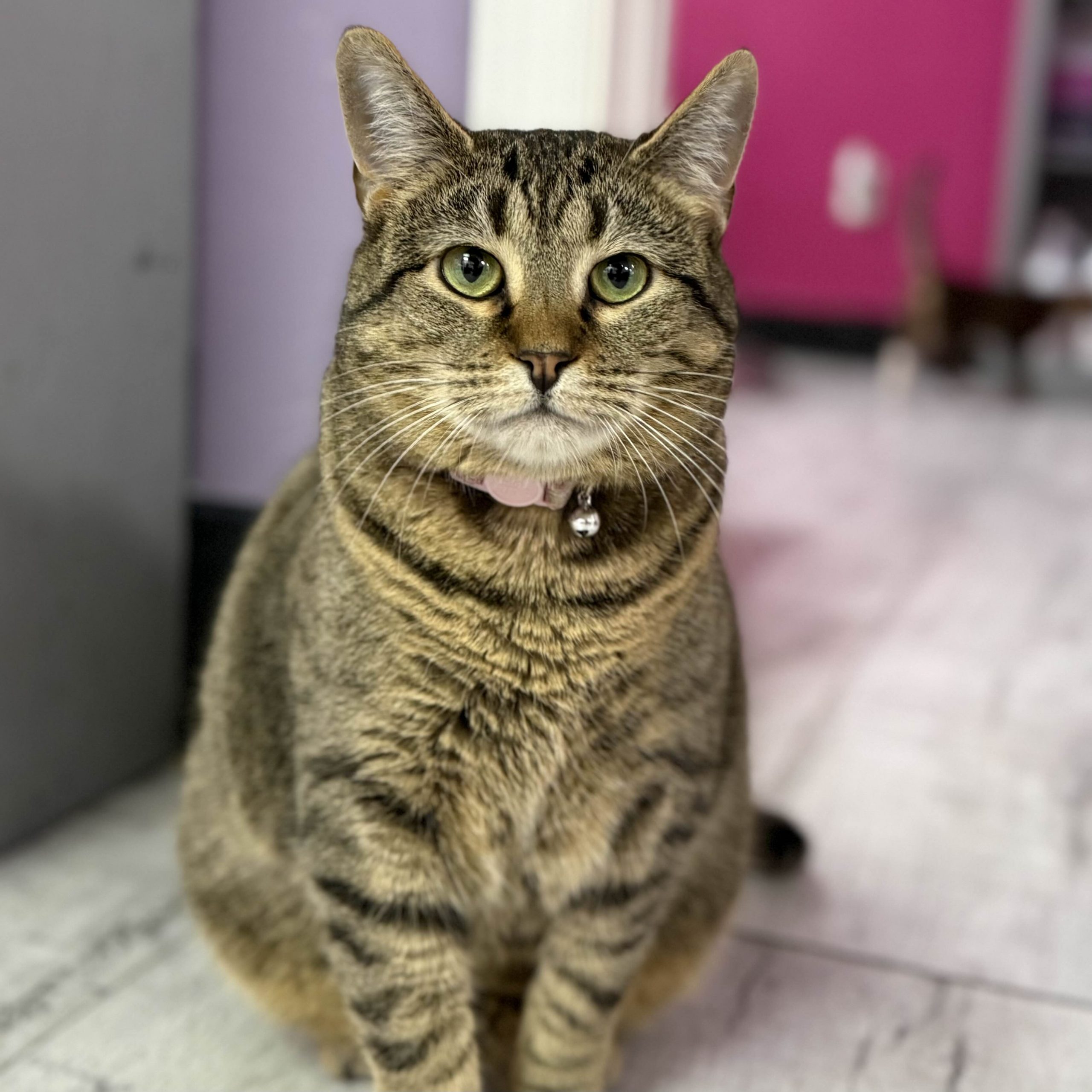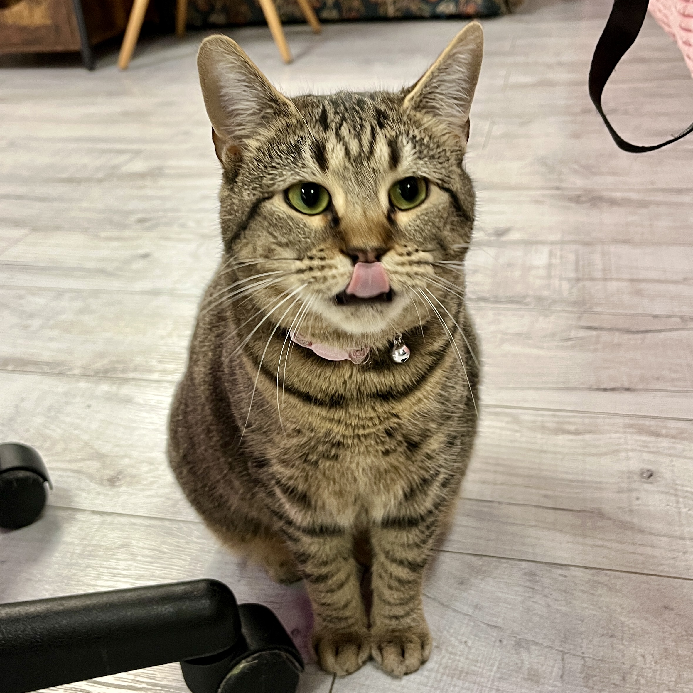 Meet Bossy, the queen herself who knows she deserves all your attention! She’s a gentle, affectionate girl who loves spending her days lounging on the couch and hanging out with everyone. Though calm and easygoing, she has a playful streak that comes out with wand toys, cat tunnels and the occasional crinkle toy. Bossy is social, sweet, and loves to follow her favorite people around purring for pets! She gets along wonderfully with other cats and would make a loving addition to any family ready to treat her like the royalty she is!