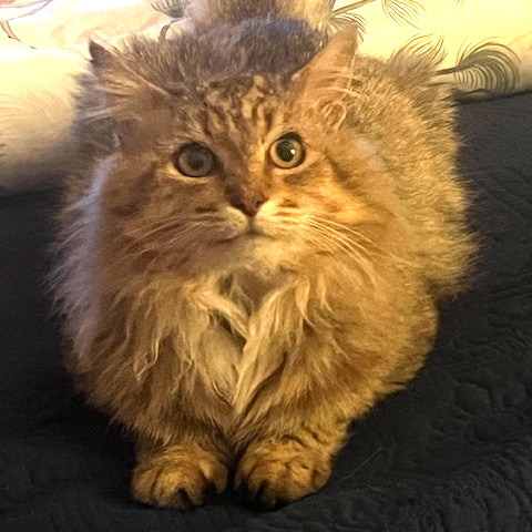 Hi! My name is Buckaroo but my foster Mommy calls me “Roo Roo.” I’m about 4 years old and I love affection and pets. I’m always up for as much time and attention as you can give me! I would love a home that is calm, quiet and I can sit for snuggles!