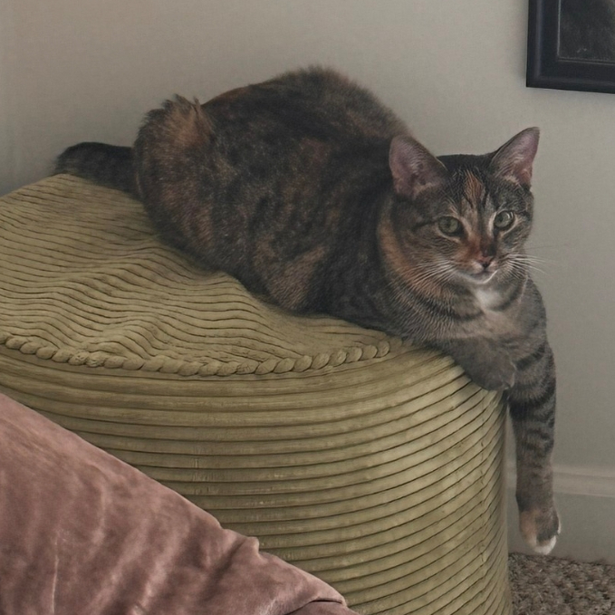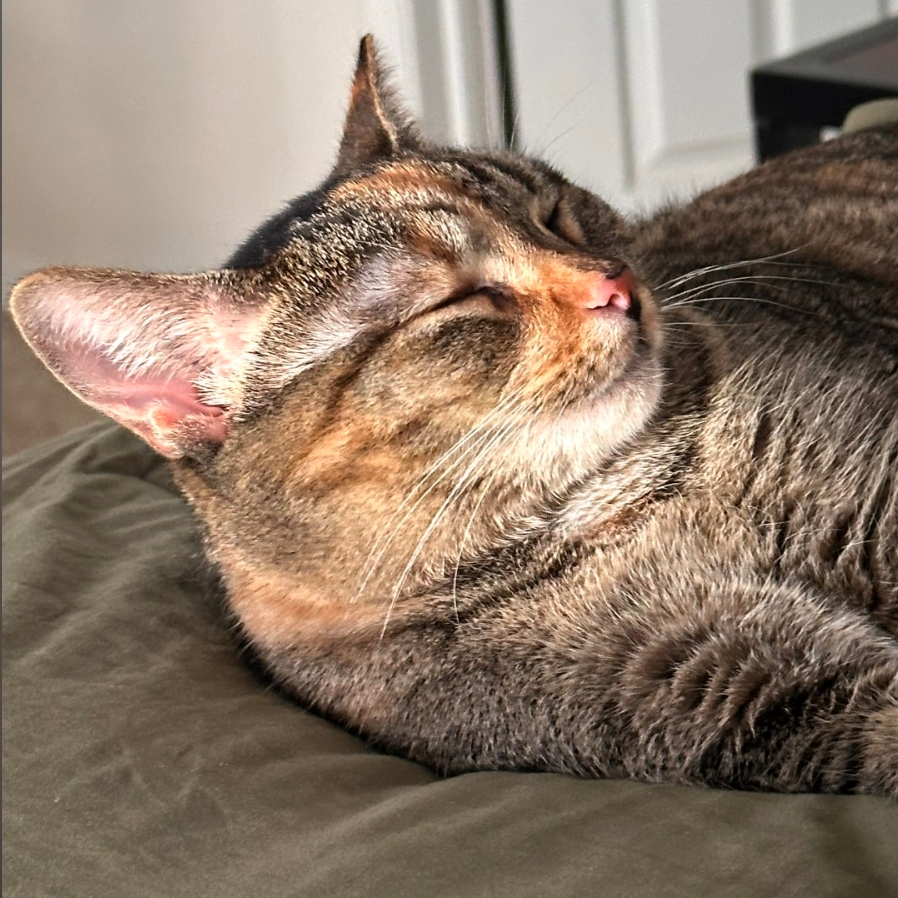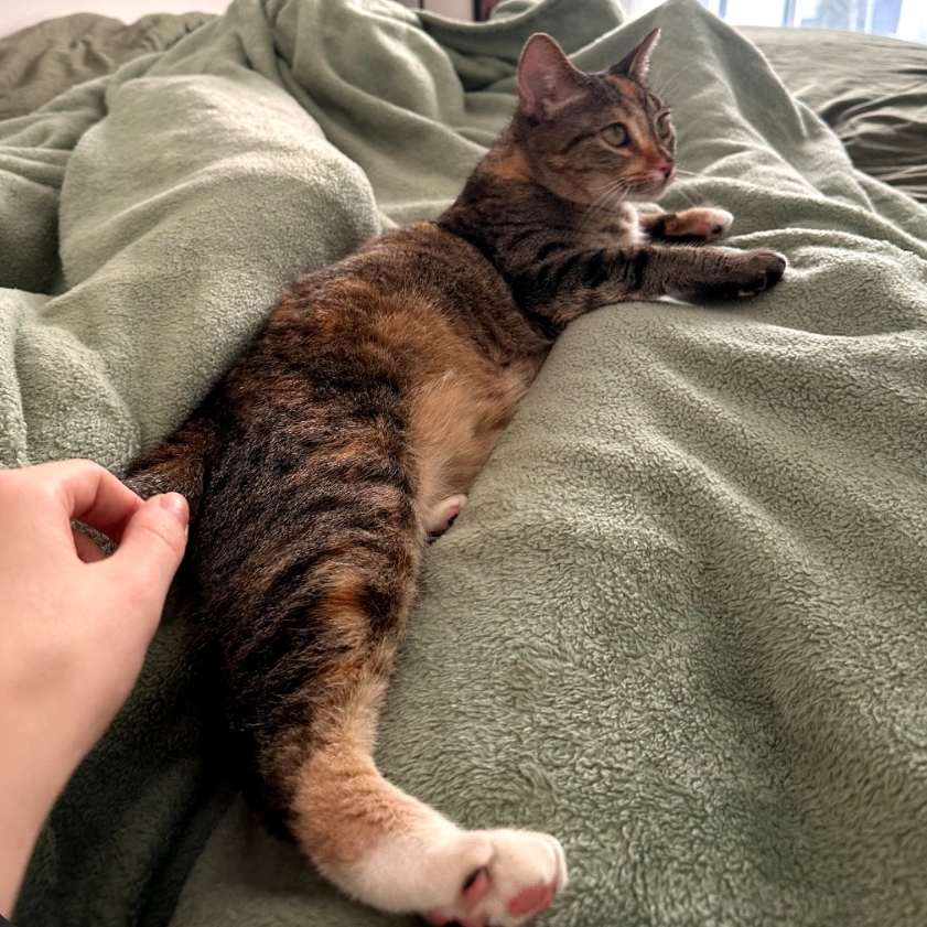 Callie has had a few bumps in the road of life and she's not even a year old. However, this girl is very resilient. She has handled each curve with grace and confidence. Callie is very friendly. She likes to sit on the couch with you or play with her toys and climb her cat tree. She would most likely be fine with small dogs.