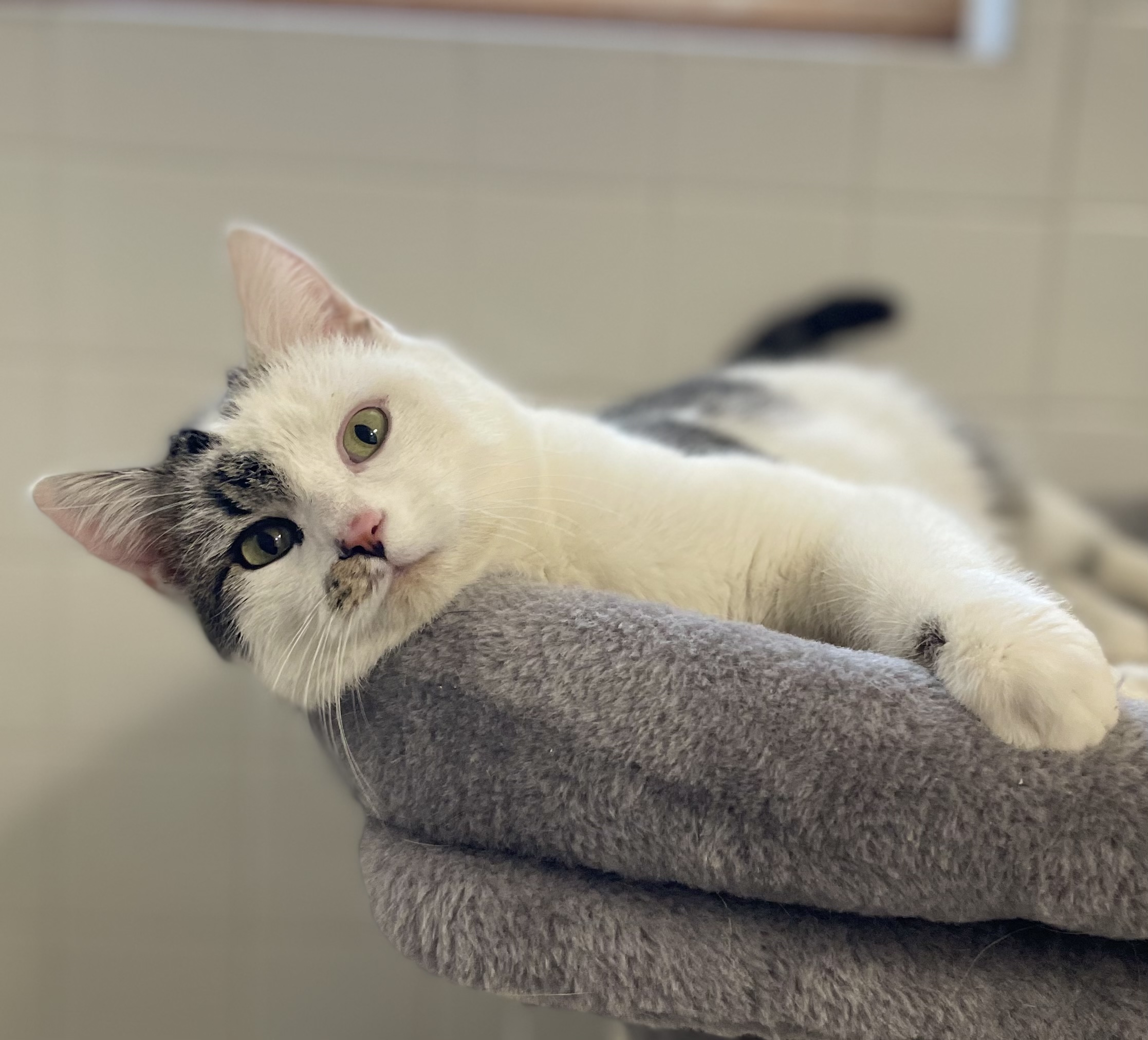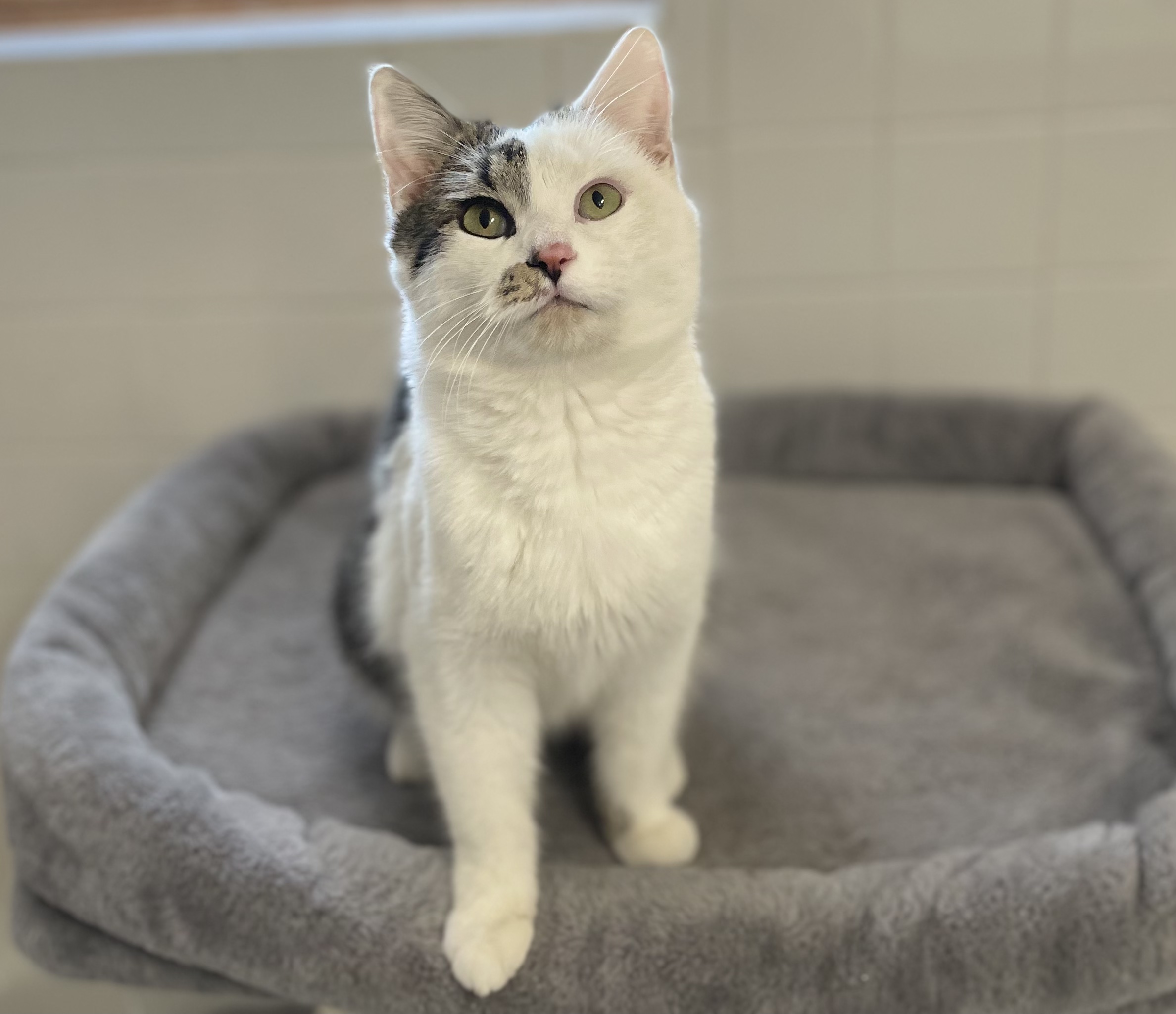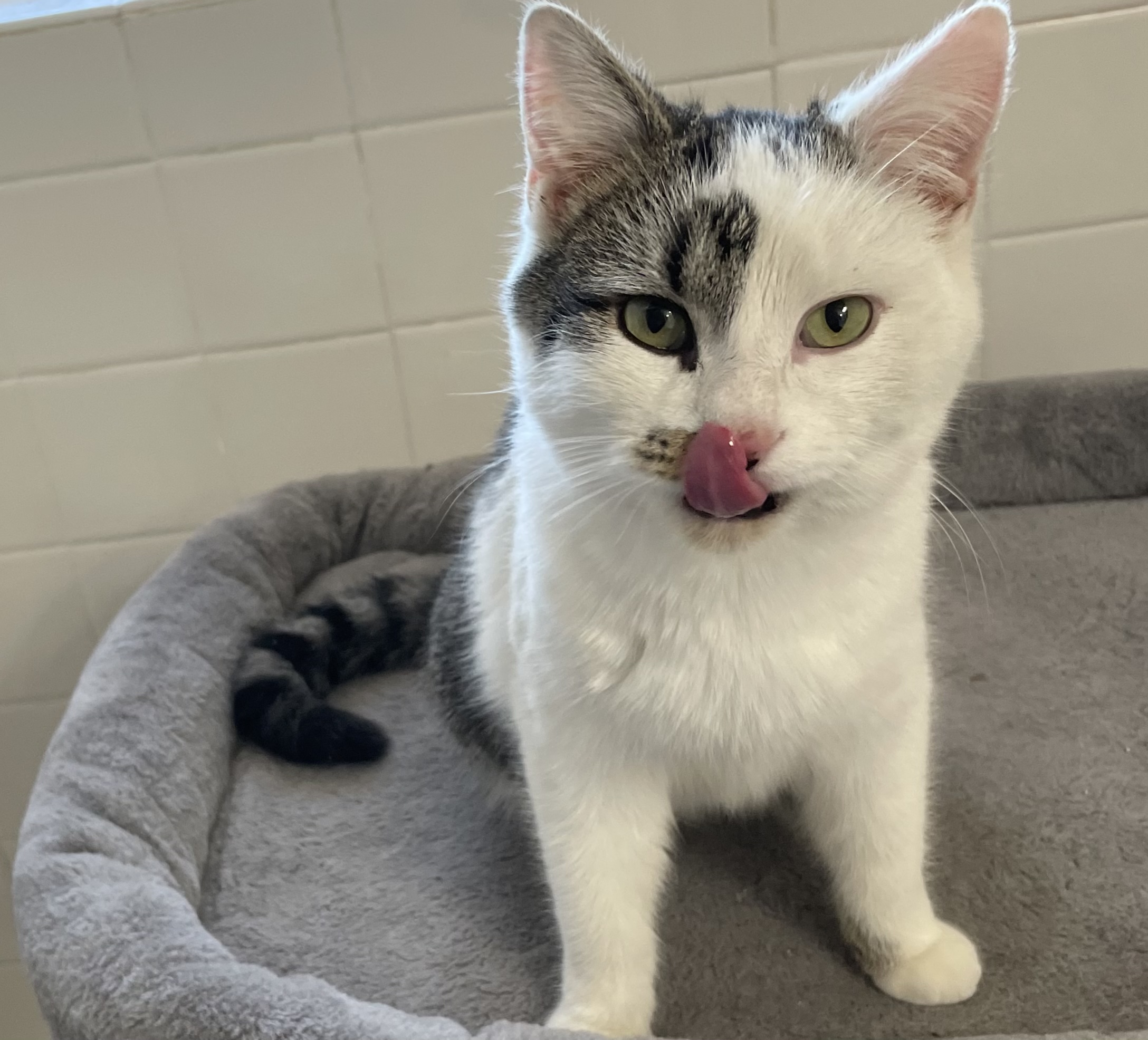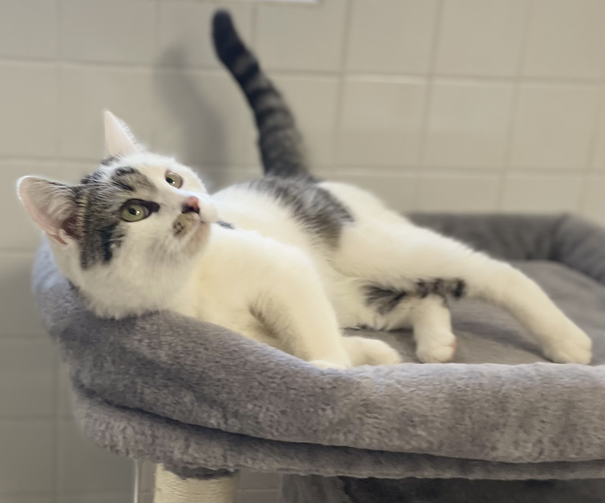 We aren't sure what happened to six-month-old Cayden before he was found, but he was cold and scared when he was trapped during the 'Big Snowstorm of 2026.' Once safe and warm inside, his sweet personality immediately shone through. This adorable tabby-spotted kitten started rolling around begging for pets and quickly tried to win over the other foster cats with friendly headbutts. Cayden is an all-around wonderful companion whose perfect home must include at least one feline friend and a human buddy to provide all the affection he craves.