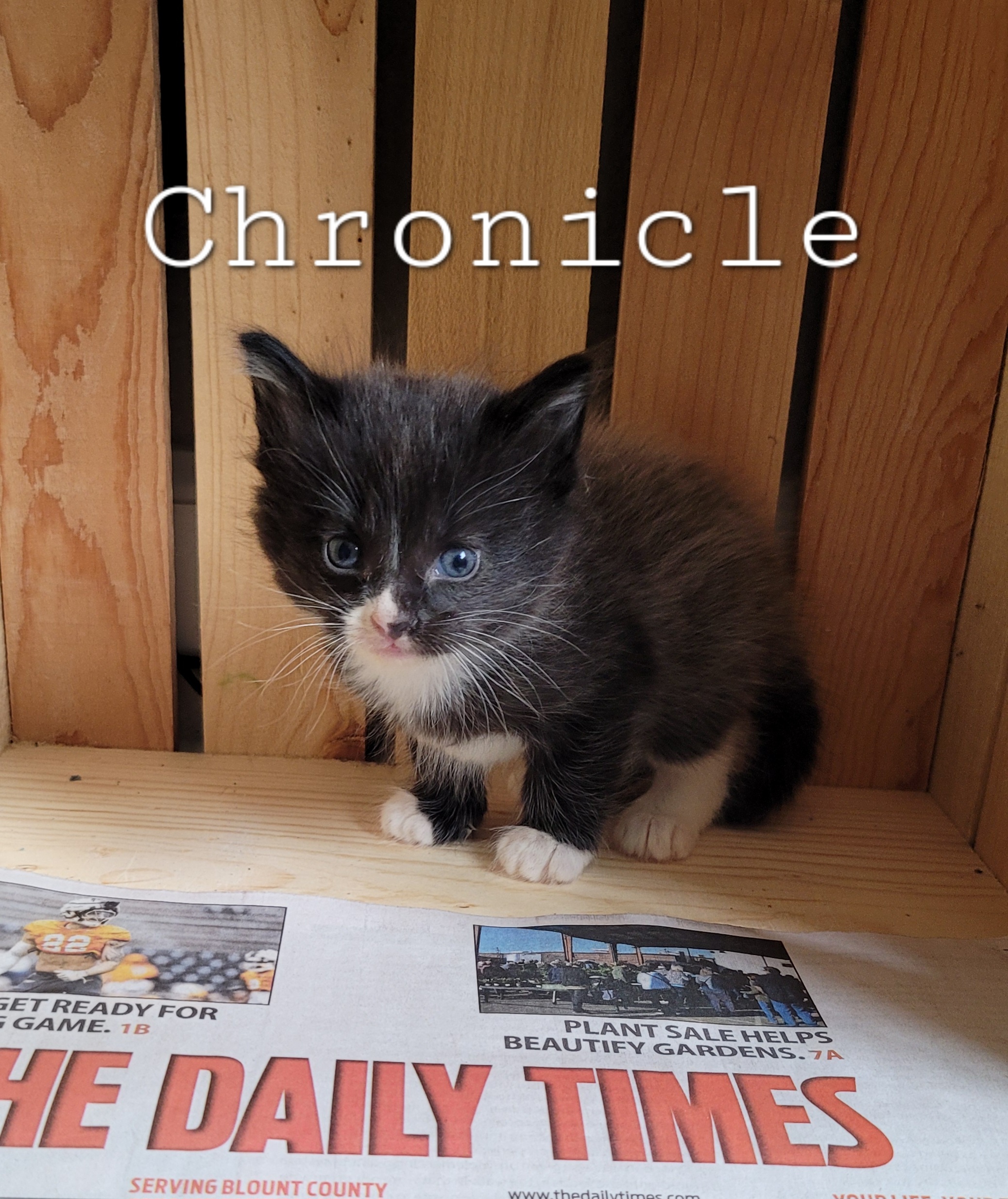 Chronicle is a handsome guy with his fluffy long milk coat and white feet. He is full of energy and fun! He loves to play with his brothers and sit in the window to watch the birds. Kittens are great in pairs and luckily, Chronicle has a near twin brother, Tribune!