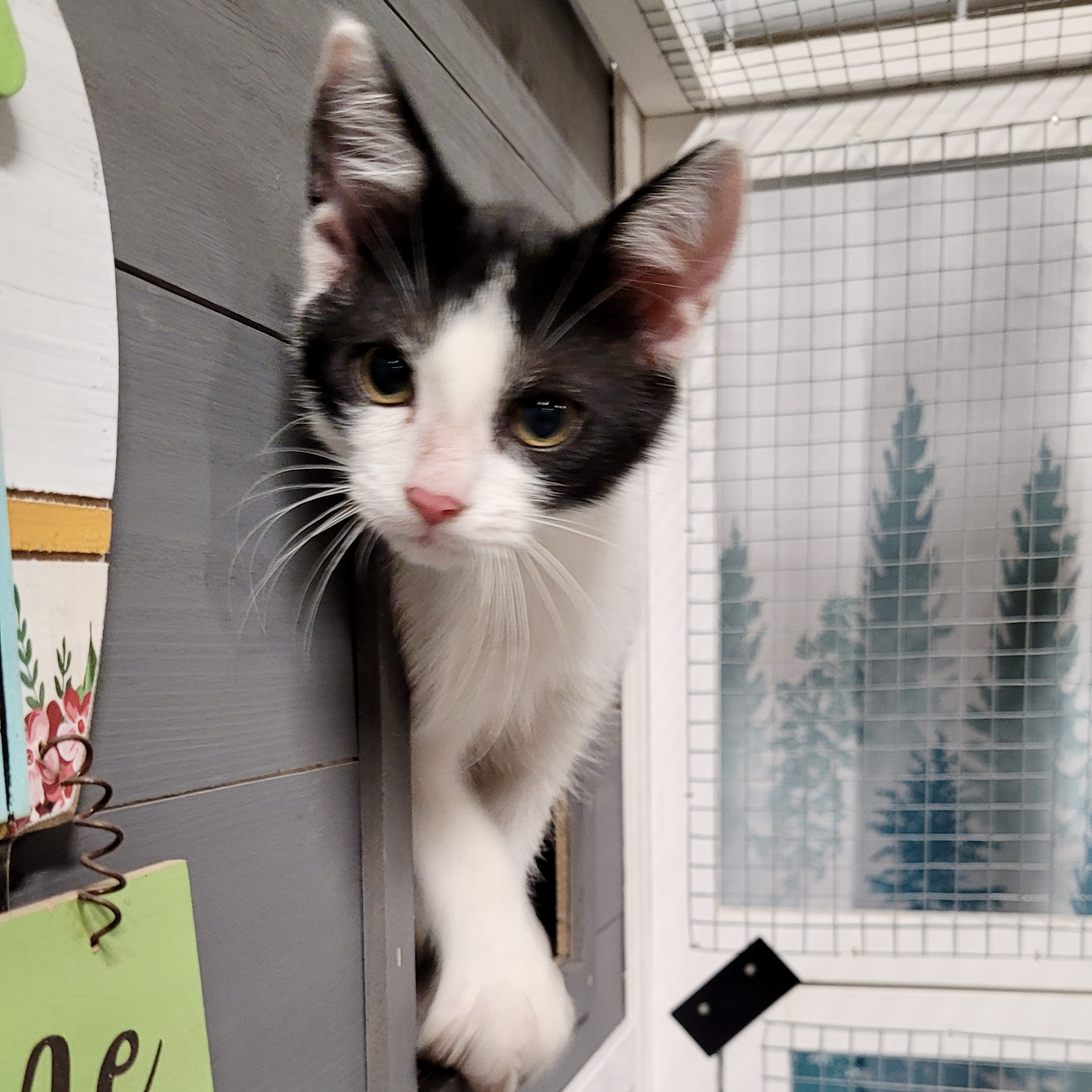 Daily Times is a sweet, fun-loving kitten! He loves to play and wrestle with his sister, Sunny. He gets a little too boisterous for her sometimes, but he eventually settles down. When he does, he is all about getting attention from his humans. He is sweet and cuddly and loves kisses. He would be a great companion for another playful pet!