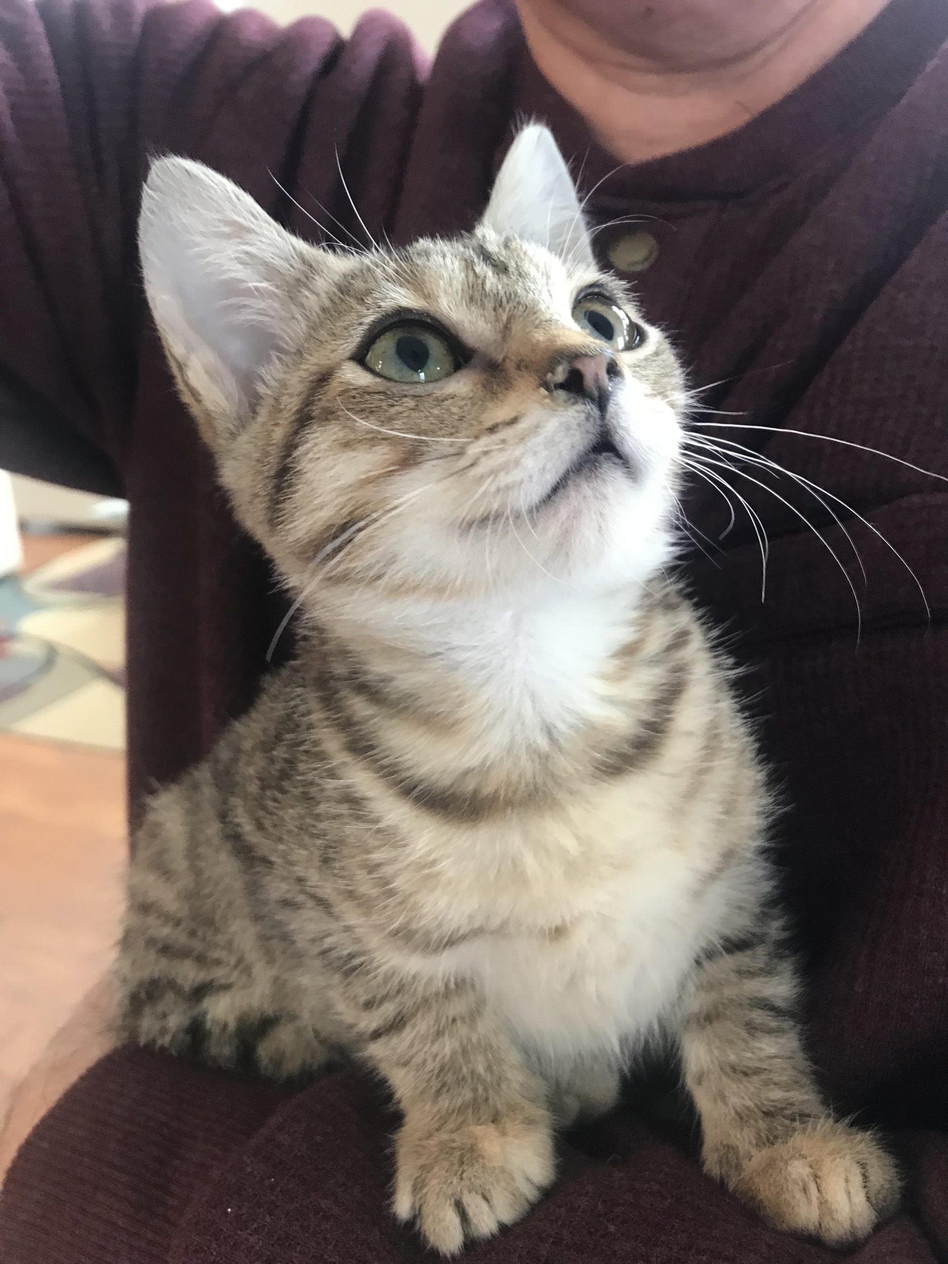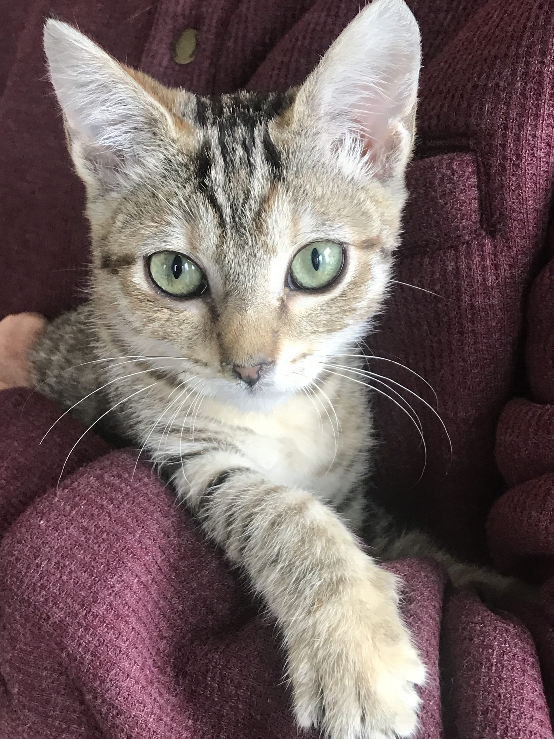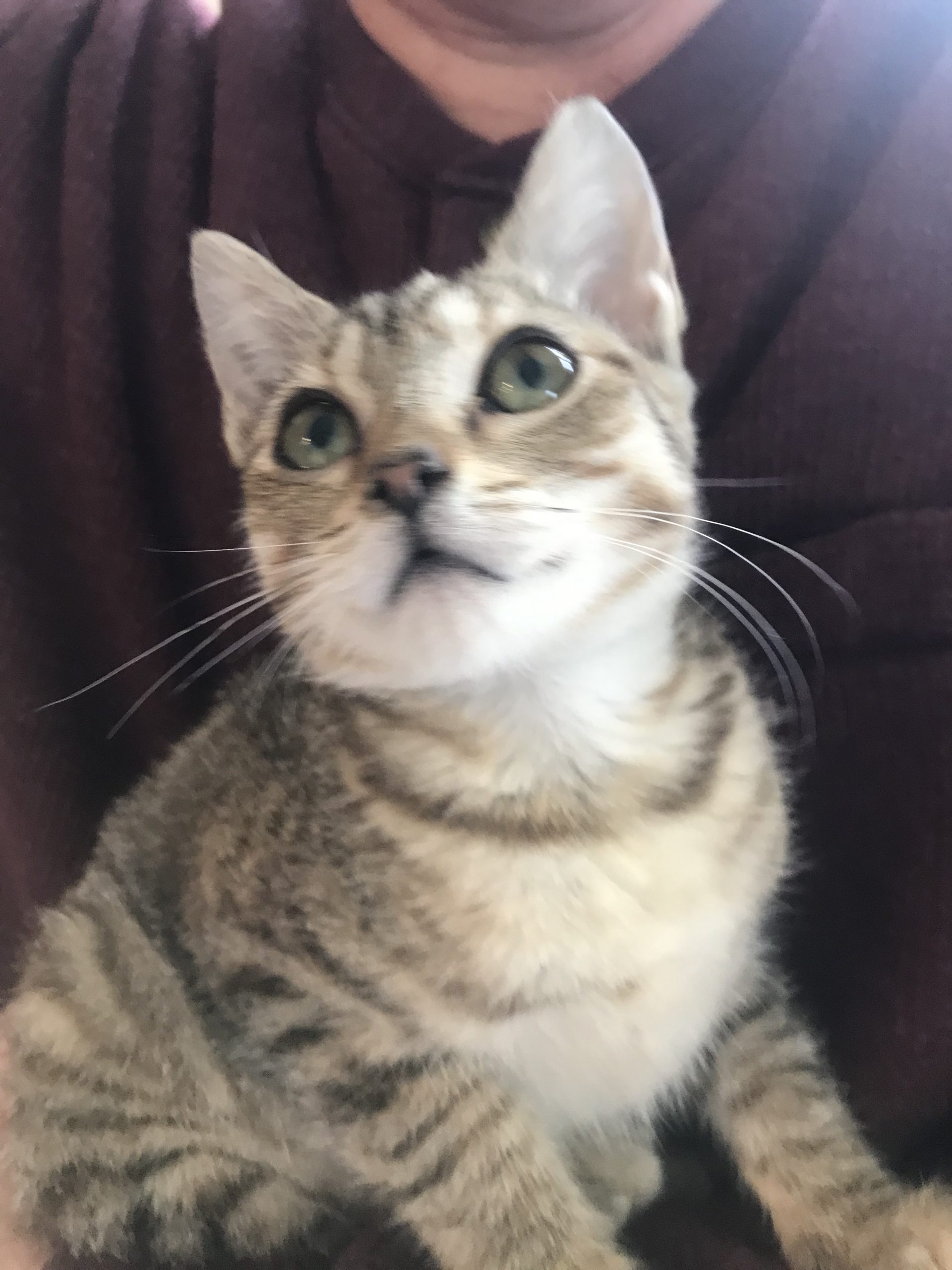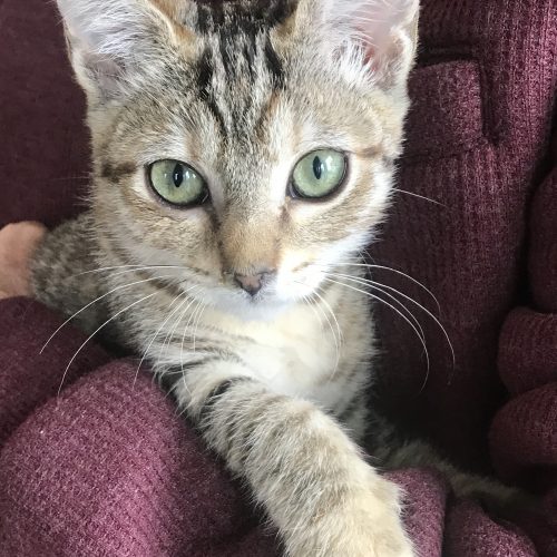 Hi! I'm Dakota, I was found as a very, very little kitten eating out of a dumpster behind a fast food restaurant…no littermate or mom around. I’m sure mom was out trying to find a warm place for us to sleep for the night because it was brutally cold. Anyway, two young girls took pity on me and brought me to a safe person….so here I am. Now I am in a warm, loving foster home making everyone laugh with my goofy antics. I am a curious and playful kitten who loves adventure. I'm quite the brave little explorer, always on the lookout for fun. I'm, also, super smart and quick to learn new tricks or find my way into cuddles. If you're looking for a lively, loving companion to bring energy and laughter to your home, I'm your girl! Let's make endless memories together!