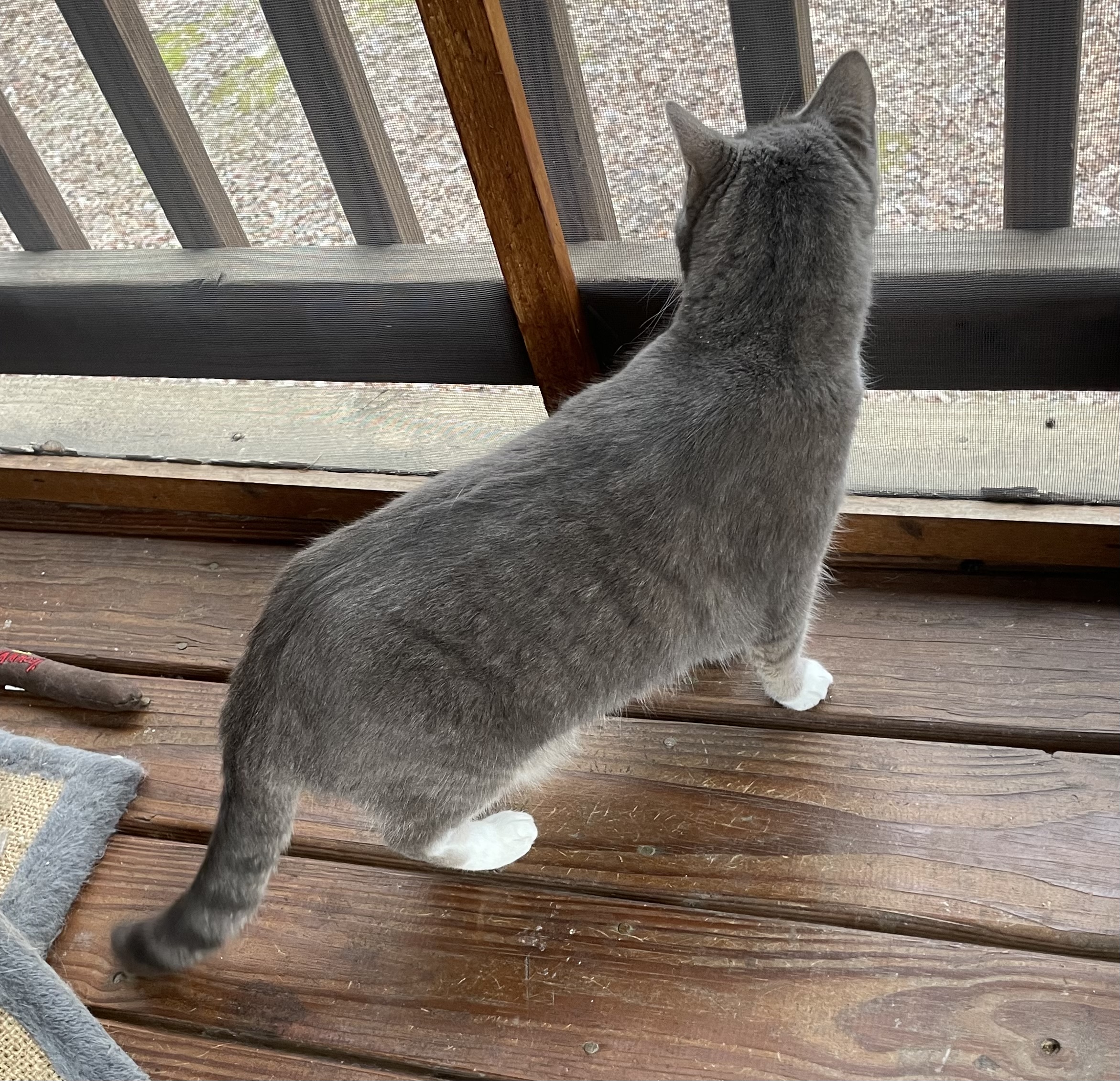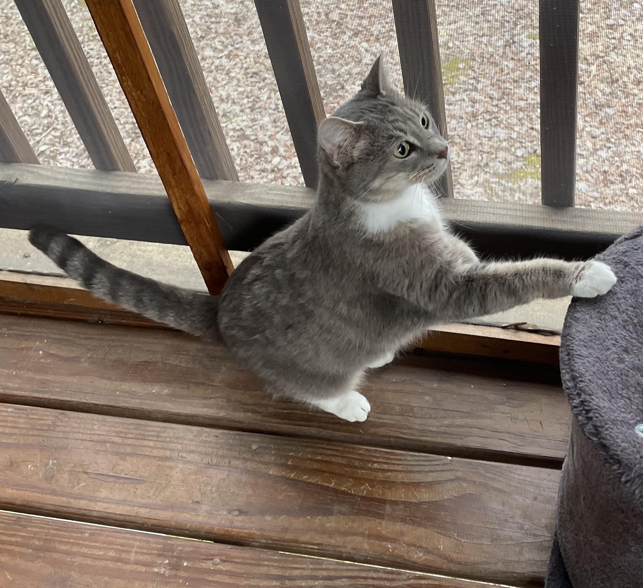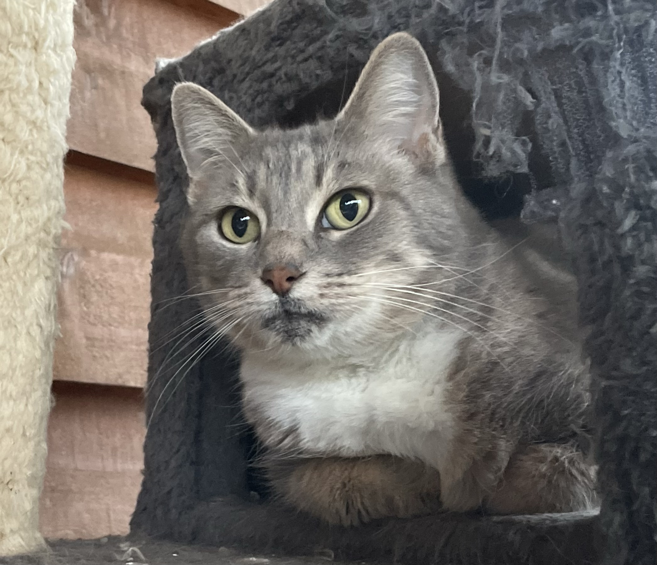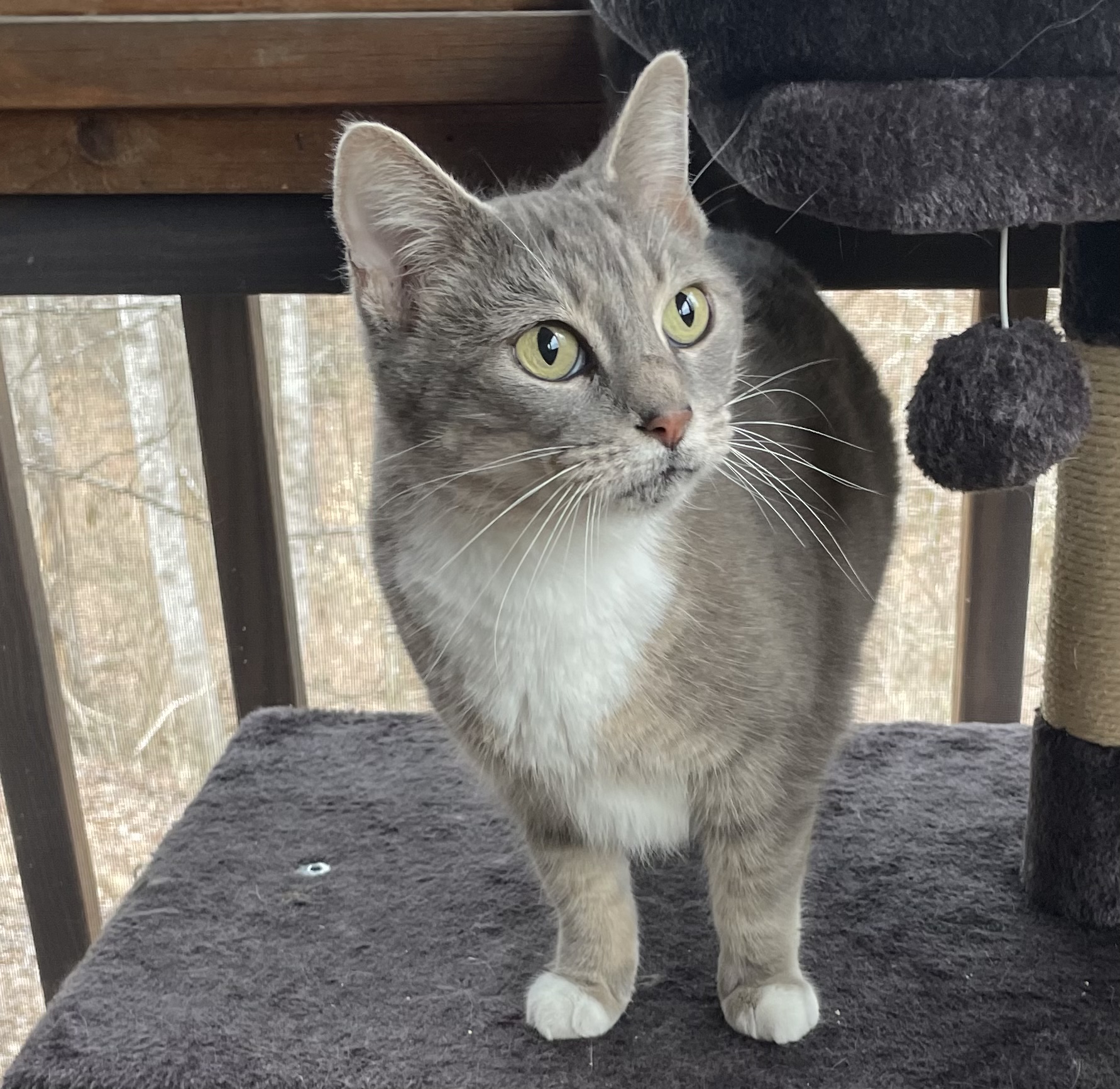 Destiny is an easy girl. She does make little growly noises when she eats, but is fine with other cats and only makes her cuter!