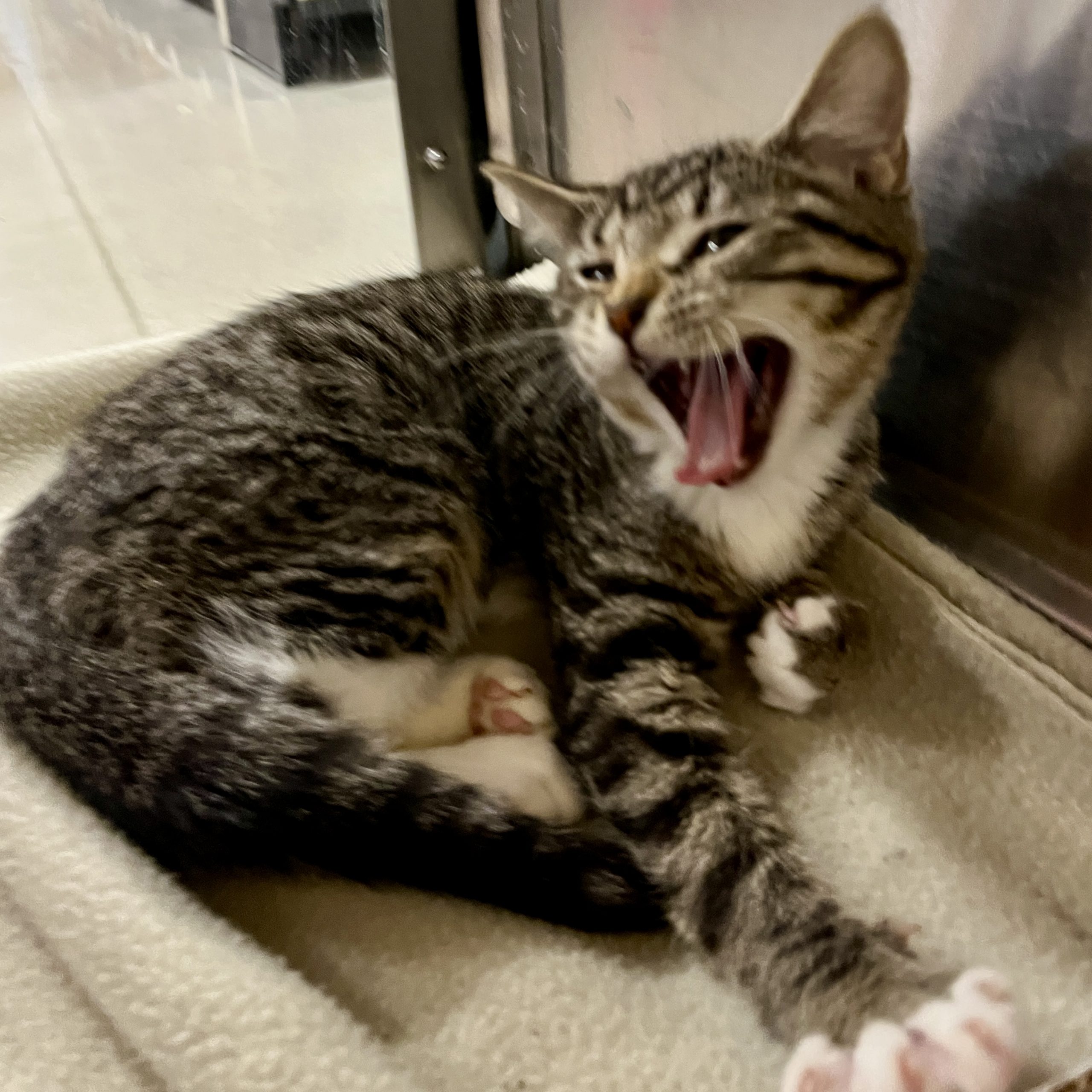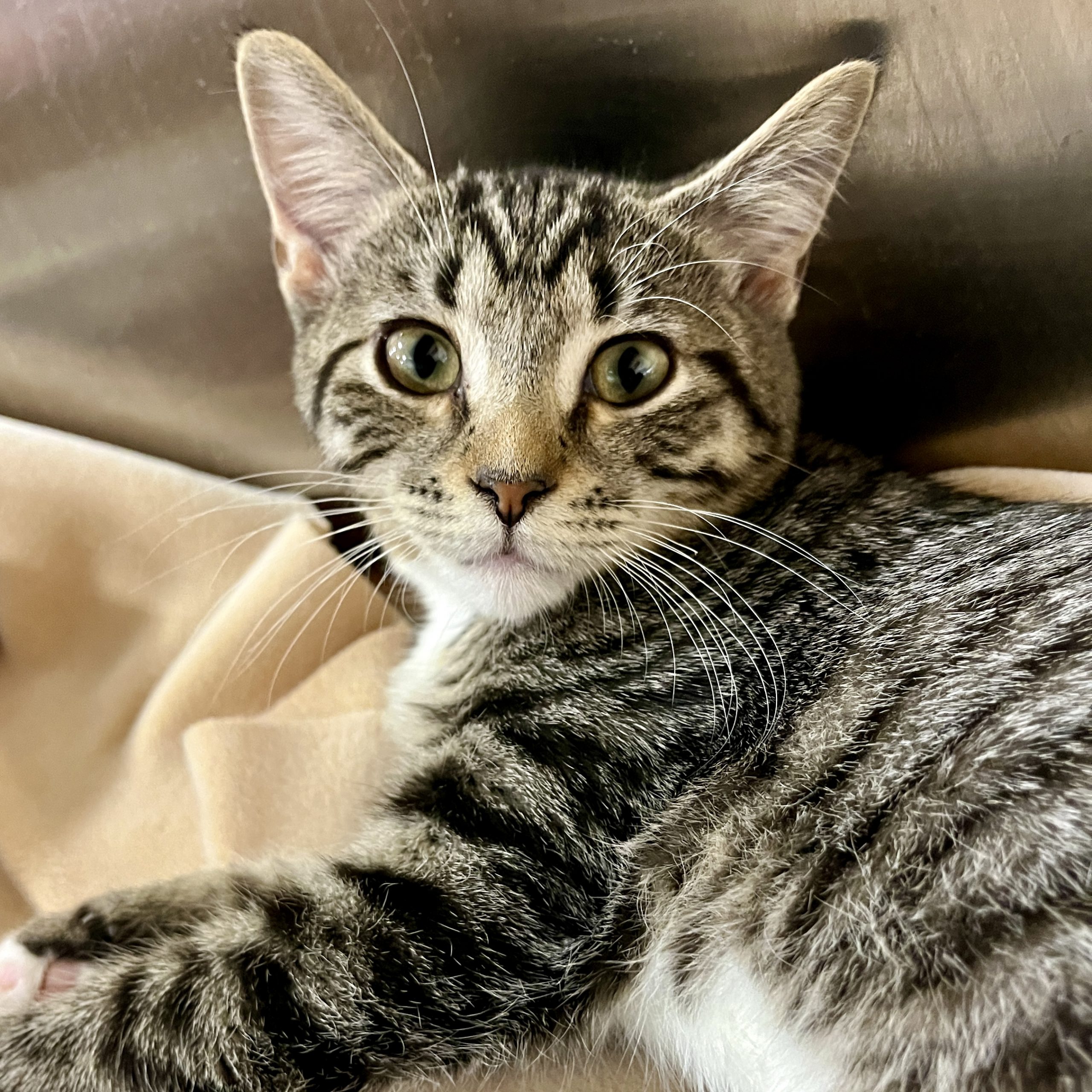 Hi! We are Trouble, Double, Freckles and Speckles. Four very playful and loving kittens who came from a feral momcat living outside in a very unsafe situation.  All of momcats previous babies did not survive due to vicious dog attacks.  You can say were are little miracles for even being alive.  We love to play and explore but, also, love cuddles. We’ve mastered the art of the gentle pounce and our smarts make us quick learners, especially when there are treats involved! We are always up for a good time. Looking for an energetic buddy who's also a snuggle champion? We are your kittens! Let's make every day an adventure together.