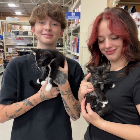 A snuggler and playful…could you want anything more in a kitten? Want to hold a kitten like a baby while it purrs and snuzzles into your neck? Want to watch hours of a kitten frolicking around playing? Then 2 month old Fescue is the kitten for you! She loves people and felines and definitely would be happiest in a home with another kitten or playful younger cat. She tolerates the dog in her foster home but prefers the humans of course!