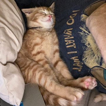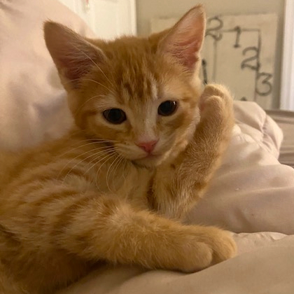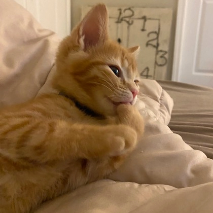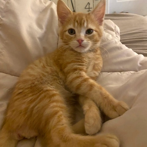 The largest, but sweetest of the crew. I love to play, but always stay close. I am a serious lover boy. I love to lay on you, stare at you, and touch you with my paws. I’m an adoring boy.
