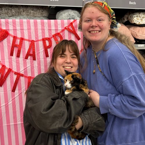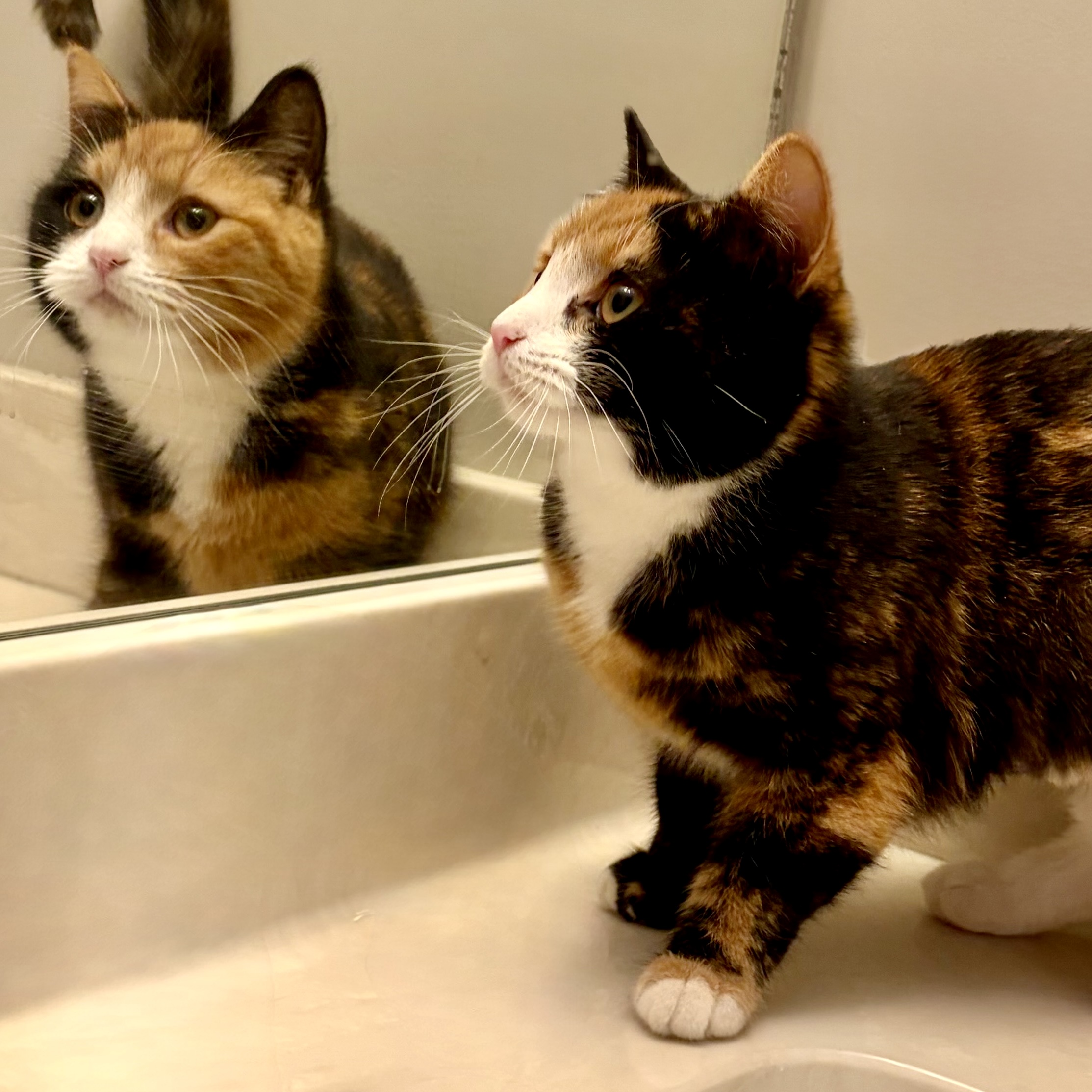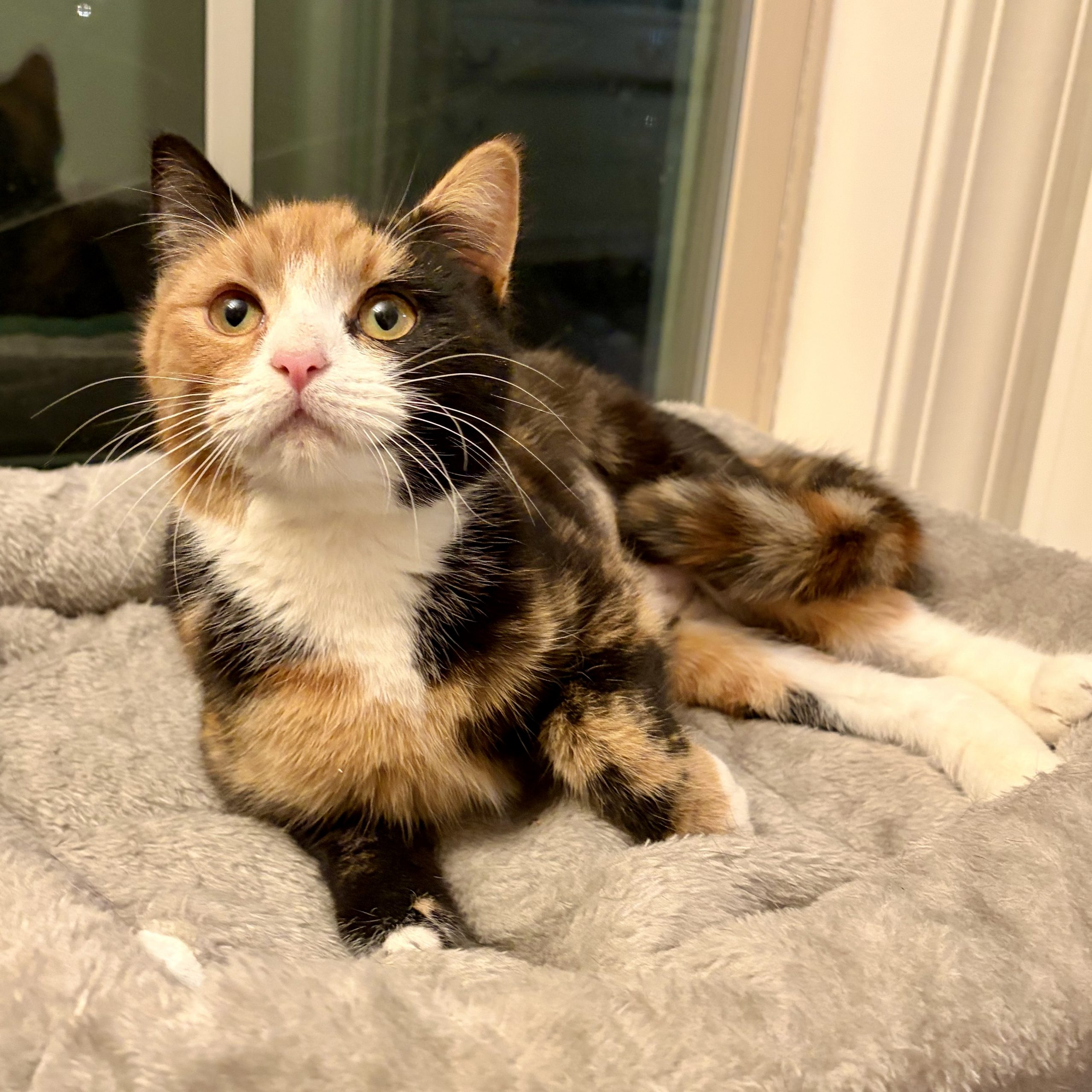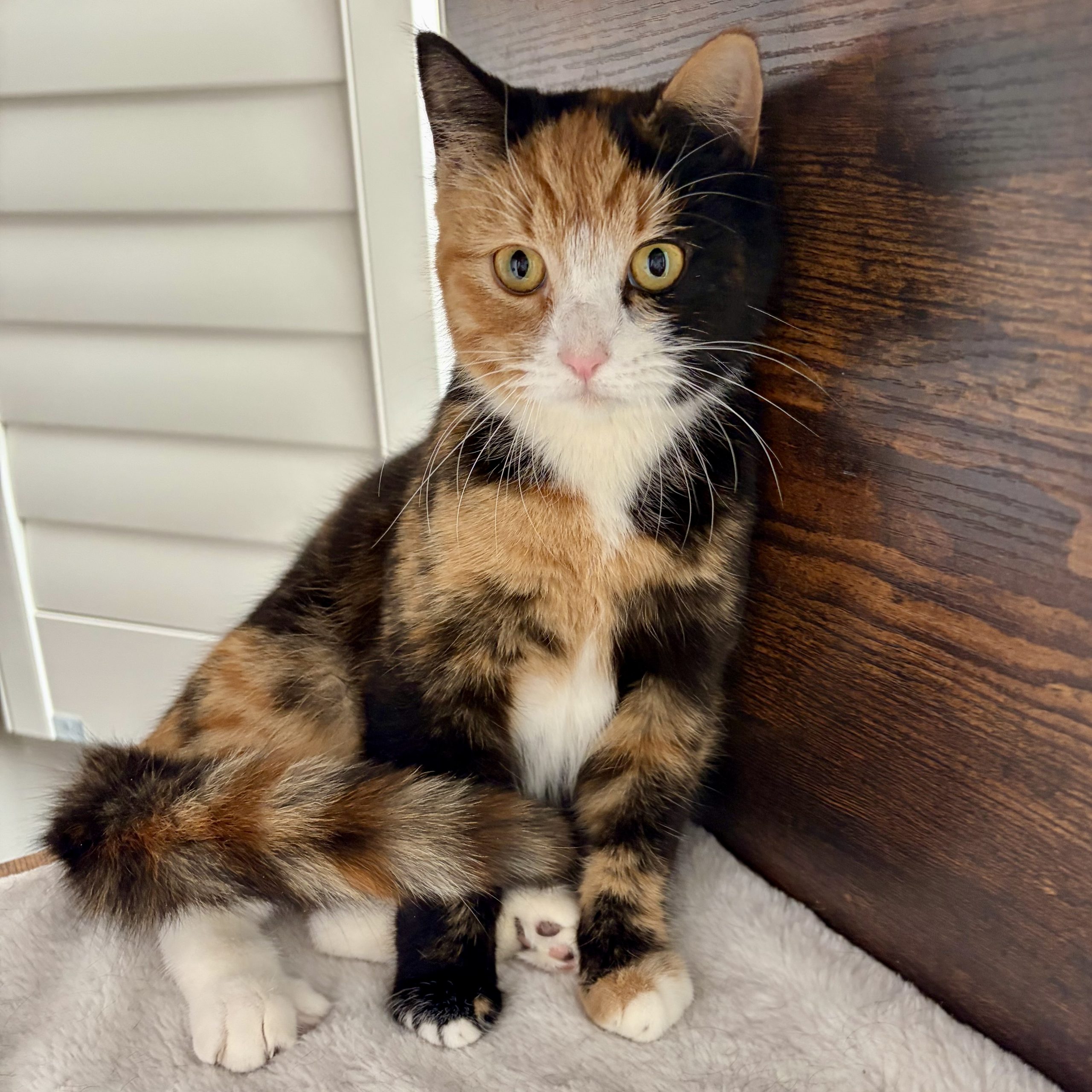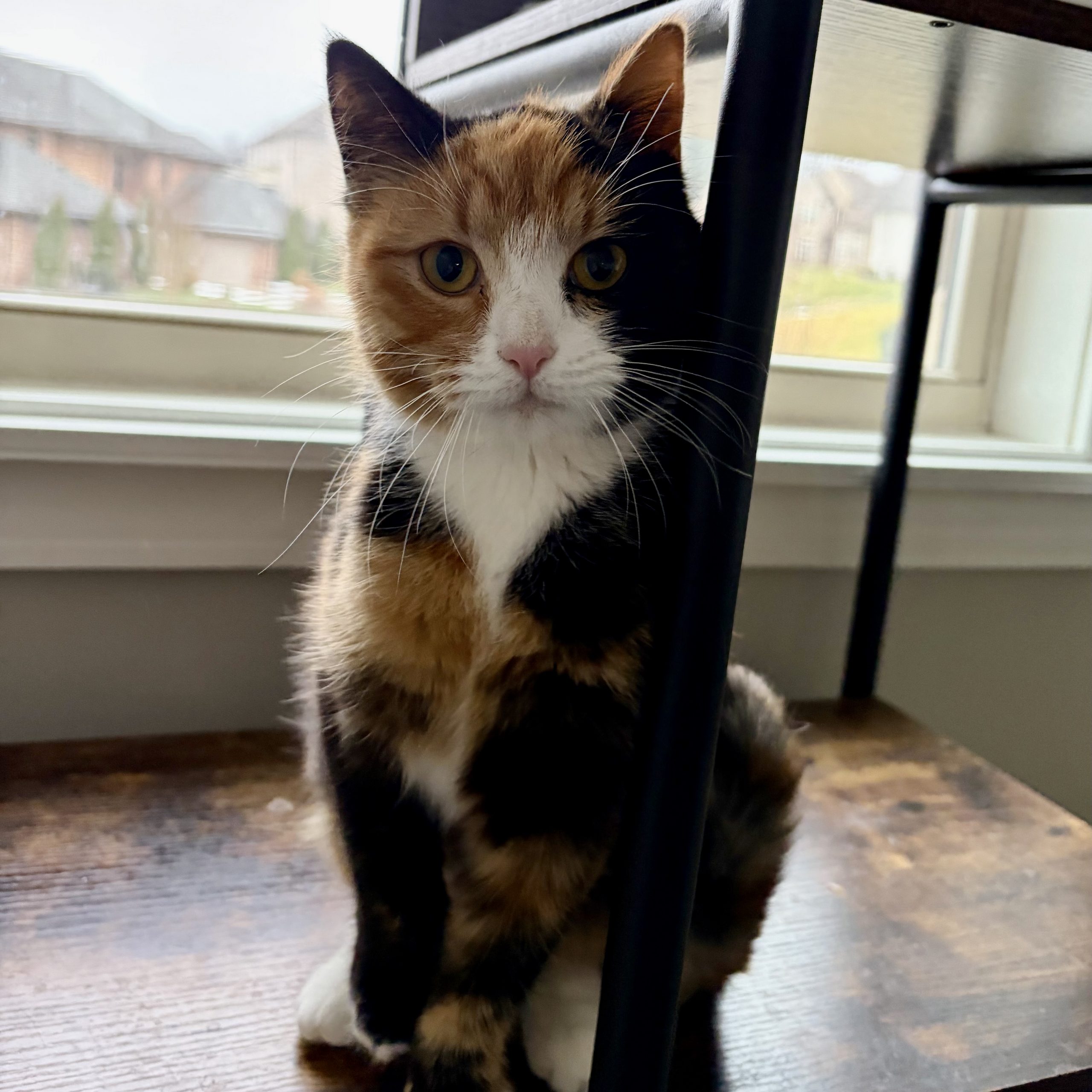 Hi, I'm Gigi! I know, I know. I look like 3 cats smooshed into one! I spend my days watching birds out the window while perched high above in my favorite cat tree. I LOVE a good head scratch and will purr to let you know just how much I do! I'm kind of shy at first so my new best friend will need some patience. You see, up until a few weeks ago, I was living outside fending for myself until the kind folks with FFF took me in. So, I'm a little fearful of new things and will take some time to settle in. I'm currently bunking with another foster kitten sibling and while she's ok, I don't fully trust her just yet so if you have other cats, they'll need to give me some space. I also would probably do better in a home with no small kids. Can't wait to meet you!
