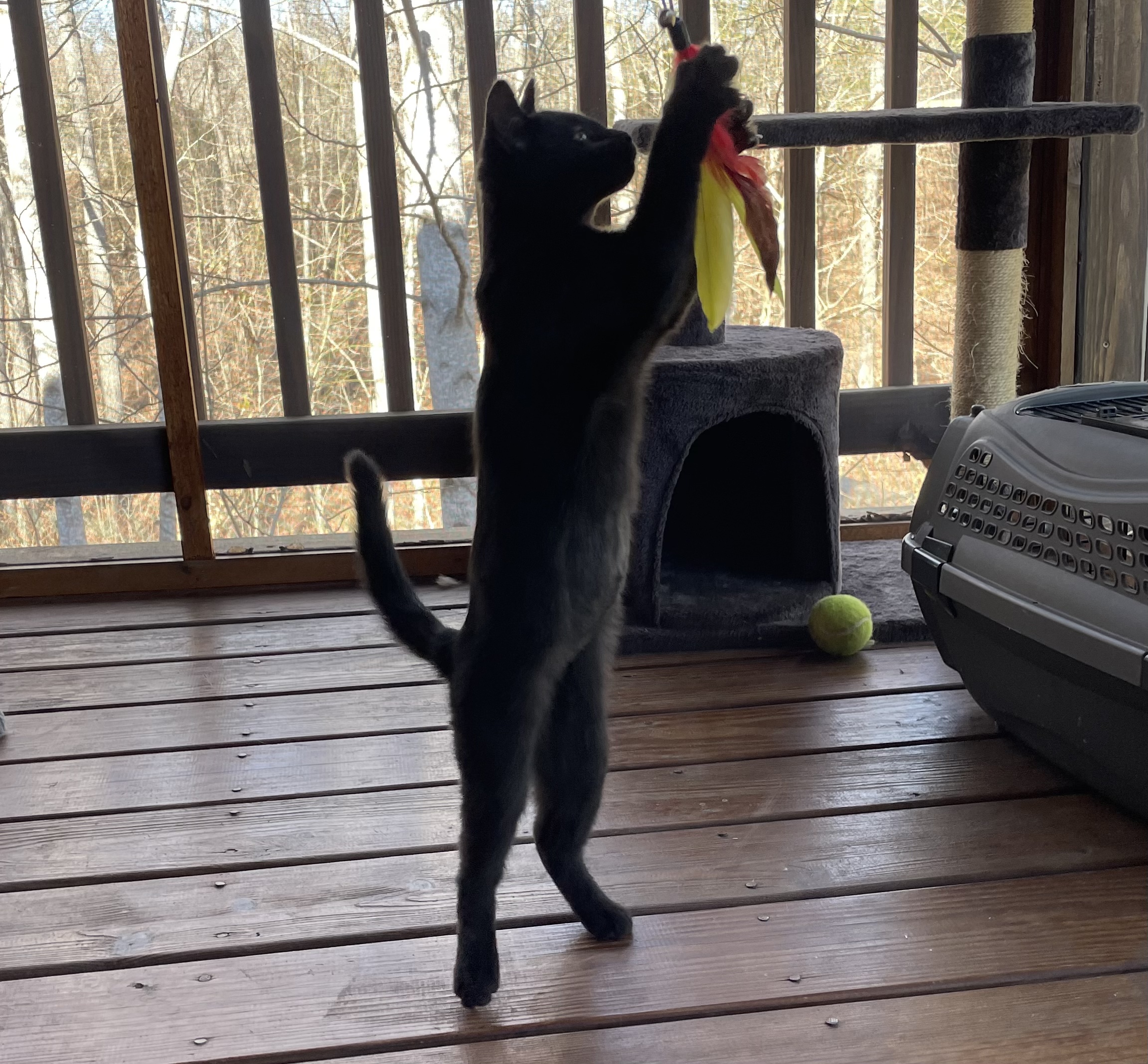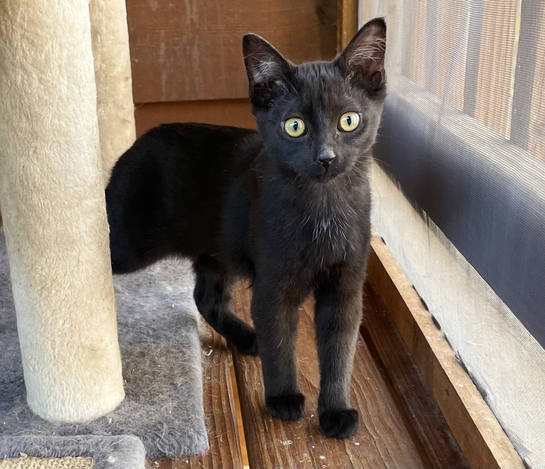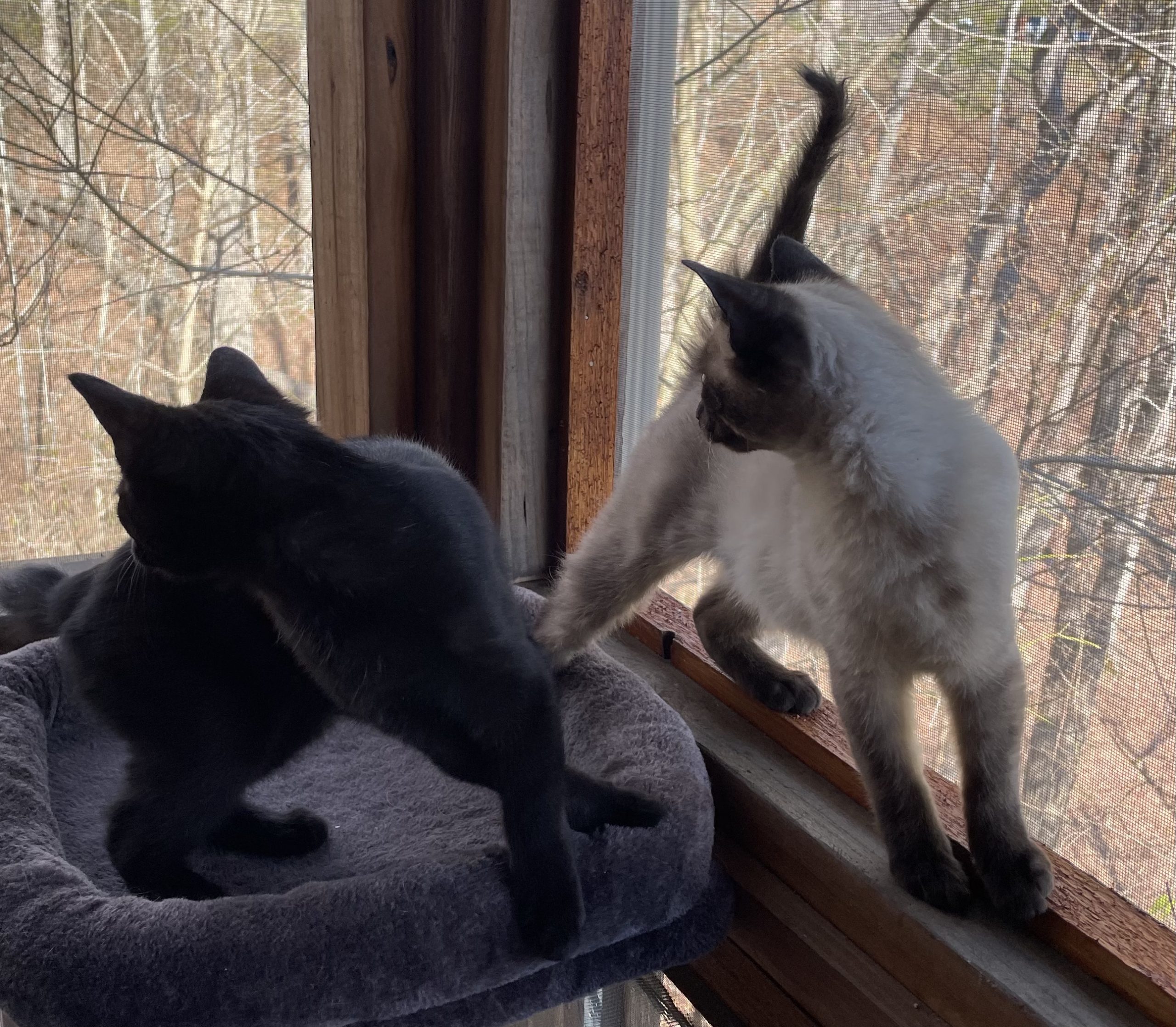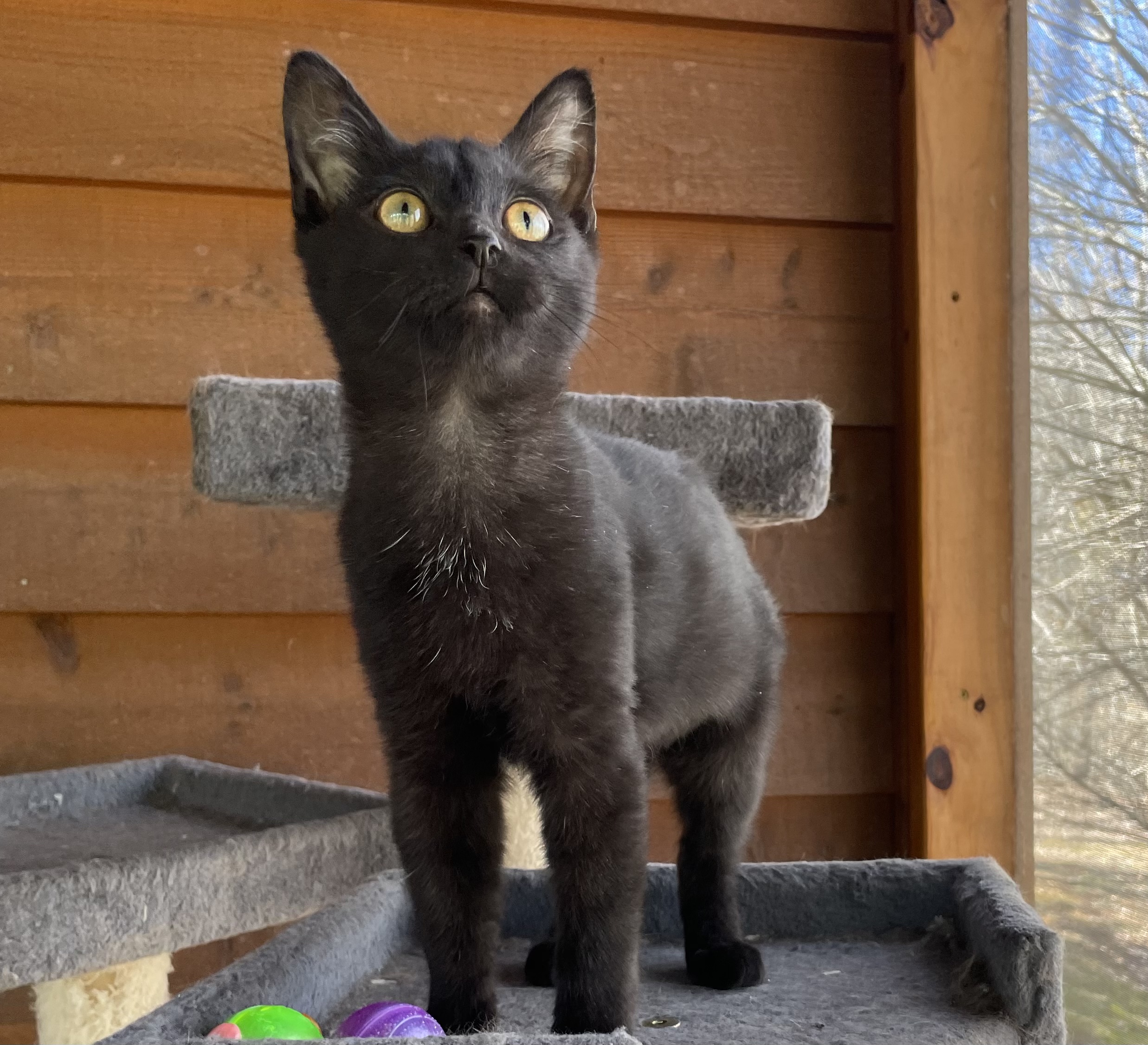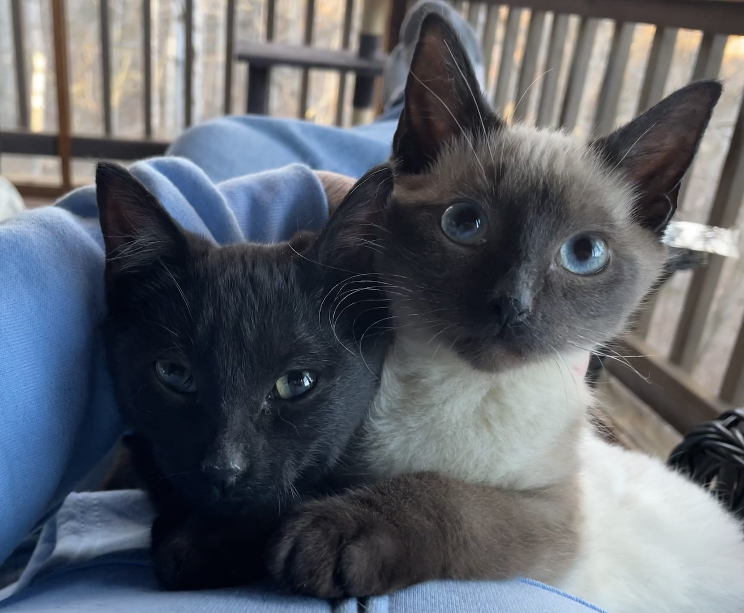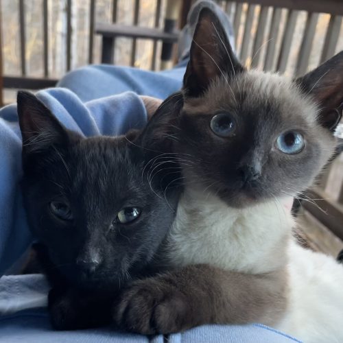 Glitter (a sleek black girl) and Shimmer (a handsome Siamese boy) were rescued together from a dire situation. Found underweight and struggling to survive under a trailer, these siblings were in very bad shape.