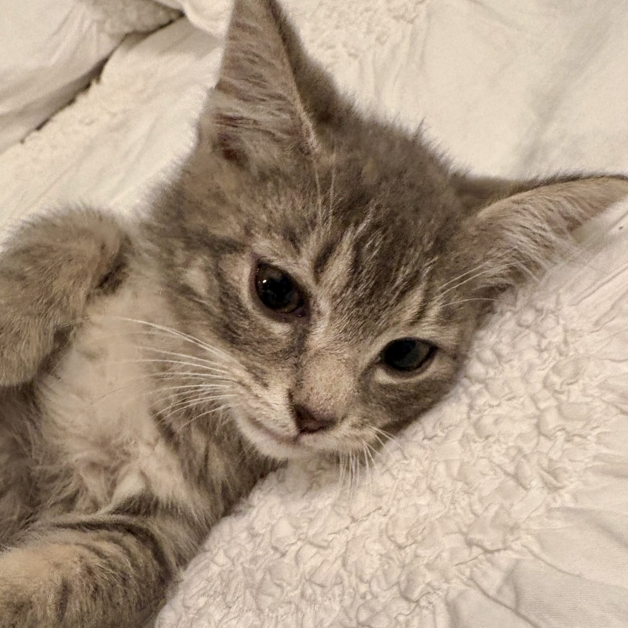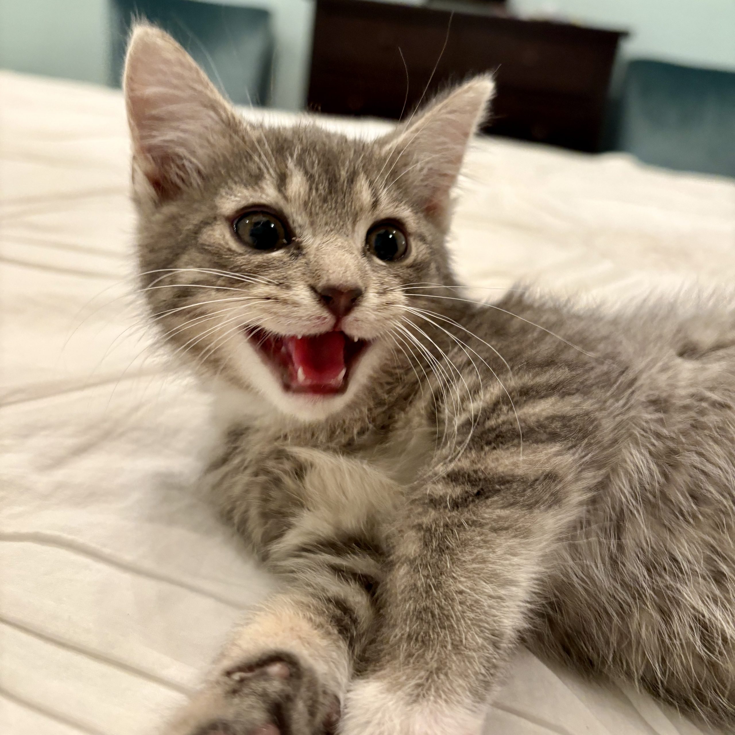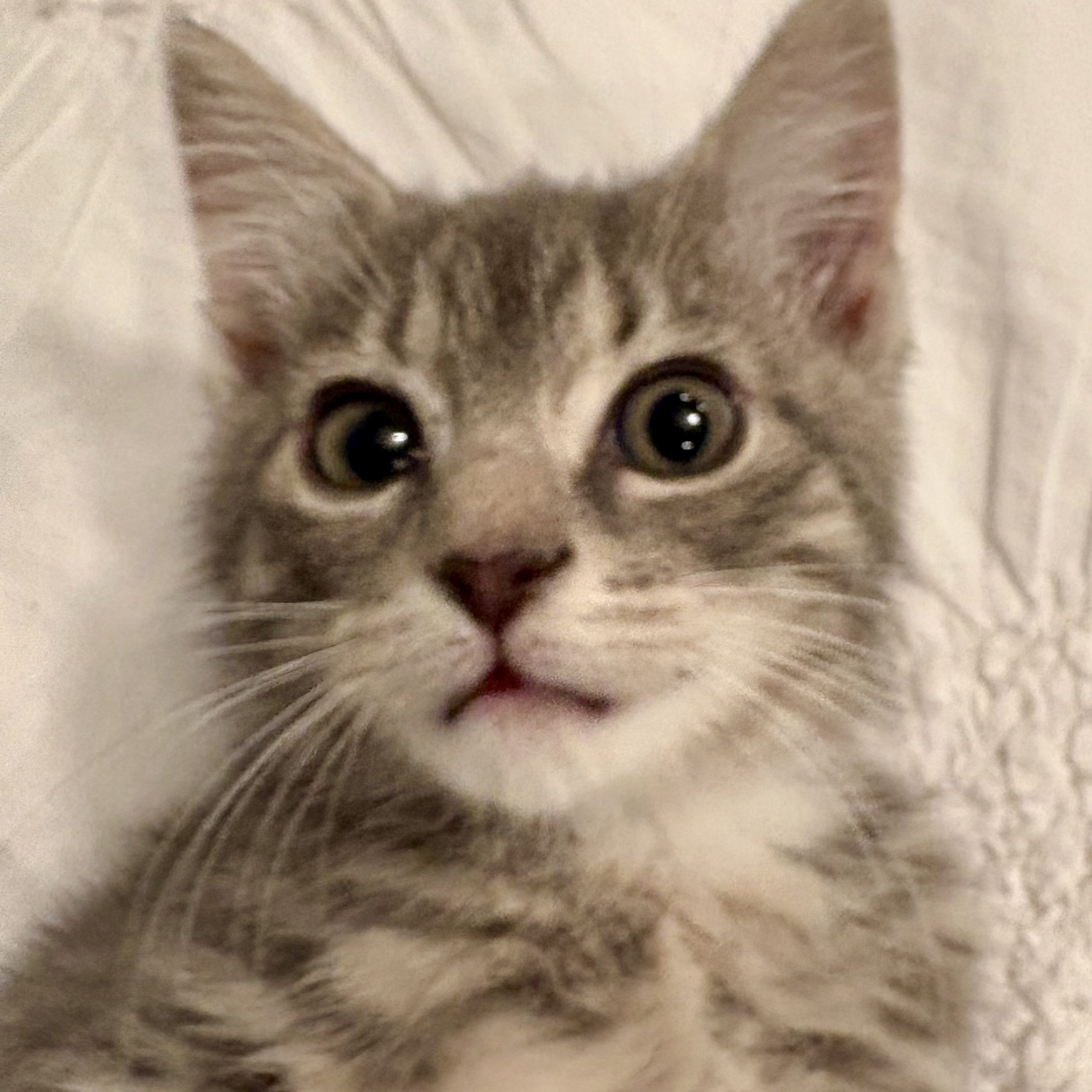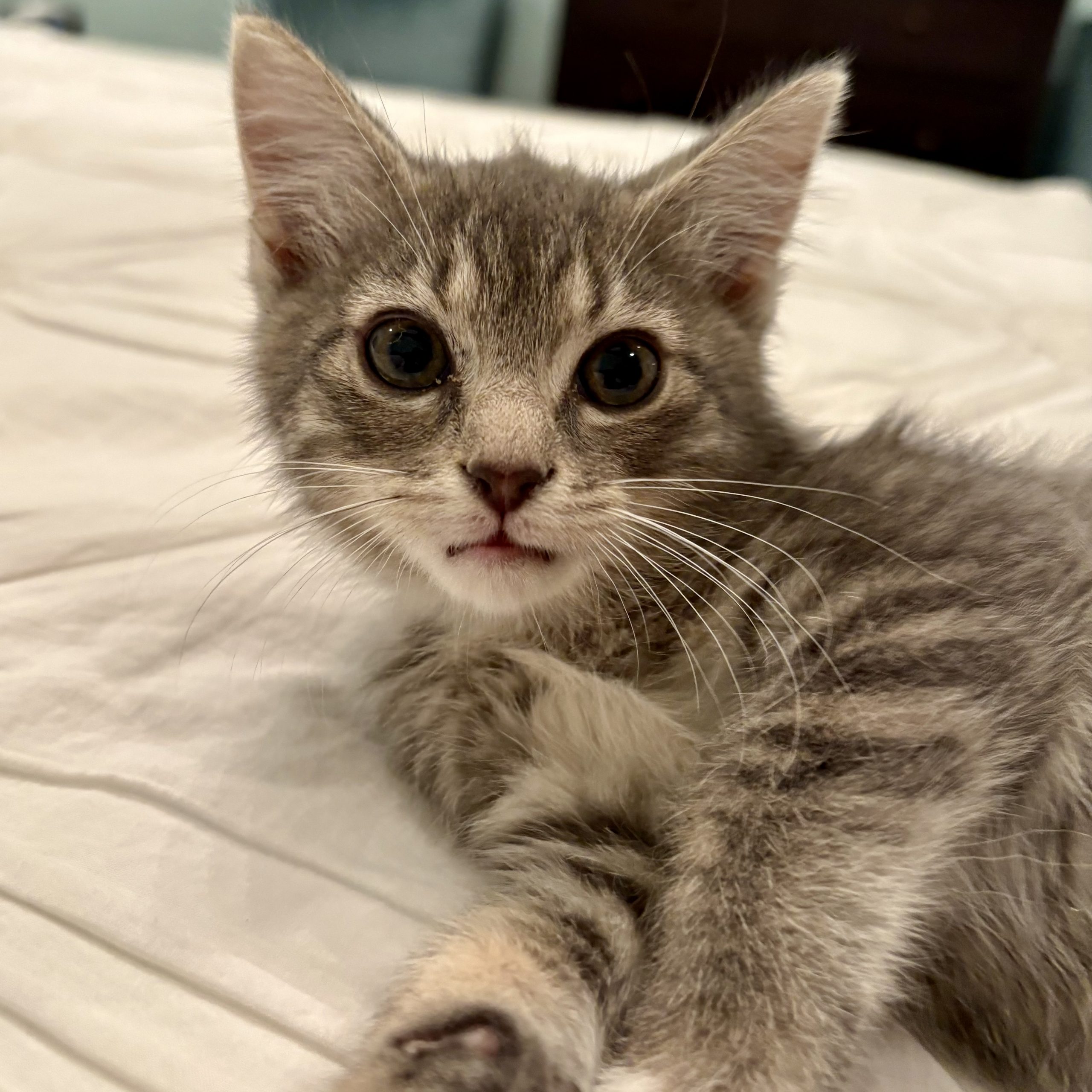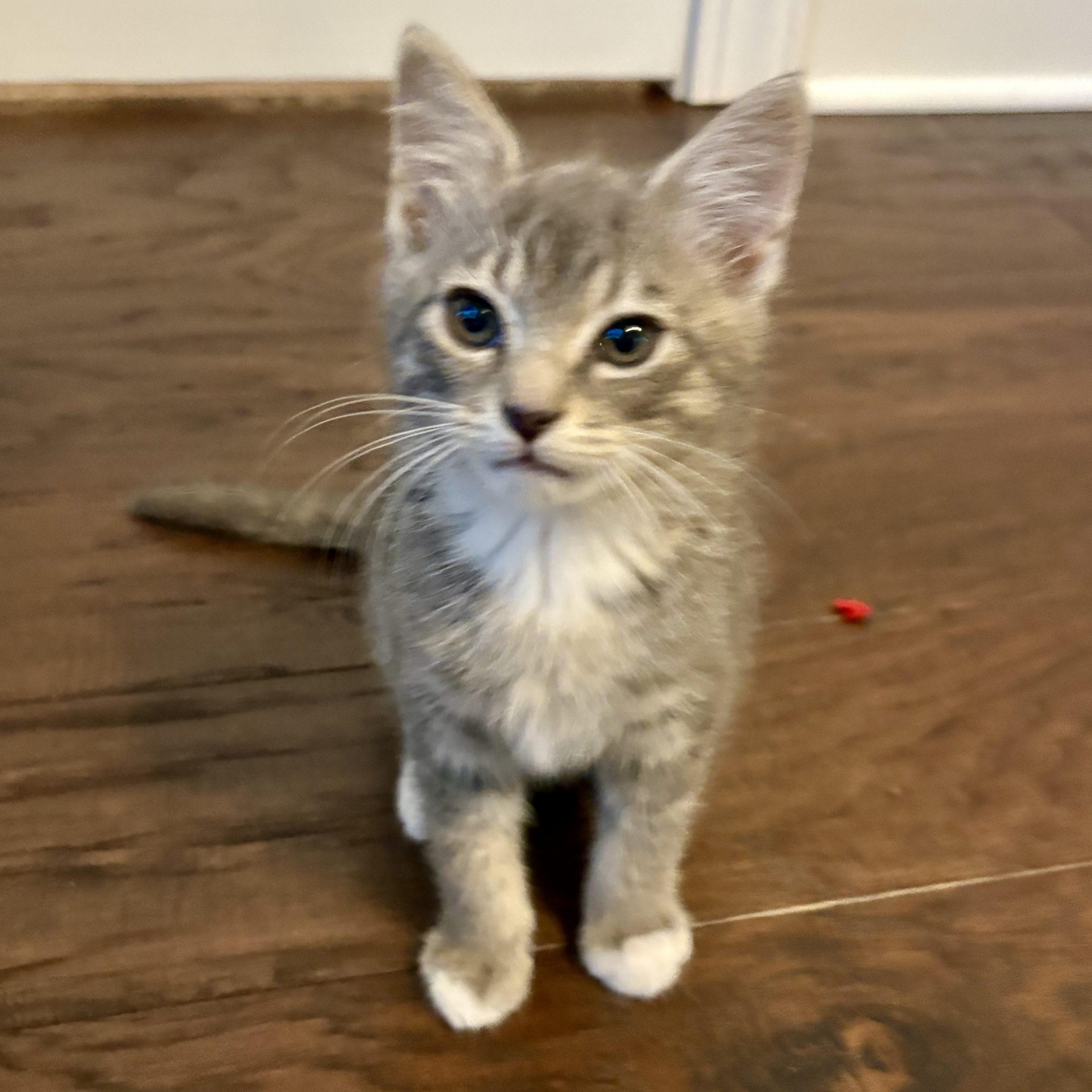 Hello! Cotton Hill here. So nice to meet you! I consider myself your typical kitten, full of energy and fun. I love wet food. Most cats do, yes, but I REALLY love it and will make sure you know I'd like some any time I see you! I spend my days napping and running around with my brother and watching all these crazy things called squirrels out the window. I'd love to find my forever home and be someone's bestie for life!