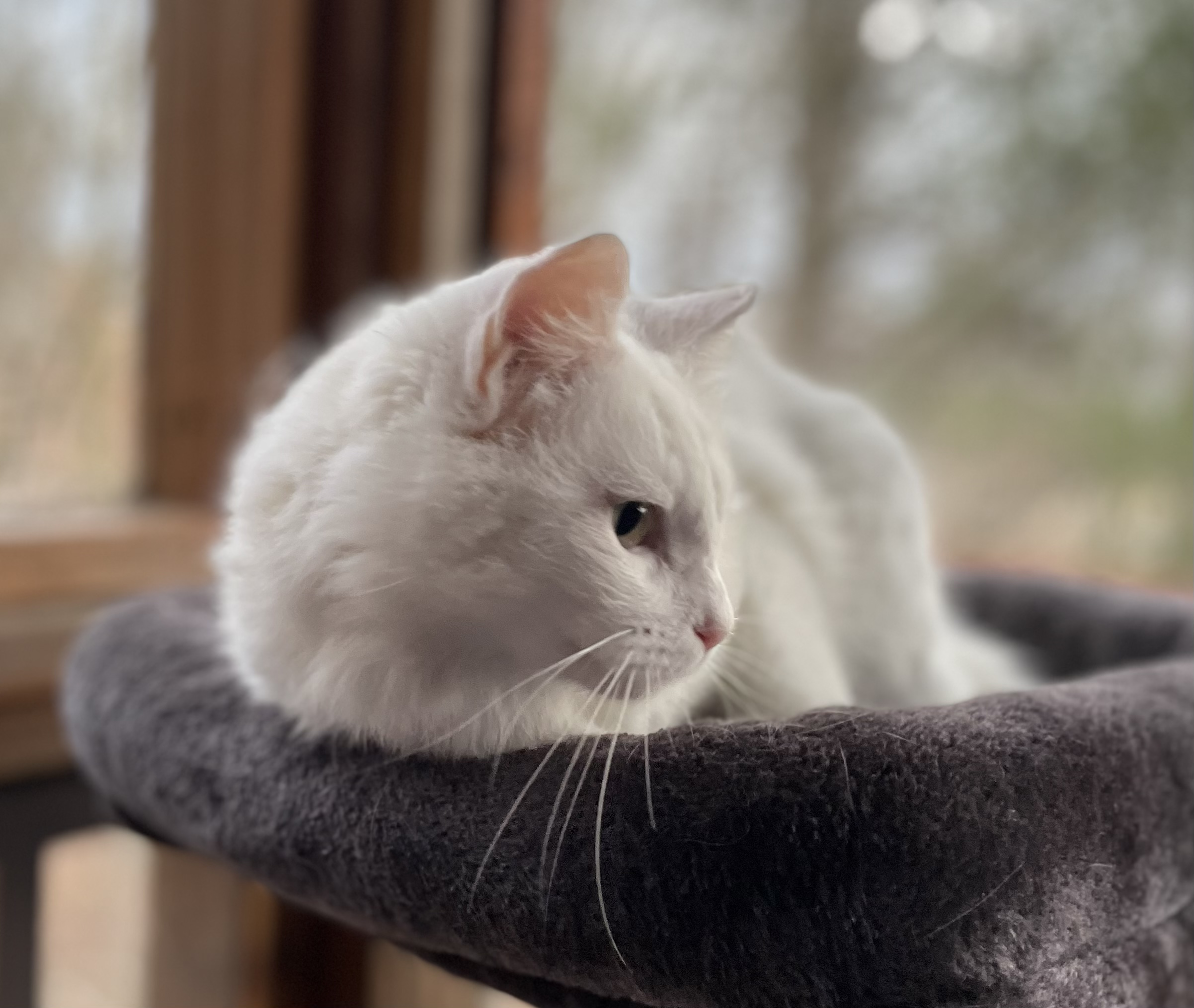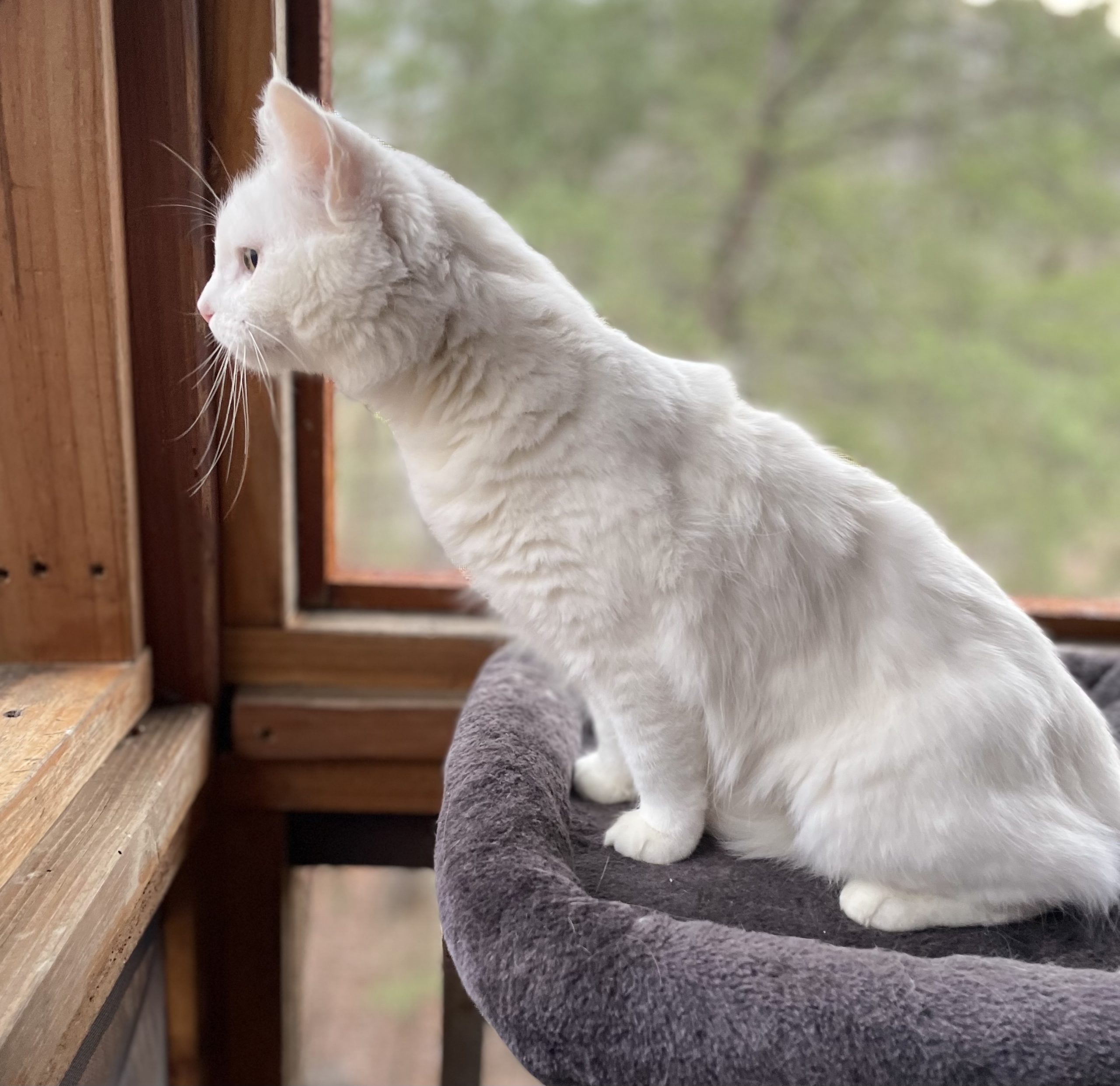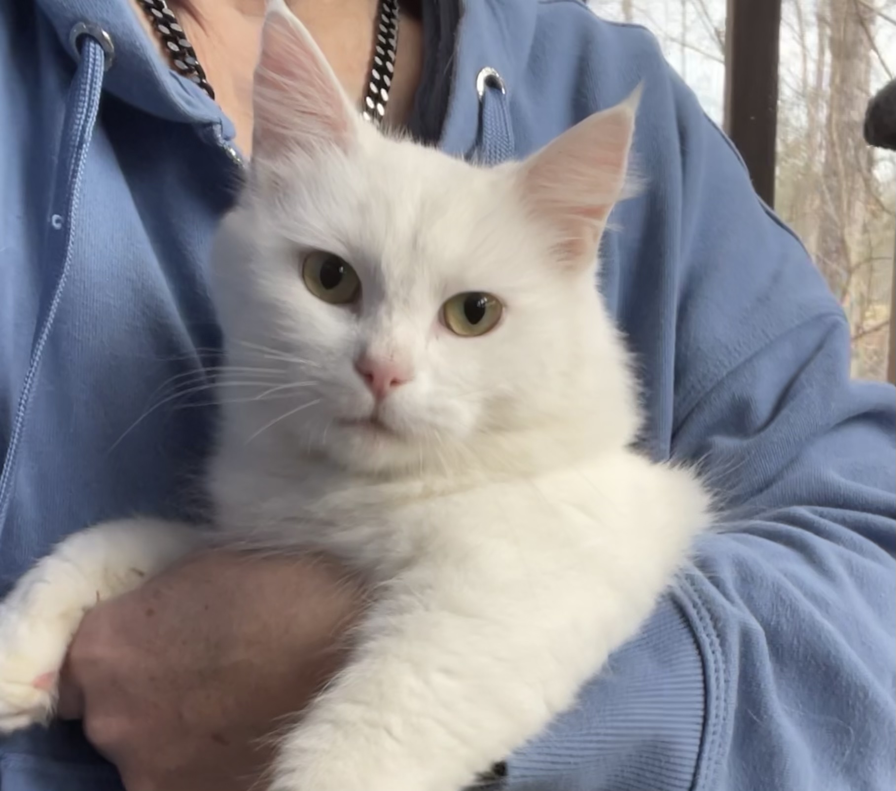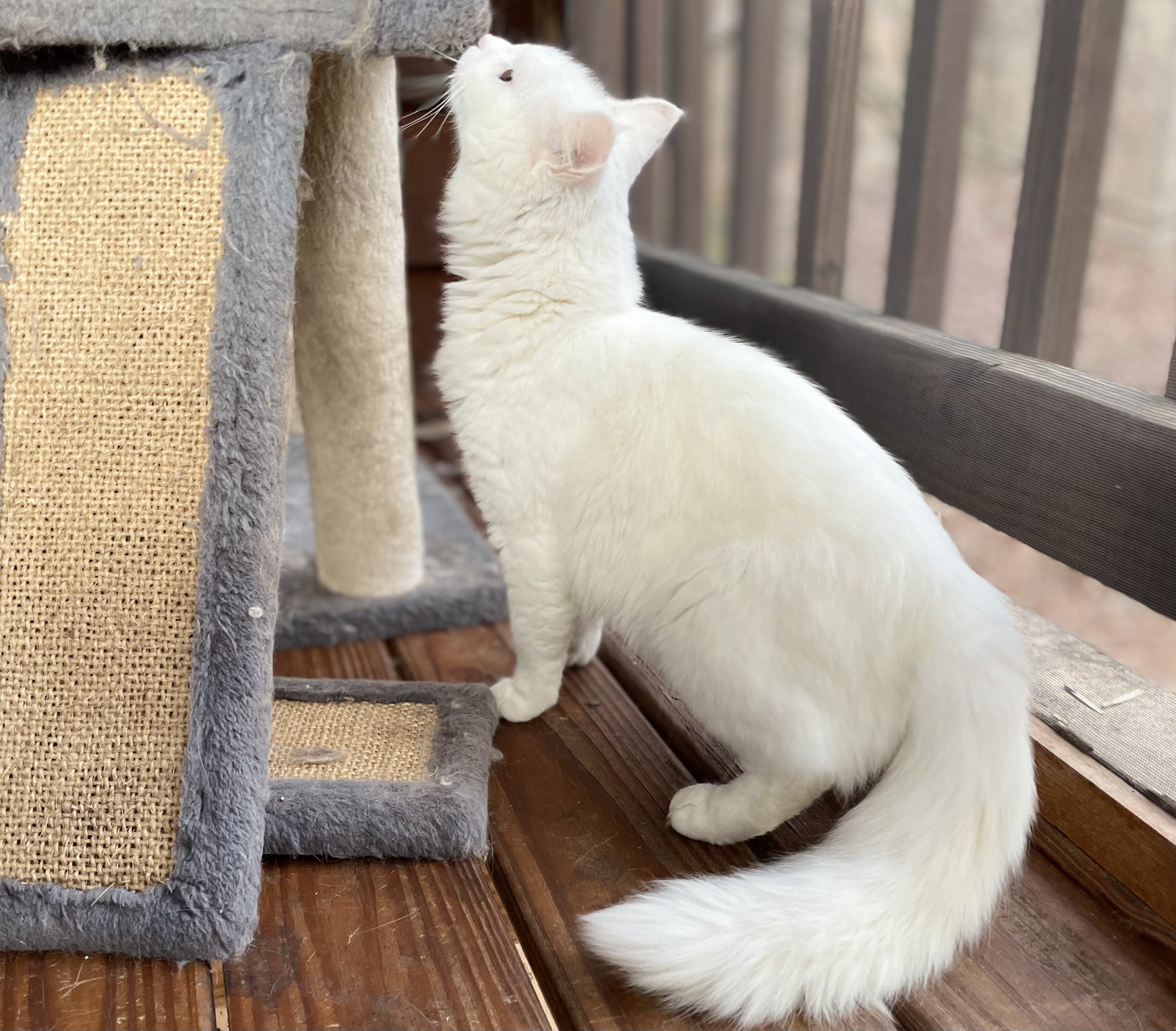 Because of my friendly personality, I was rescued from the colony to find a forever home. My foster mom says I’m very lucky; since I am all white, I was an easy target for predators, especially during the low-light hours when they hunt. I am so happy to be living safely indoors now!