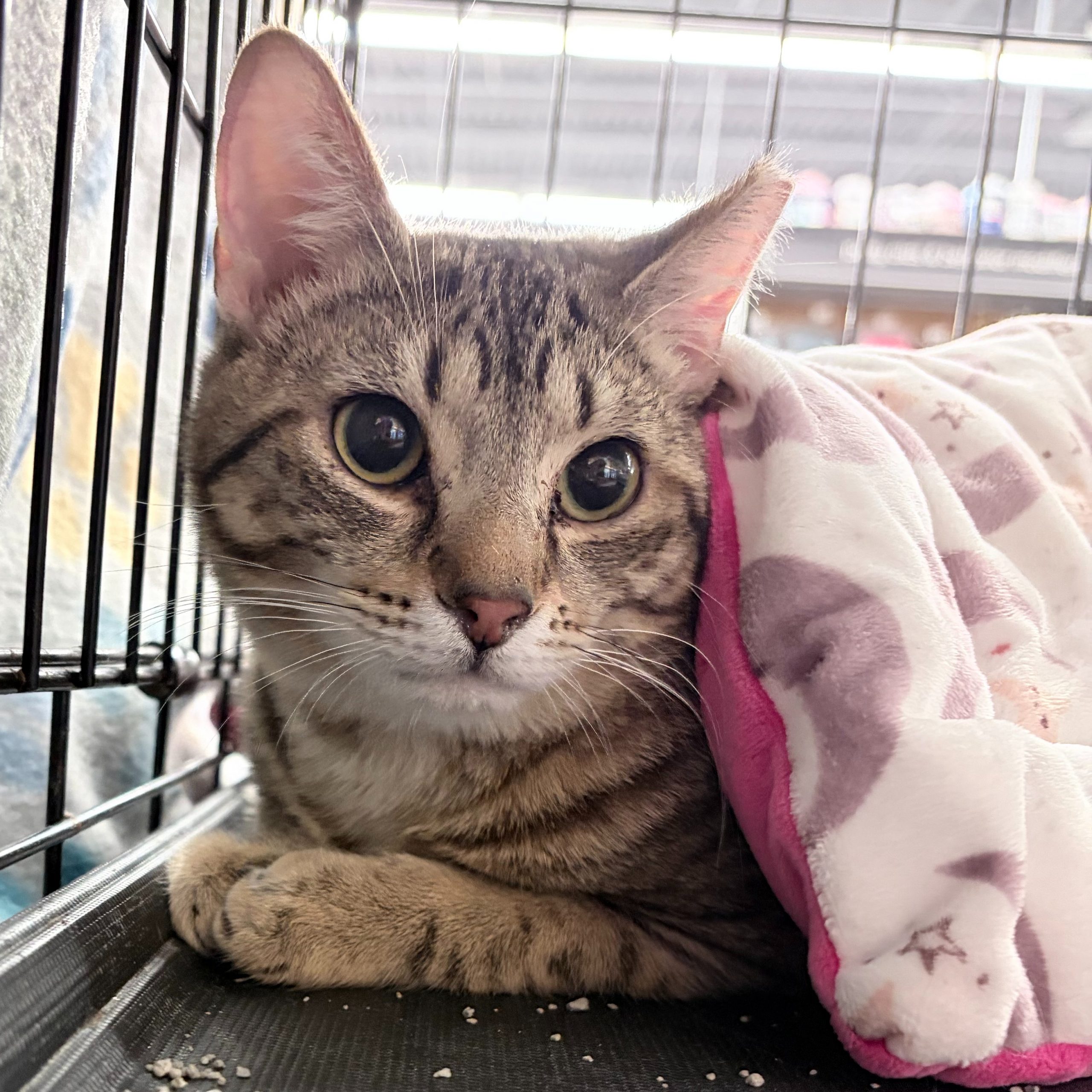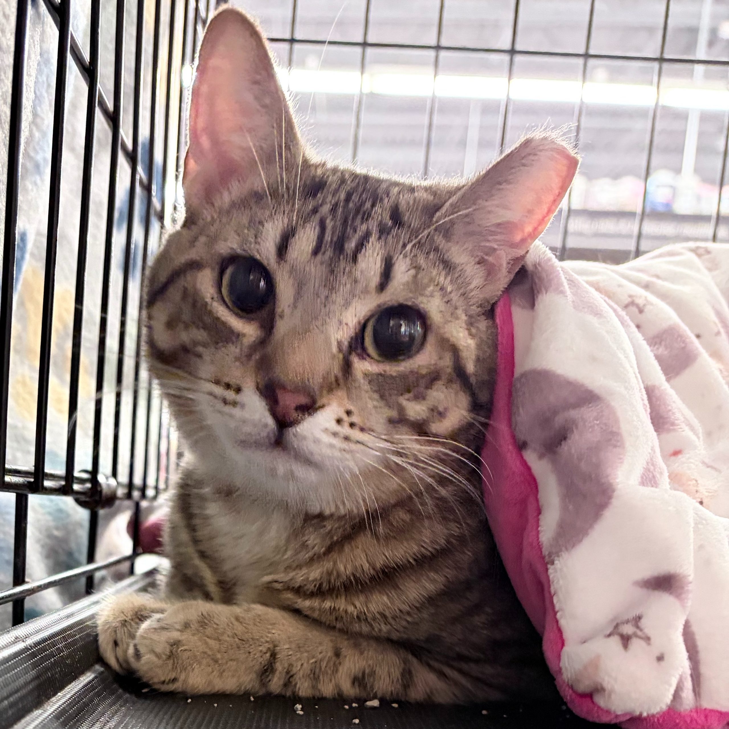 Likes belly rubs & being cuddled once she gets to know you. Came from a big litter so I think she would get along with other cats /kittens.