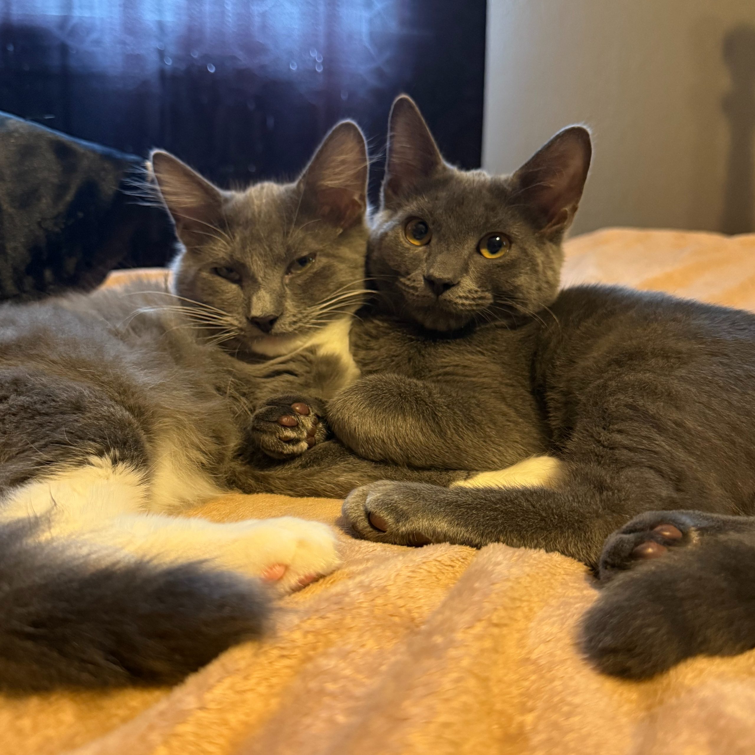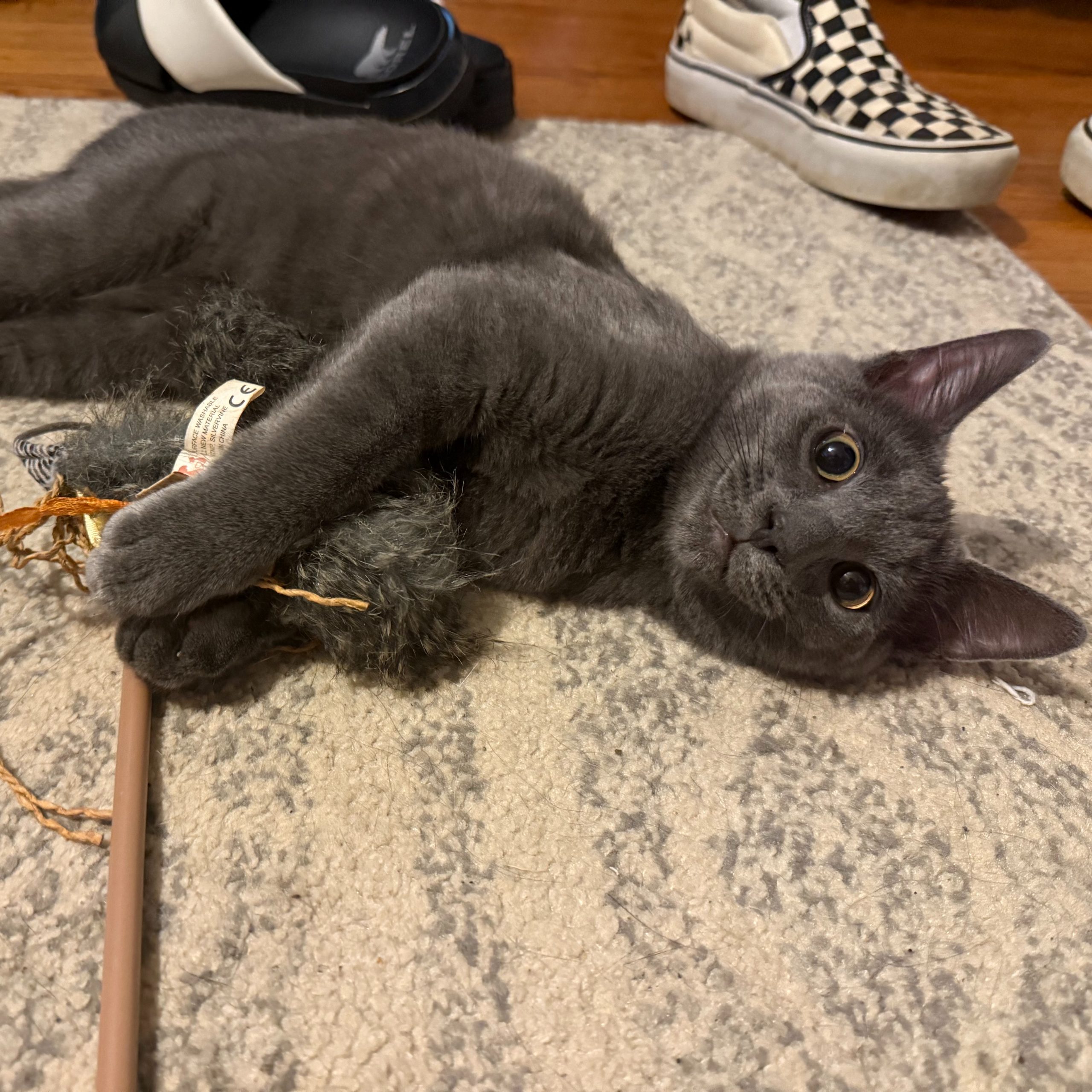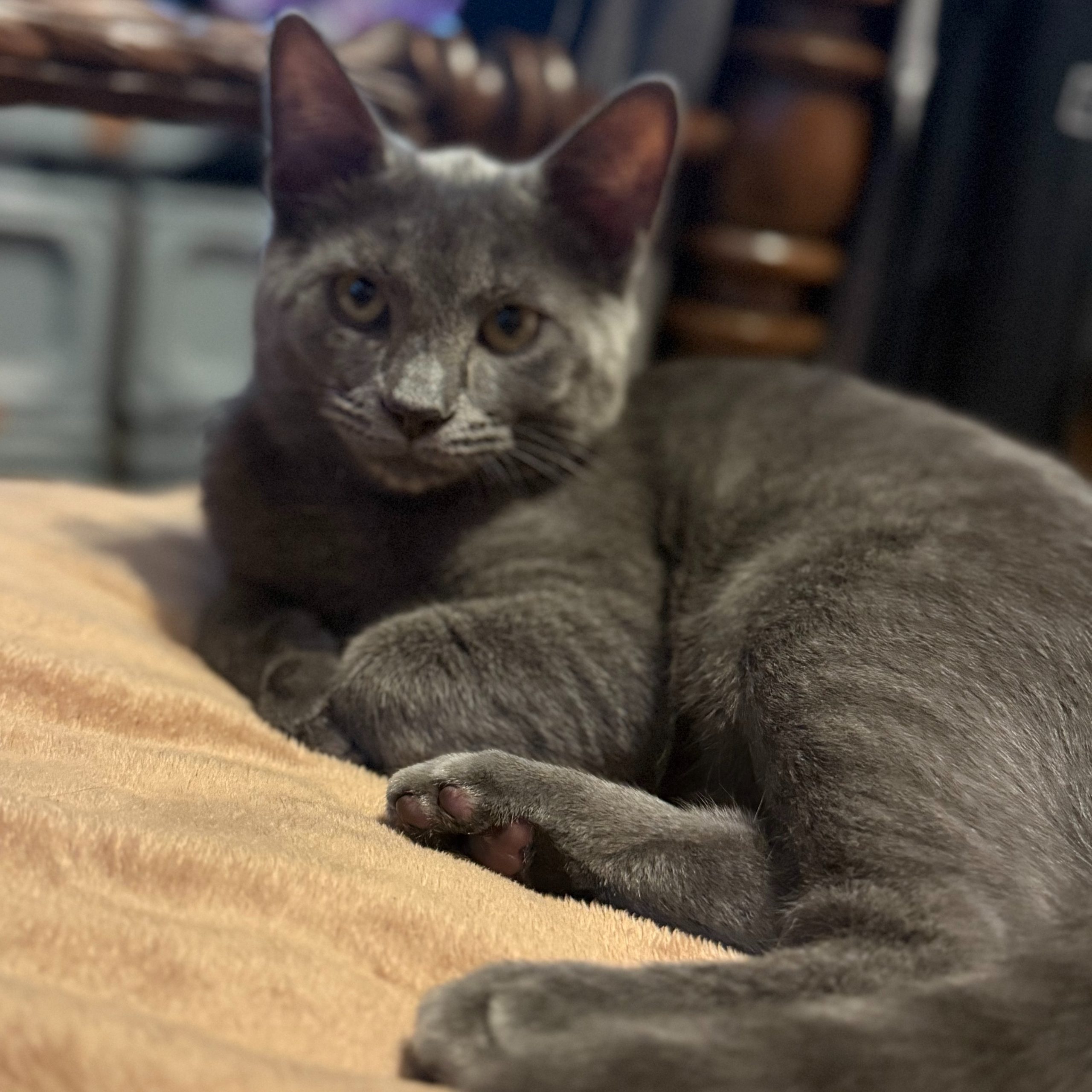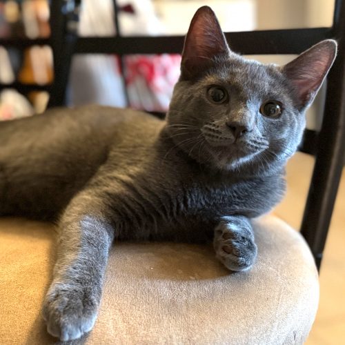 Lennon is a 5 month old sweetie looking for his furever home. He is a little shy as first but warms right up. He loves to sit with you and get pats and snuggles with his loud purr motor and gentle biscuits. His favorite toy at the moment is a shoe string he picked out himself. He loves to play with his brother and is great with other cats. He is a little cautious of dogs for now but would warm up to one with some time to adjust. Lennon is going to be a big lover, sure to steal your heart.