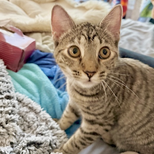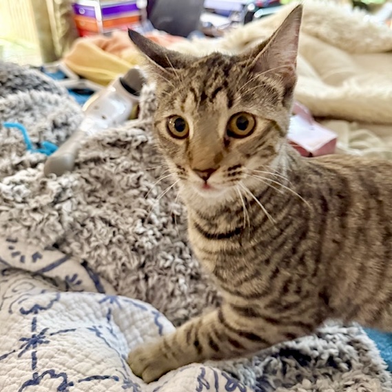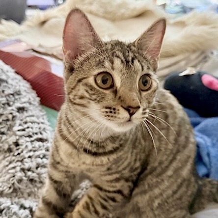 Jhirmack is a busy girl who likes to play with her siblings and help you while you do anything/everything. If she sees your lap, you are obligated to let her jump on it and rub her tummy while she purrs and plays kickety kickety with your hand! Jhirmack needs a playmate, so she must be adopted with another kitten or to a home with a cat or cats.