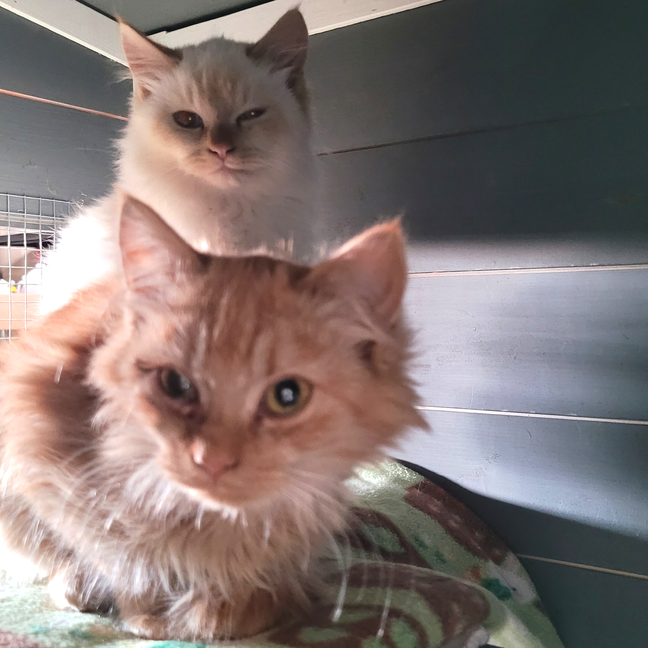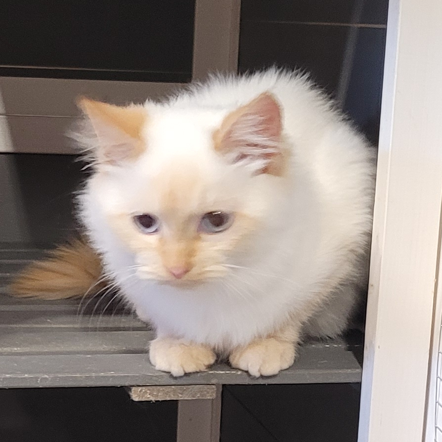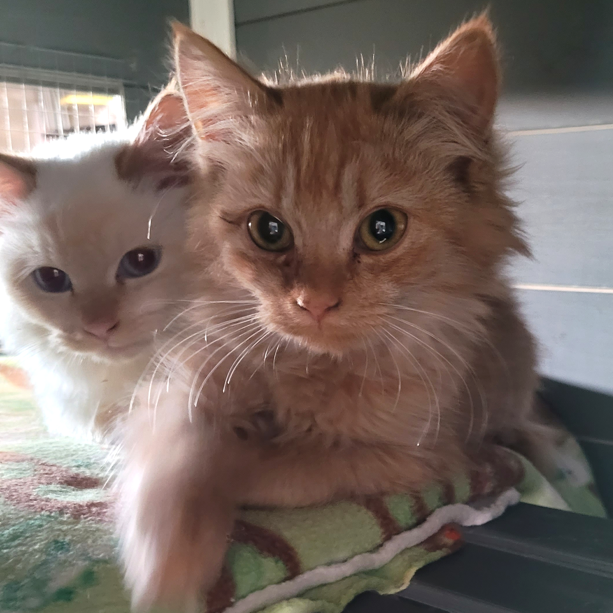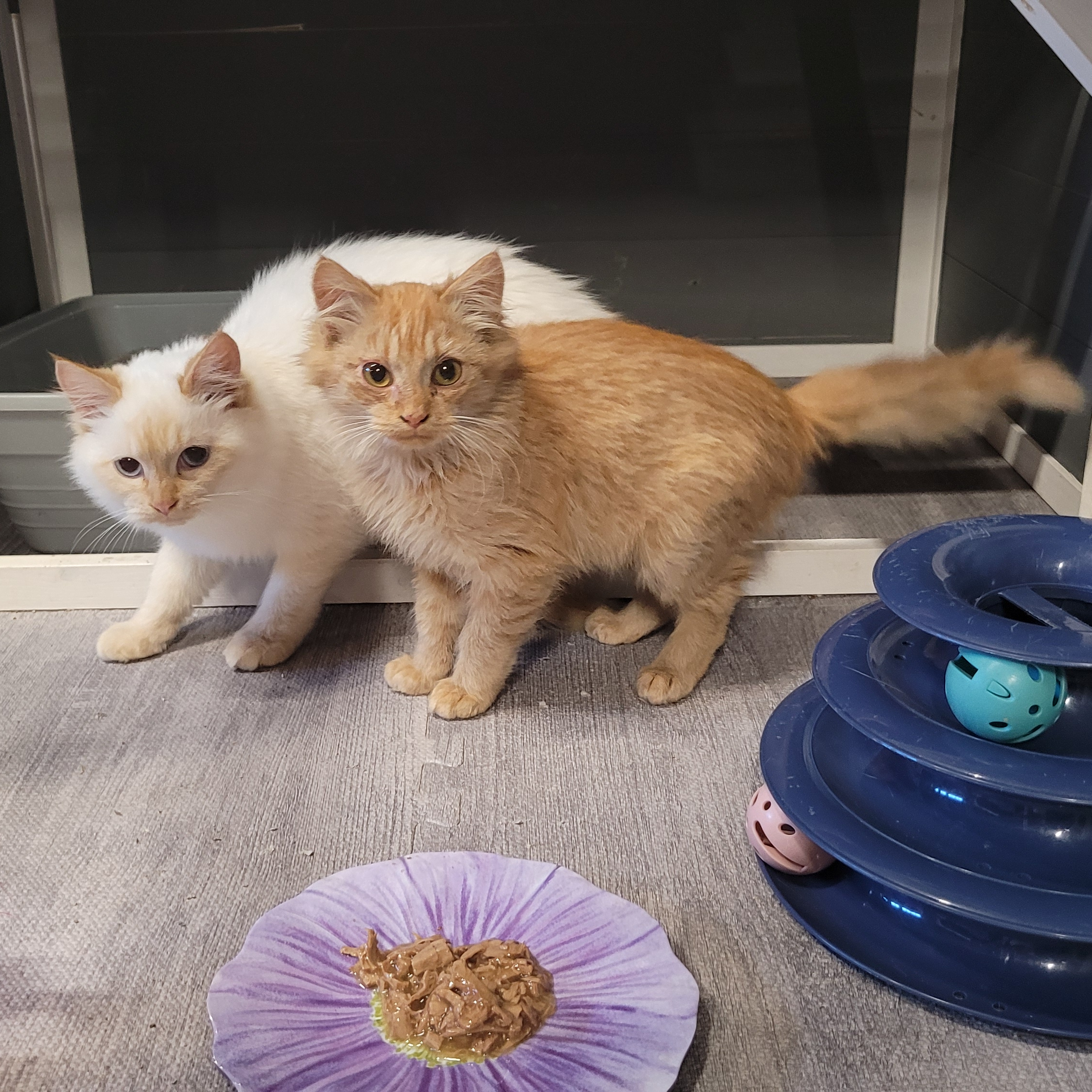 Jingle Belle and her sister, Tinsel, came from a large colony of cats in some not so great living conditions. Despite that, they are sweet and loving kittens. Jingle Belle is a little more shy, but she is learning to welcome love and affection from humans. She has the sweetest little meow and you will probably hear it often. We think Tinsel and Jingle Belle are better off together than apart, so they must be adopted together. What's better than one beautiful, loving cat? Two, of course!!