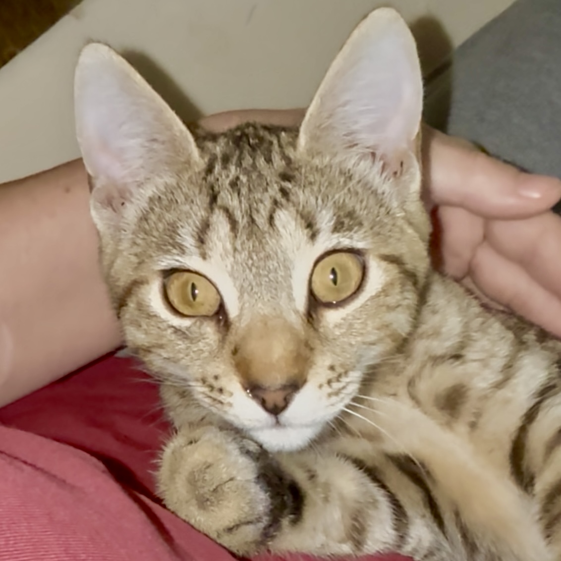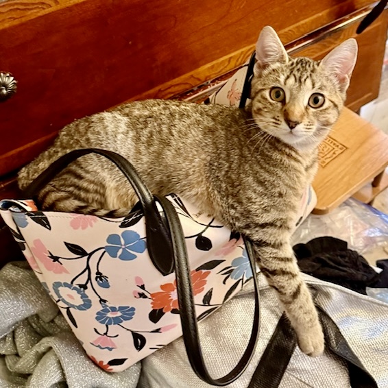 Jojoba wants to join the fun when she sees all her siblings and cousins piling on a human lap. She demands to be adored, too! In fact, she may climb the nearest “tree” (your leg) to get her share of lovies! Jojoba likes to purr, snuggle, and play with her siblings! She needs a playmate so must be adopted with another kitten or to a home with a cat or cats.