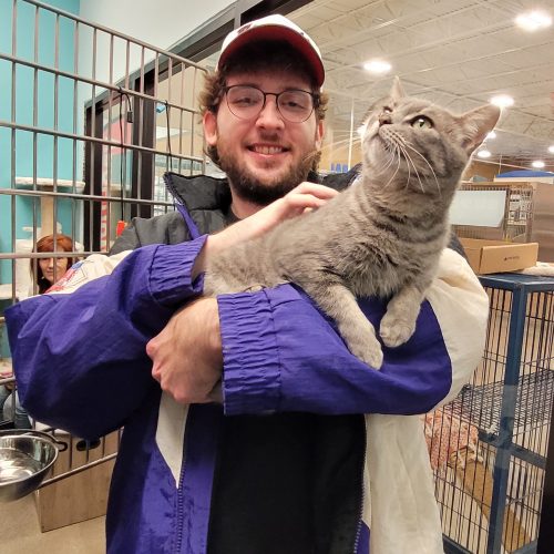 Kiwi is a beautiful girl with big green eyes. She is friendly and likes to be pet. She would rather sit close to you than sit on you, so she would be perfect for someone who would rather not smell their cat's breath or have a booty in their face. She uses soft growls to communicate, but they are not angry growls and she does not strike or bite. Kiwi would make a great couch companion
