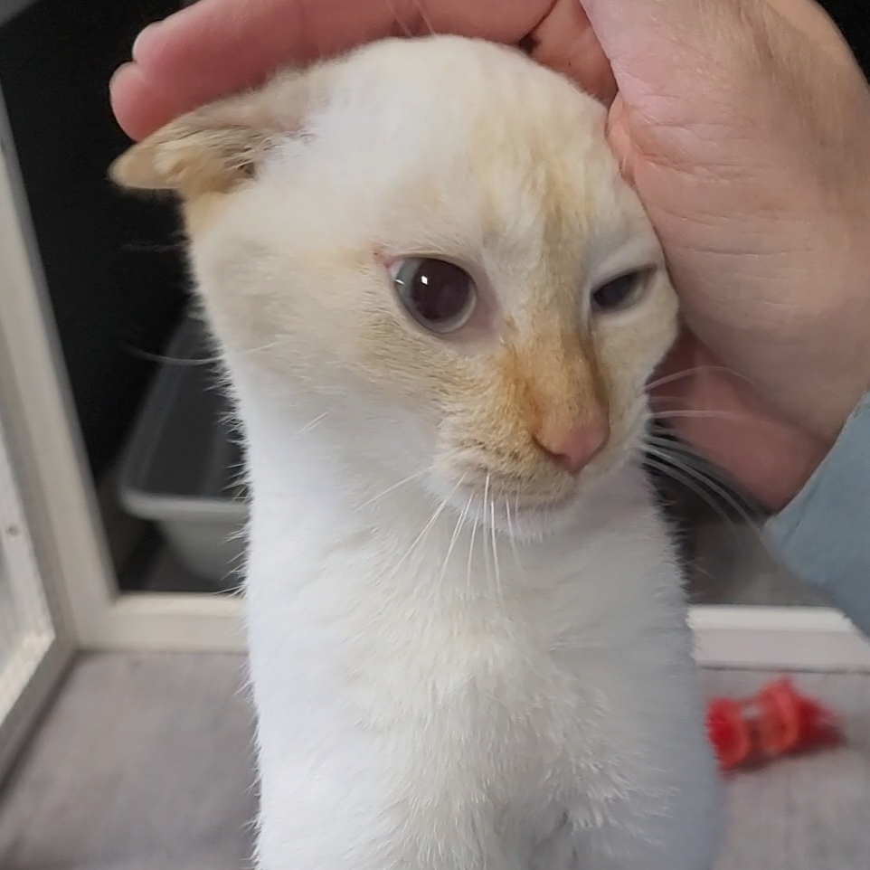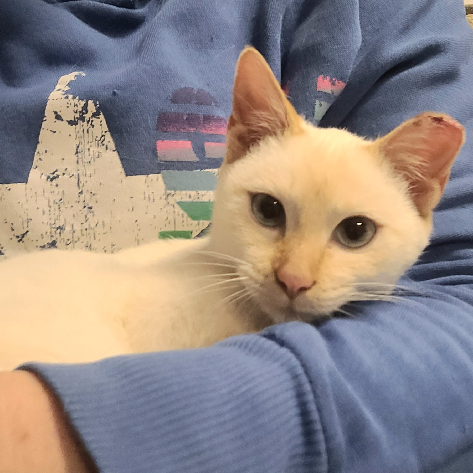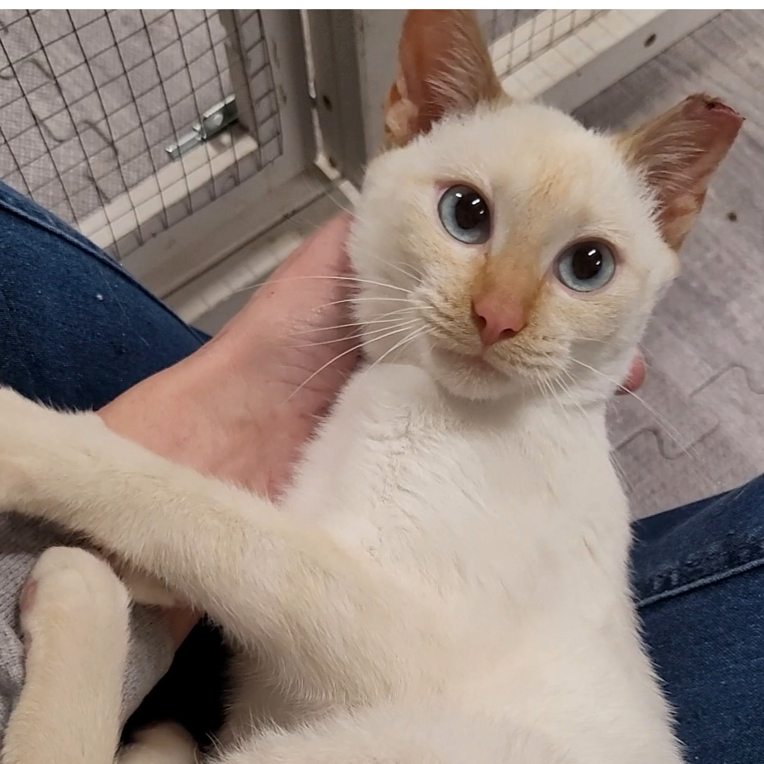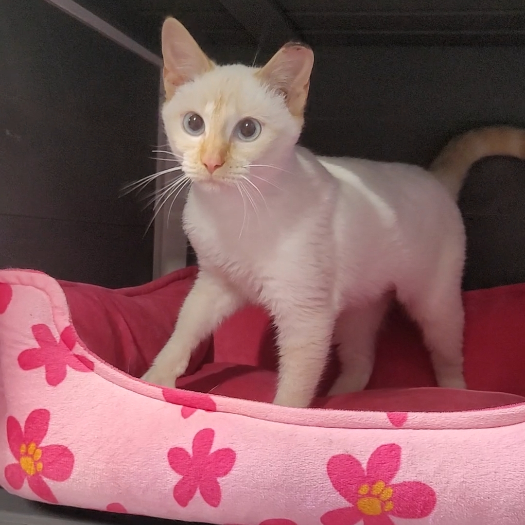 This sweet girl is addicted to love and attention. If she's not getting enough, she will let you know with a long, drawn out meow! She loves to give affectionate head butts and even some kisses. If your lap is available, she'll be in it! As much as she loves to receive attention, she also loves to give it! A flame point Siamese? Come on! This girl is a rare gem! Hit that "Apply" button right now!