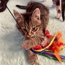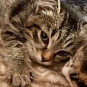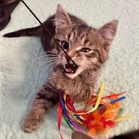 Double G looooves to eat his food and meows when he wants his meals. He also meows has something important to say, which could be anything! He plays constantly with his sister Martha with their favorite activity being wrestling and lots of rolling all around. Double G loves to explore and play when in new areas, but also is happy to curl up in your arms or lap and fall asleep.