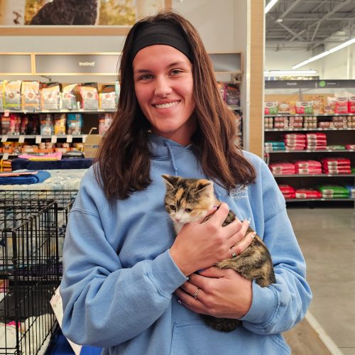 Snoop will be timid at first, and she may even greet you with a hiss. She’s definitely exactly the opposite of that sass and is super cuddly! Snoop loves her alone time away from her brother and sister yet is happy to get rowdy and play with them when the time is right for her. She loves her human snuggles and sleeps right in your arms.
