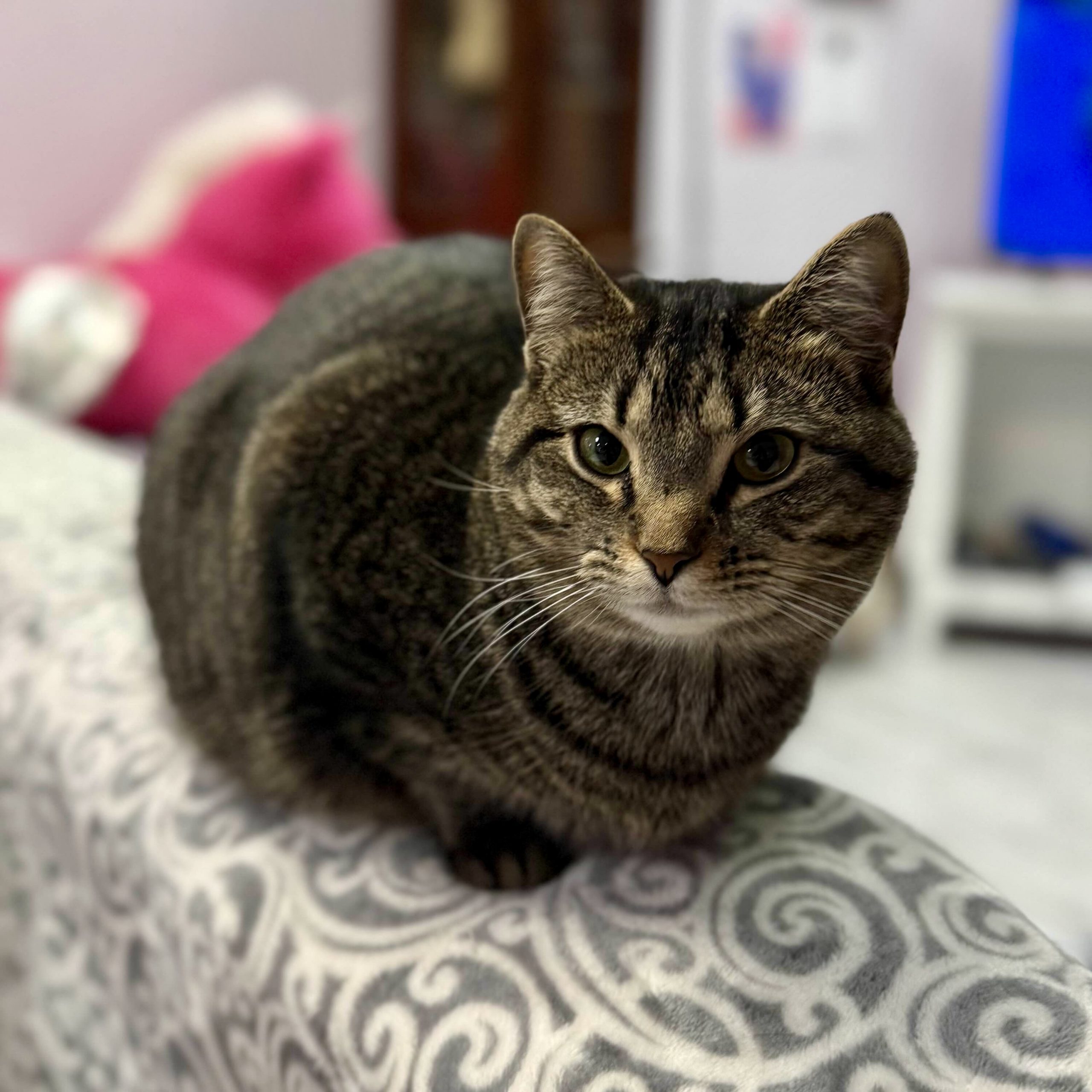 Cheerio is a sweet, laid-back girl who enjoys taking life at her own cozy pace. While she’s more on the lazy side, she’ll still happily play when the mood strikes. She loves following her people around just to see what’s going on and be part of the action. Cheerio is a total cuddle bug who just wants to be your best friend. She’d do great with other cats or would be perfectly content being your one and only!