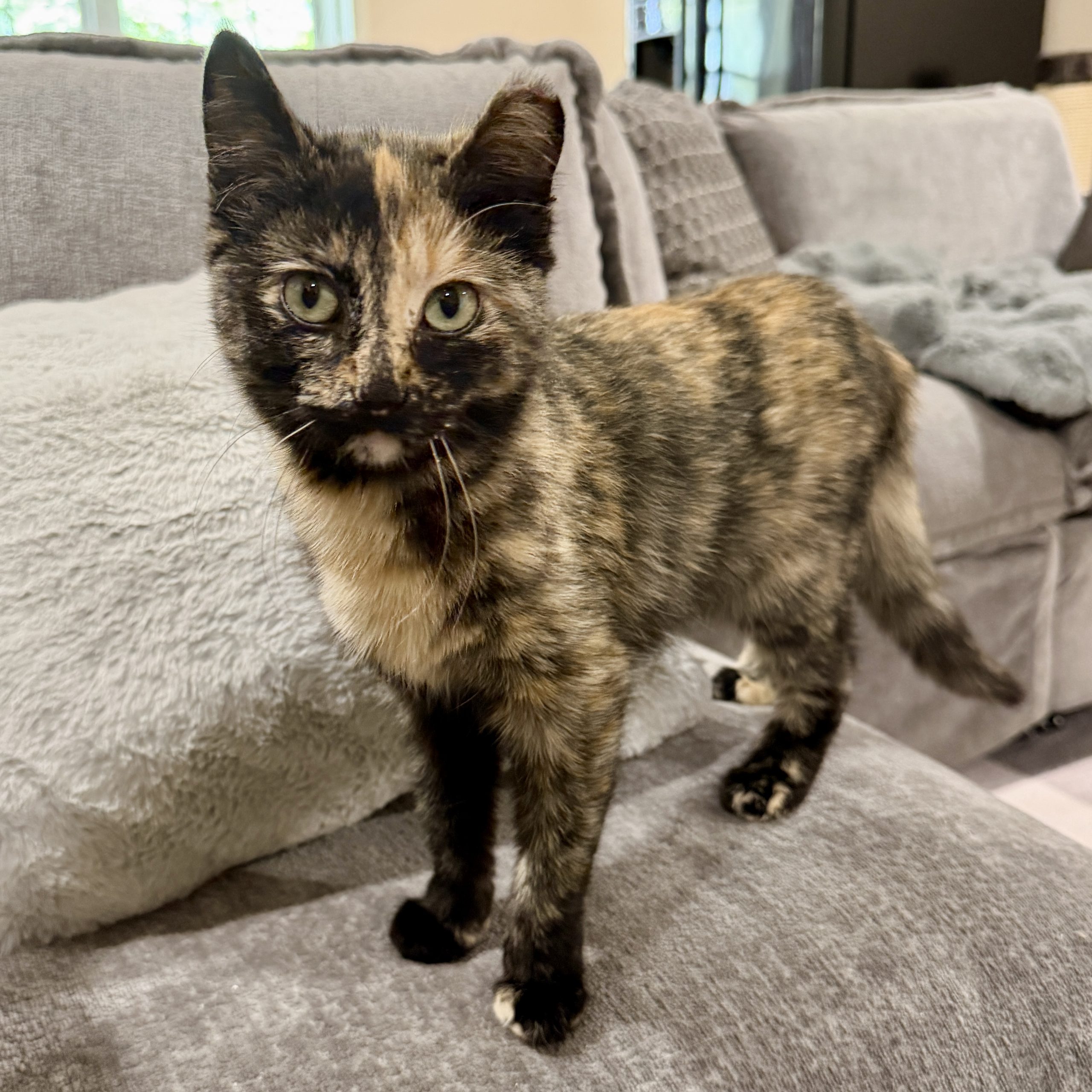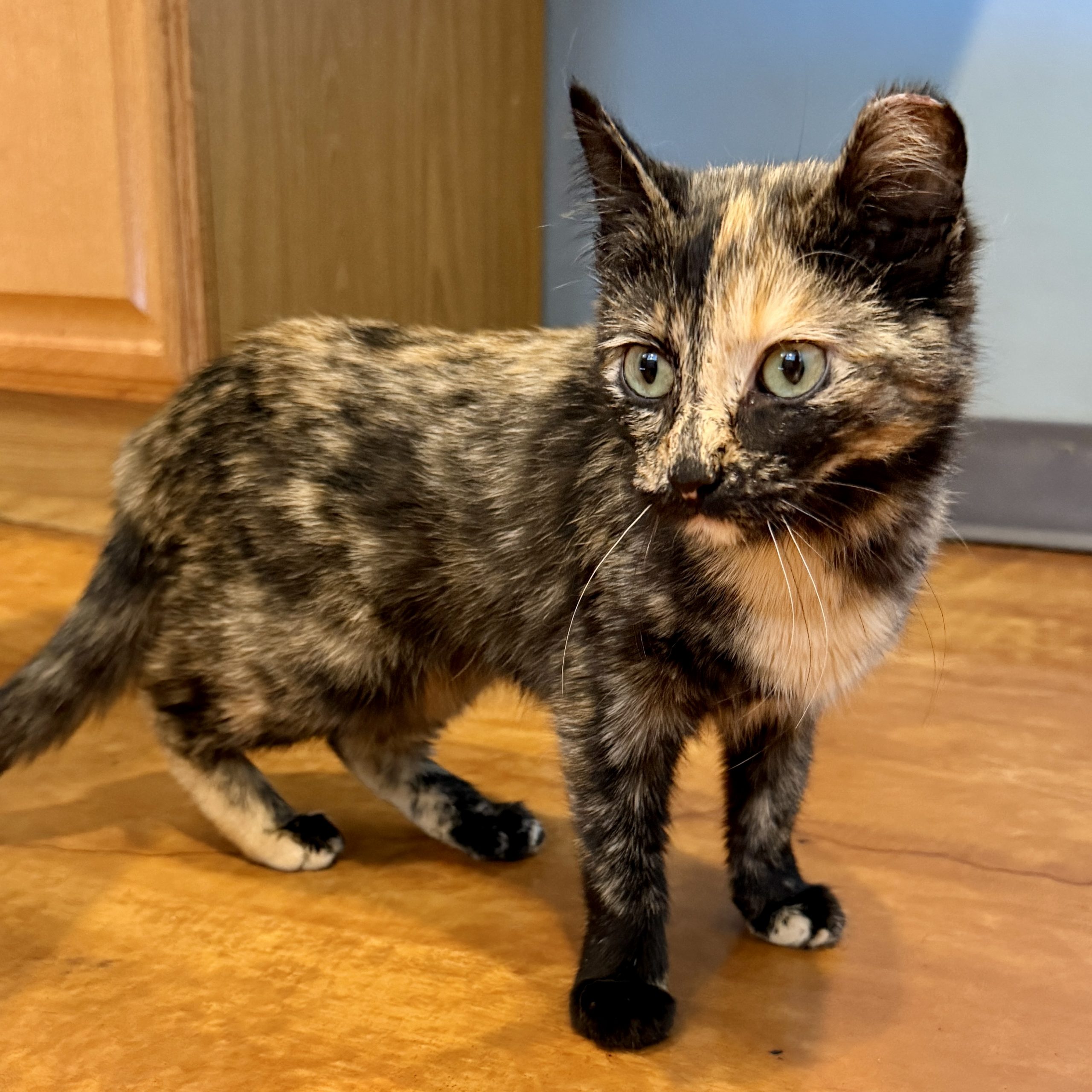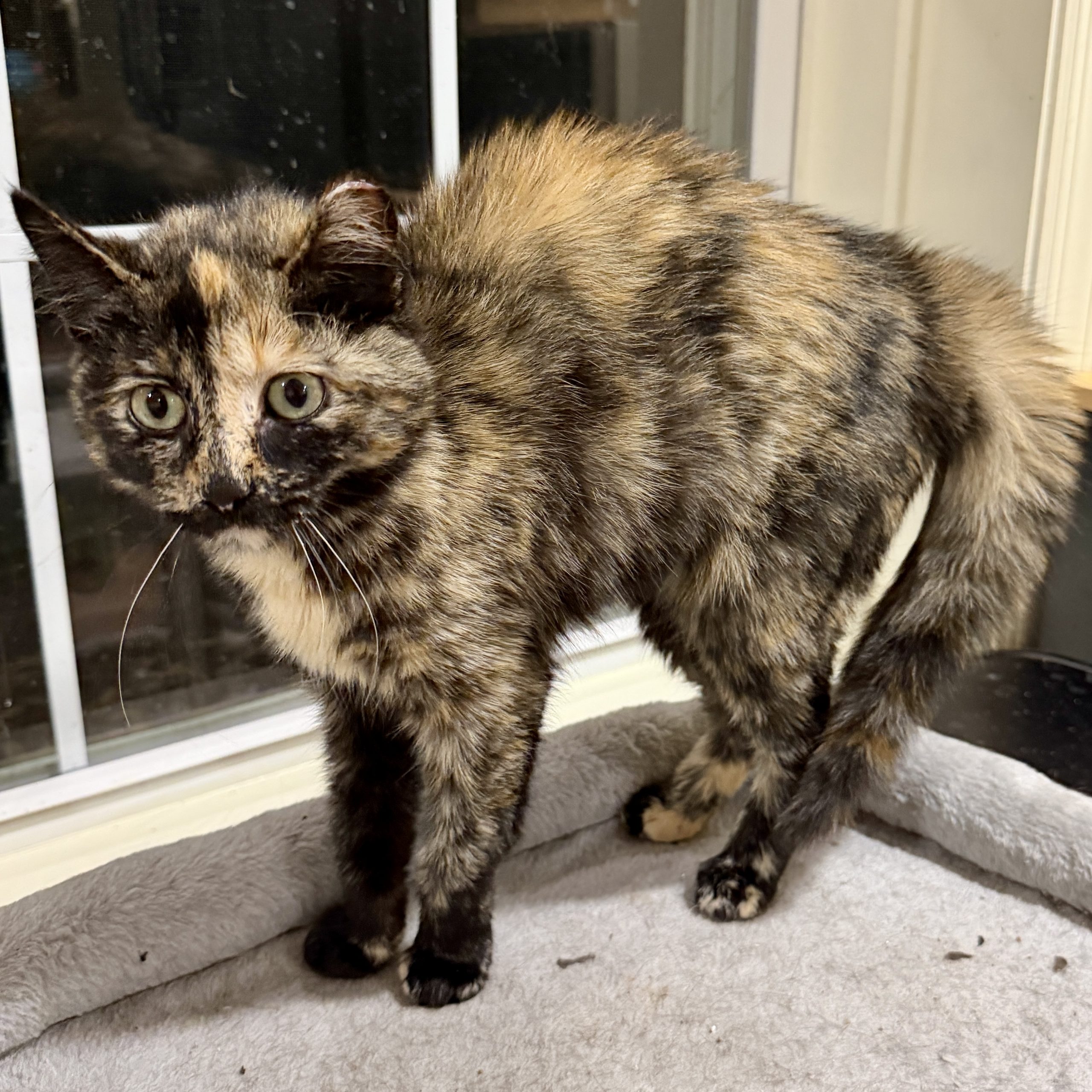 Lobelia, a six-month-old beauty, has already had quite the journey. Lobelia was found wandering a neighborhood in West Knoxville—clearly someone’s pet at some point, but unspayed and IN HEAT… a risky situation this time of year. Thankfully, she’s now safe, cared for, and officially retired from the kitten-making business. What she is busy doing now? Being absolutely adorable. Lobelia may be tiny, but her purrs are HUGE. She’s incredibly sweet, loves attention, and will happily melt into you for cuddles. She gets along just fine with other cats and would enjoy a feline friend. Dogs, on the other hand, are a little scary right now—but with patience and time, she may come around. She’s the perfect mix of gentle, loving, and just a little bit brave as she reacquaints herself with the good life indoors. Ready to give Lobelia the forever home she deserves?