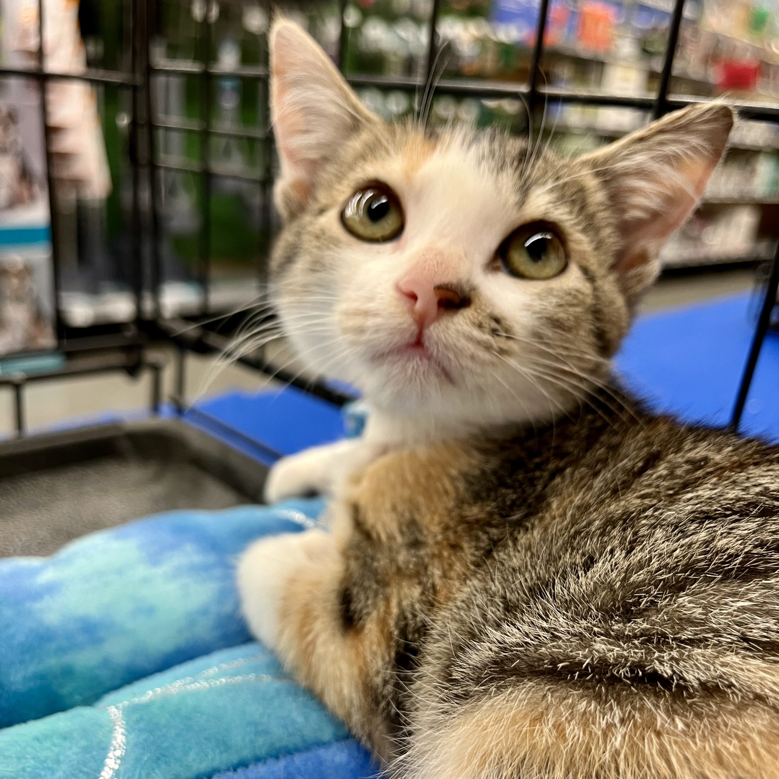 Hello, My name is Lucy Lulu! I’m a sweet and gentle girl ready to meet my new family. Can you believe I was found in a barn all by myself when I was only four weeks old? Wild, right?! I’m a little bashful but once you gain my trust I promise I’ll be your bestie! I love a good nap, but when I wake up I love playing with a soft ball of yarn, my favorite toy!! Let’s weave our story together, one purr and strand of yarn at a time!
