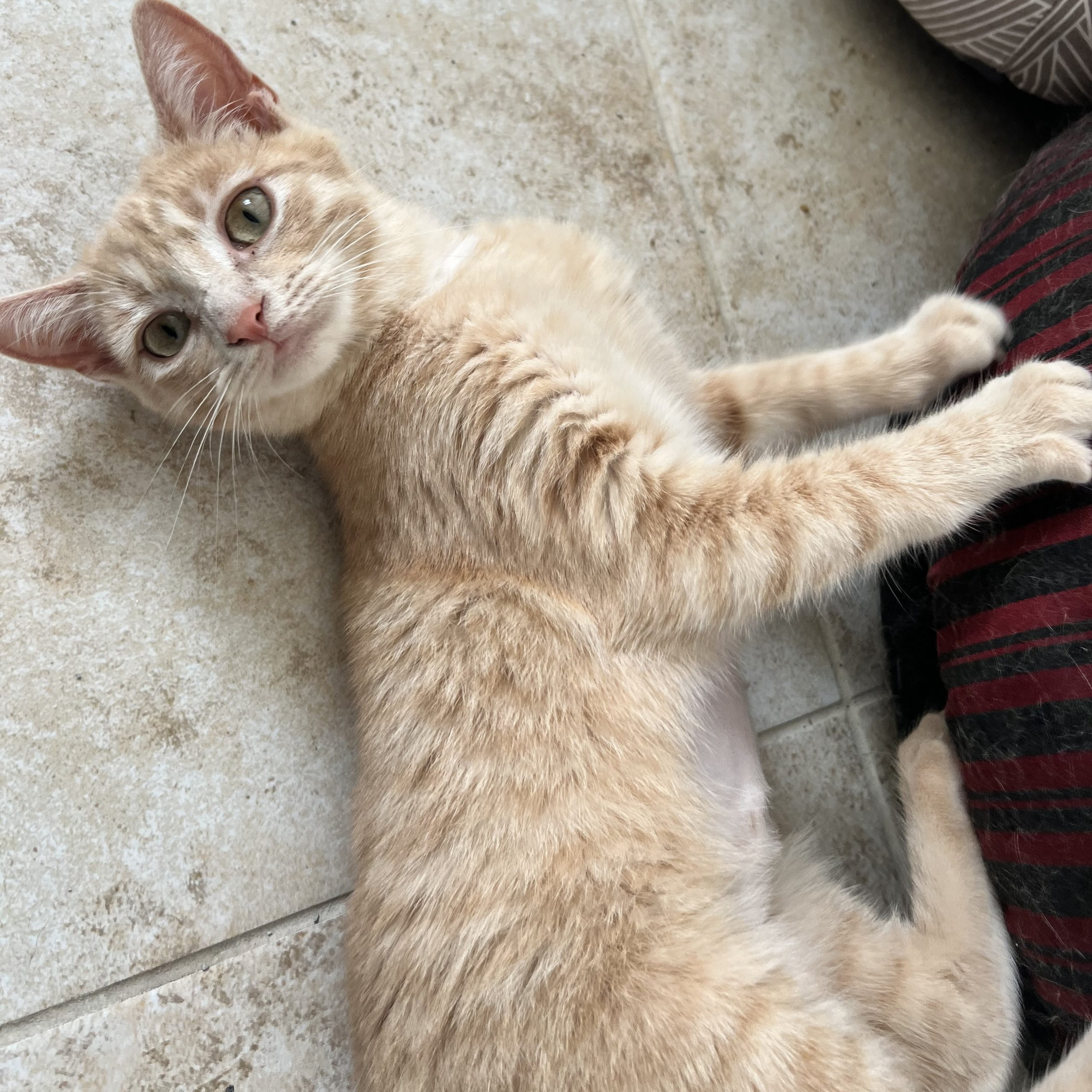 This adorable bobtail girl is equal parts hunter, model, and biscuit-making machine. Cheeze It lives for playtime—if it moves, she’s chasing it. Toys, shadows, your shoelaces… all fair game.