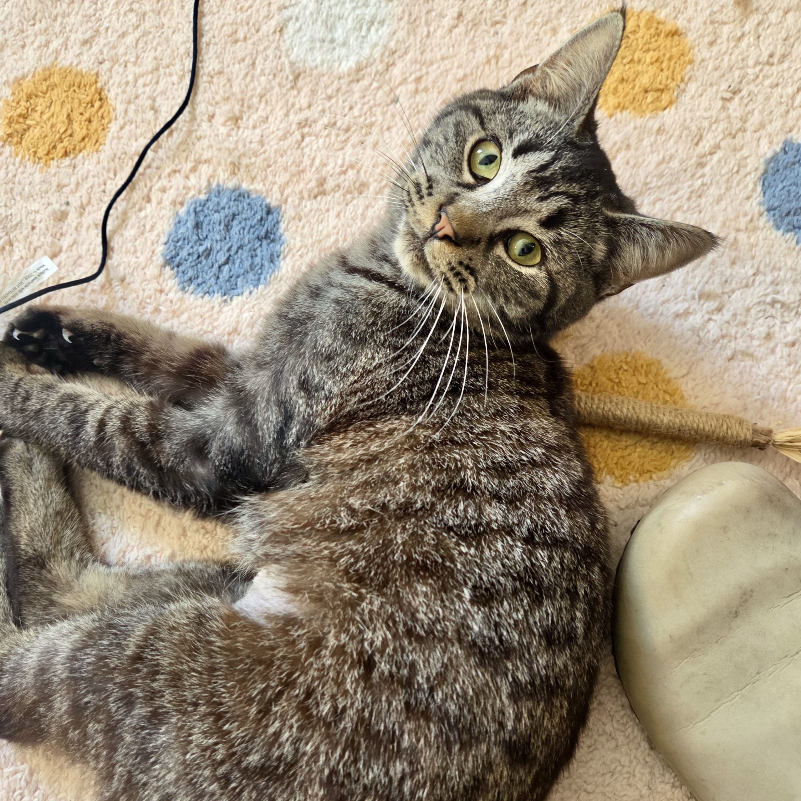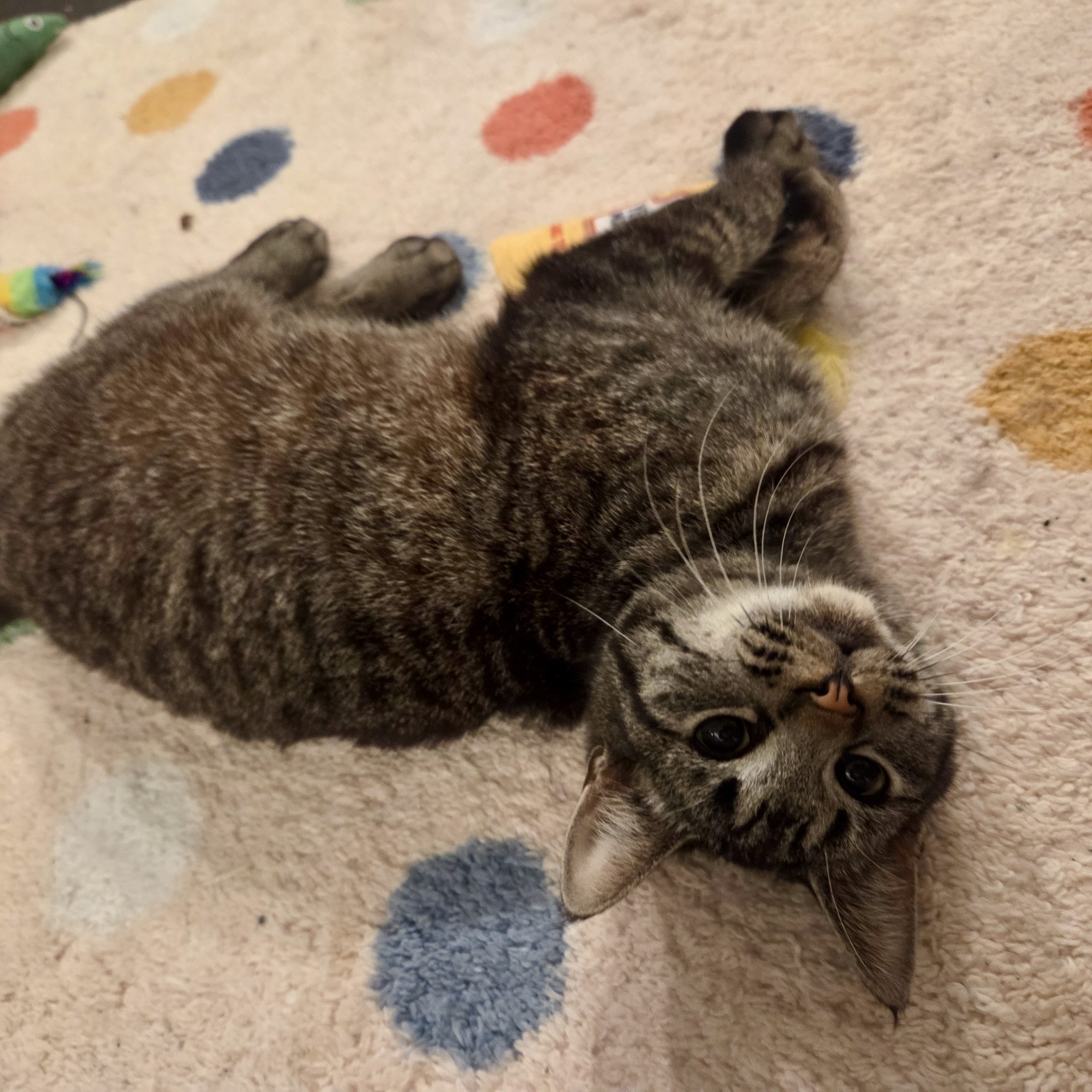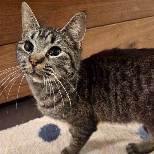 Moana came out of her trap sweet, loving and ready to start a new life. She is definitely ready to live the princess life of an inside cat, and has been doing great in her foster home. Shes around a year old and is very playful, she loves wand toys and anything with a feather. She loves to play with the two children under 6 in her foster home, she rubs all over their legs excited for more pets. She also enjoys the three other cats in her foster home and would do well with another cat in the house. She does not enjoy the dogs and being the princess she is, she would rather not have to deal with dogs in her forever home. She has a lot of love to give and would appreciate some wet food in return.