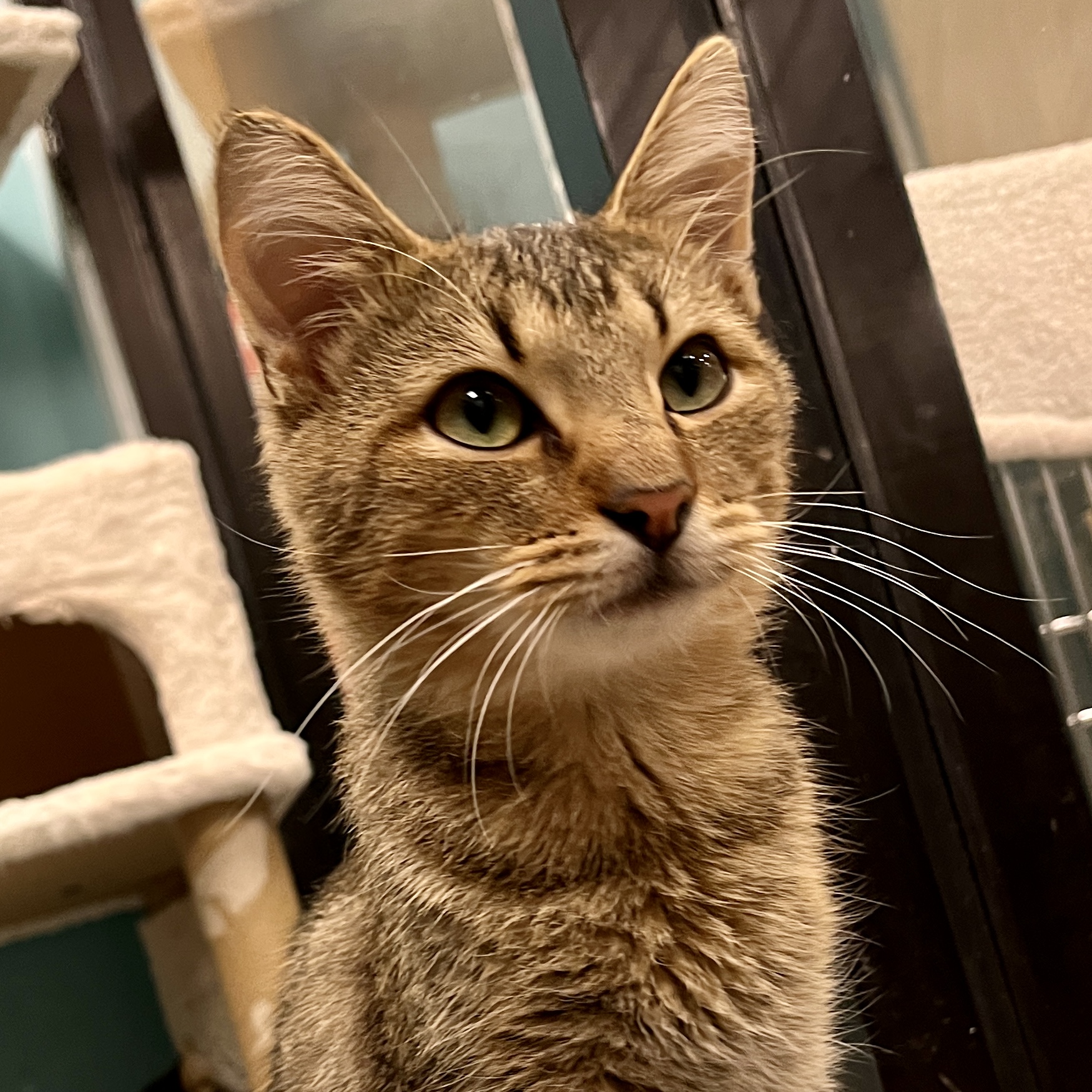 Hi, I’m Mojito, the cat with a zest for life! My mom tells me how beautiful I am, then she says I am the biggest pest ever. That is great, right? I help her with everything. I am the best helper. If you're looking for a brave companion to share your adventures, or a mellow buddy to relax with, I'm your cat. I love cuddles and will often be right in your face, seeking attention and affection. I'm sweet and have a big heart, ready to love and be loved. Adopting me means gaining a loyal friend who will always be there to greet you with purrs and warmth.