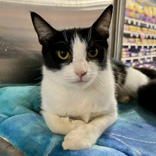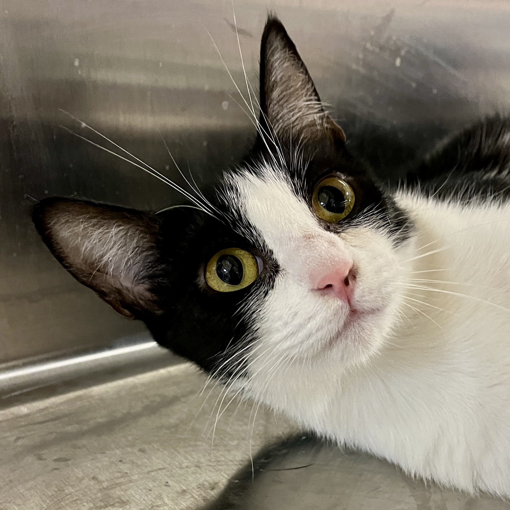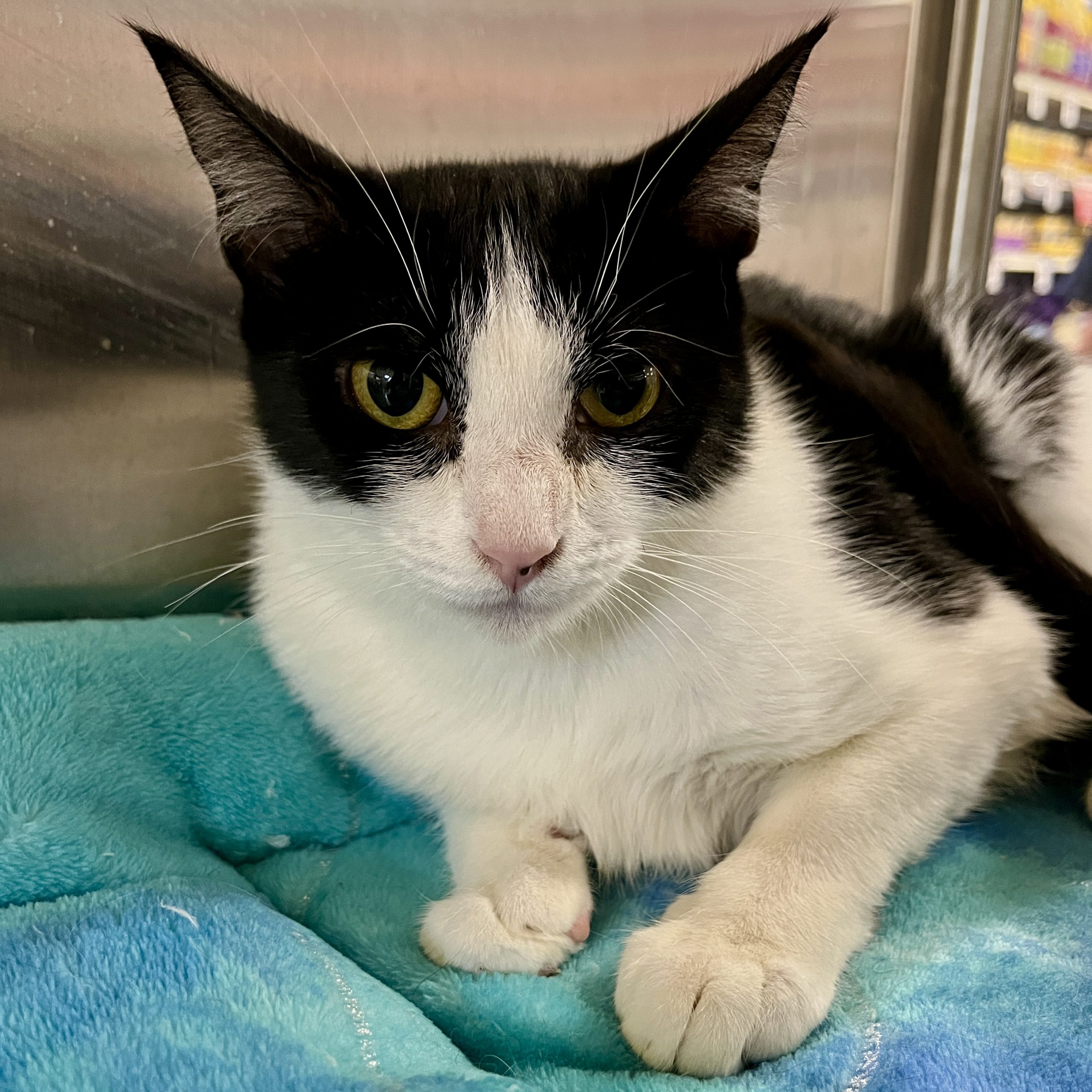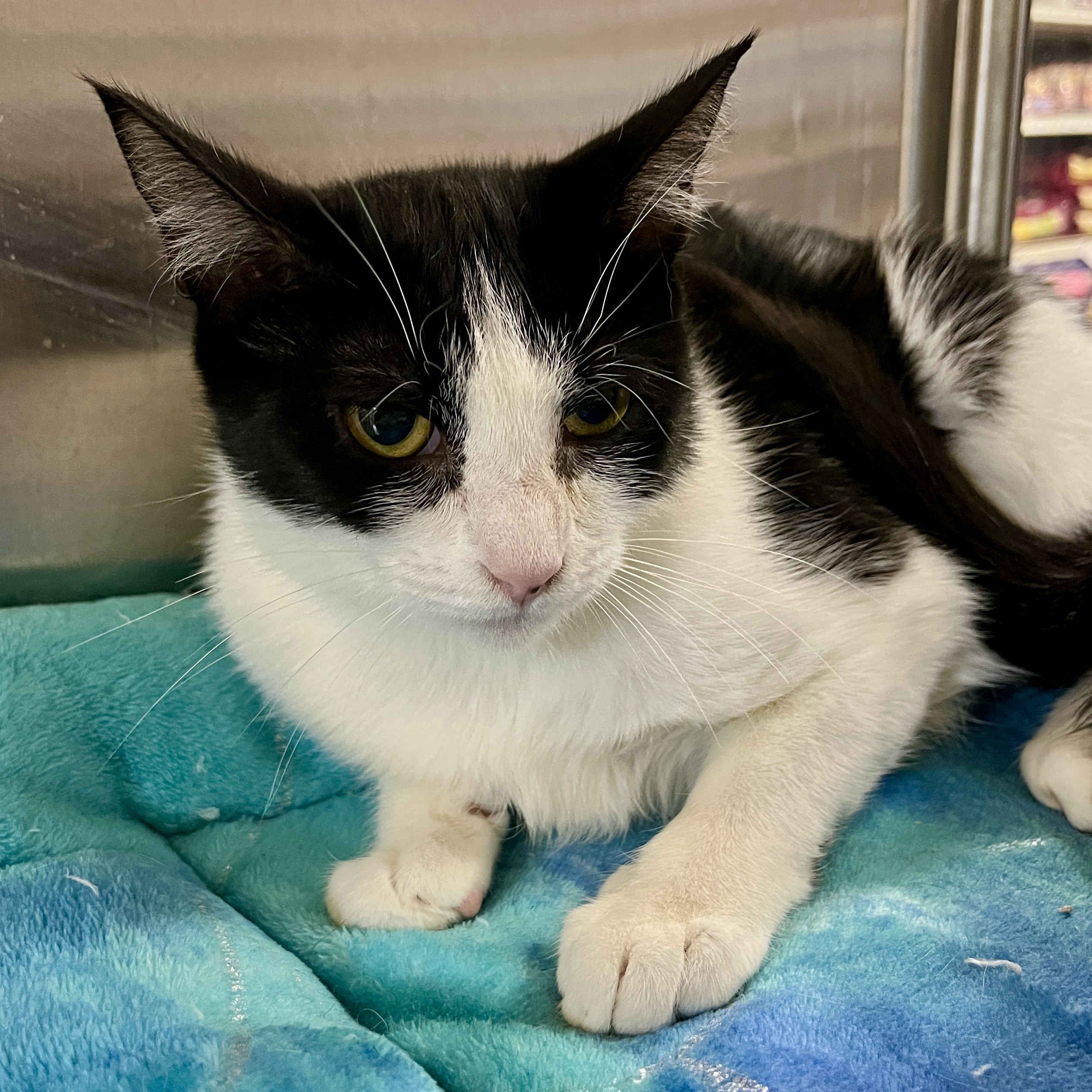 Hi, I'm Momma Spot! I was a very young mom-cat, but now I'm ready to find a forever family. Because I am still just a kitten myself, I love exploring every nook and cranny, chasing toys with endless energy, and when I'm all tuckered out, I'm the best cuddle buddy you could wish for. Gentle and sweet, I make friends easily and can't wait to shower my new family with affection. Adopt me and let's start our adventure together, filled with love, play, and lots of purring!