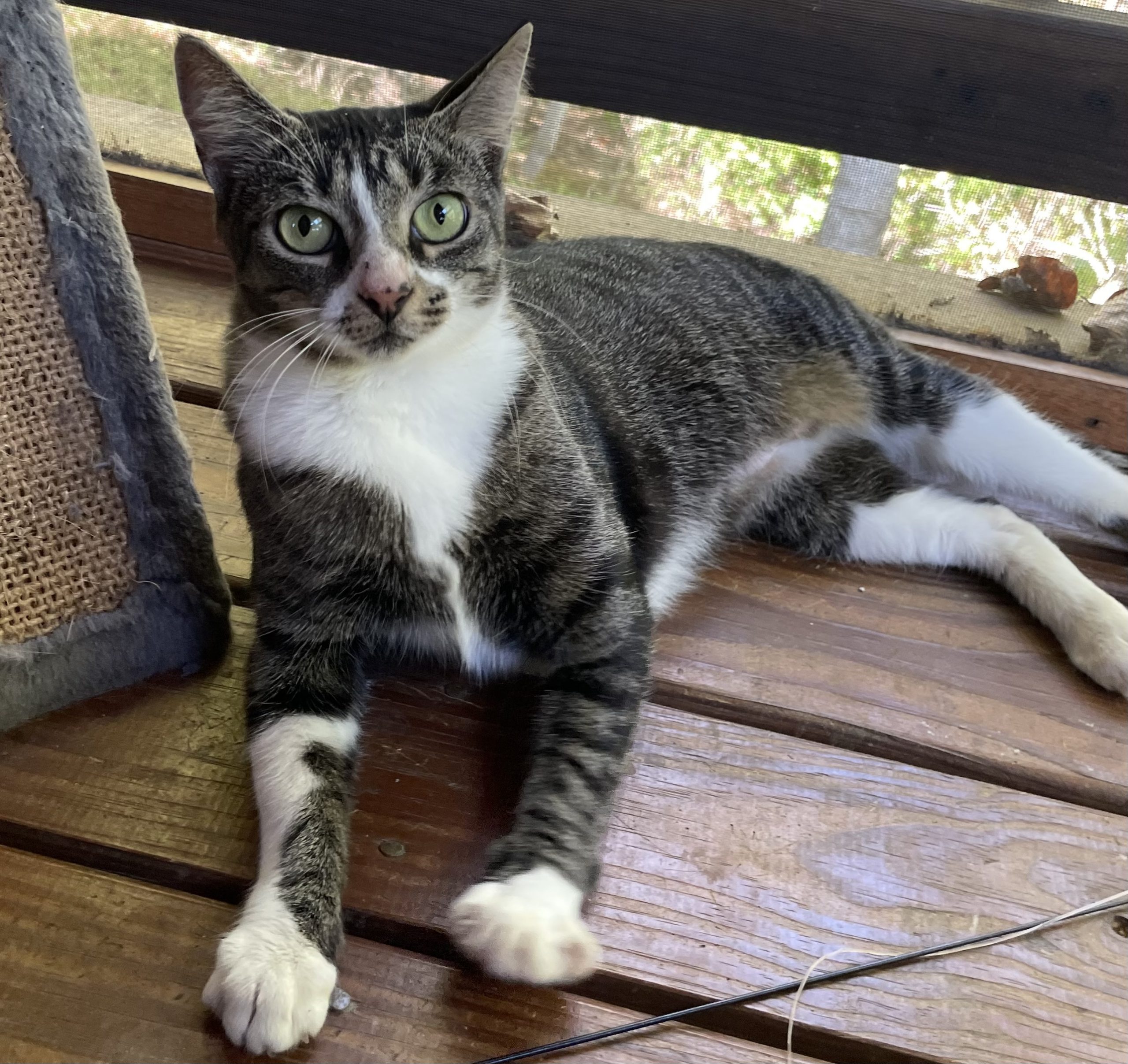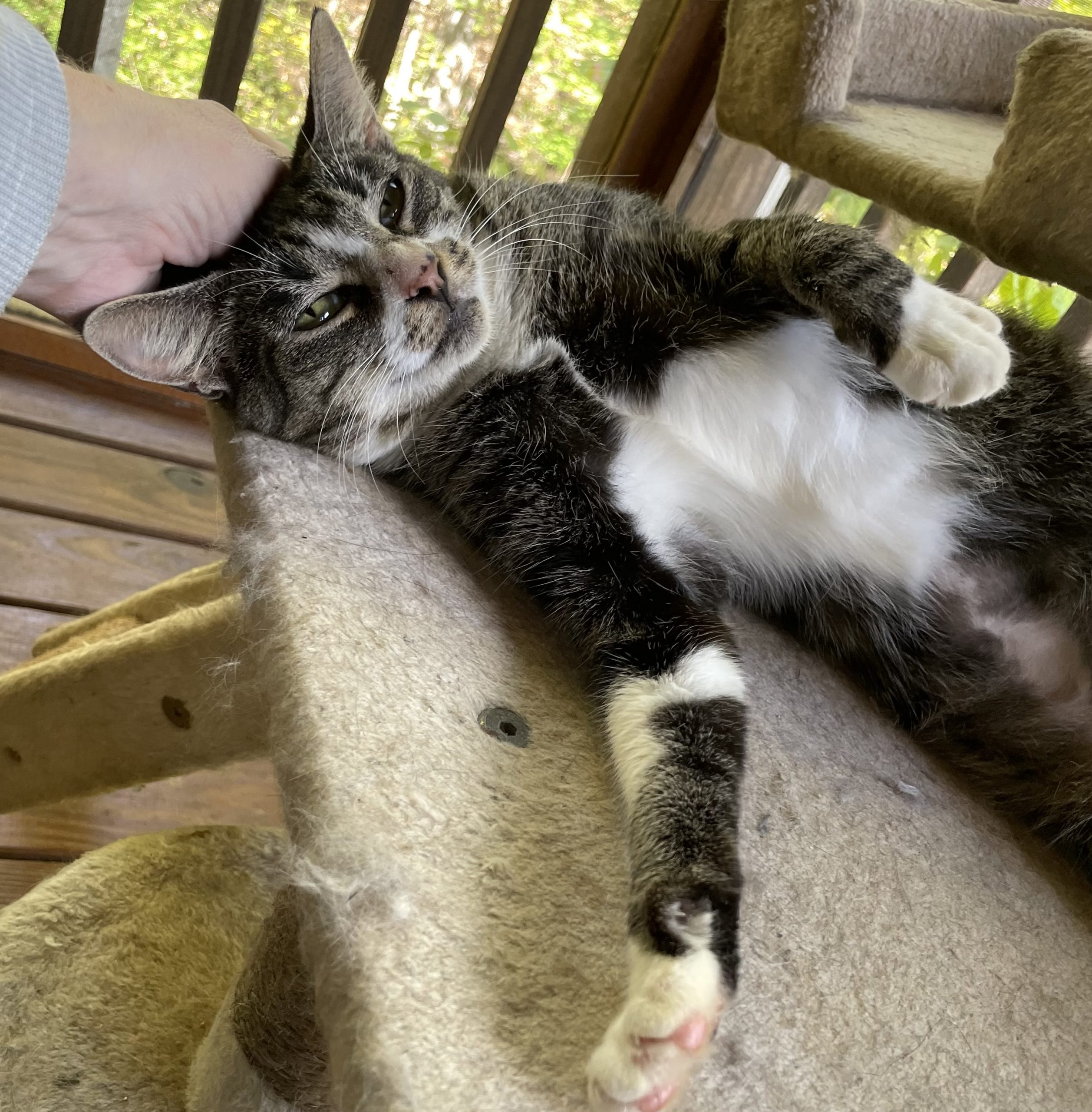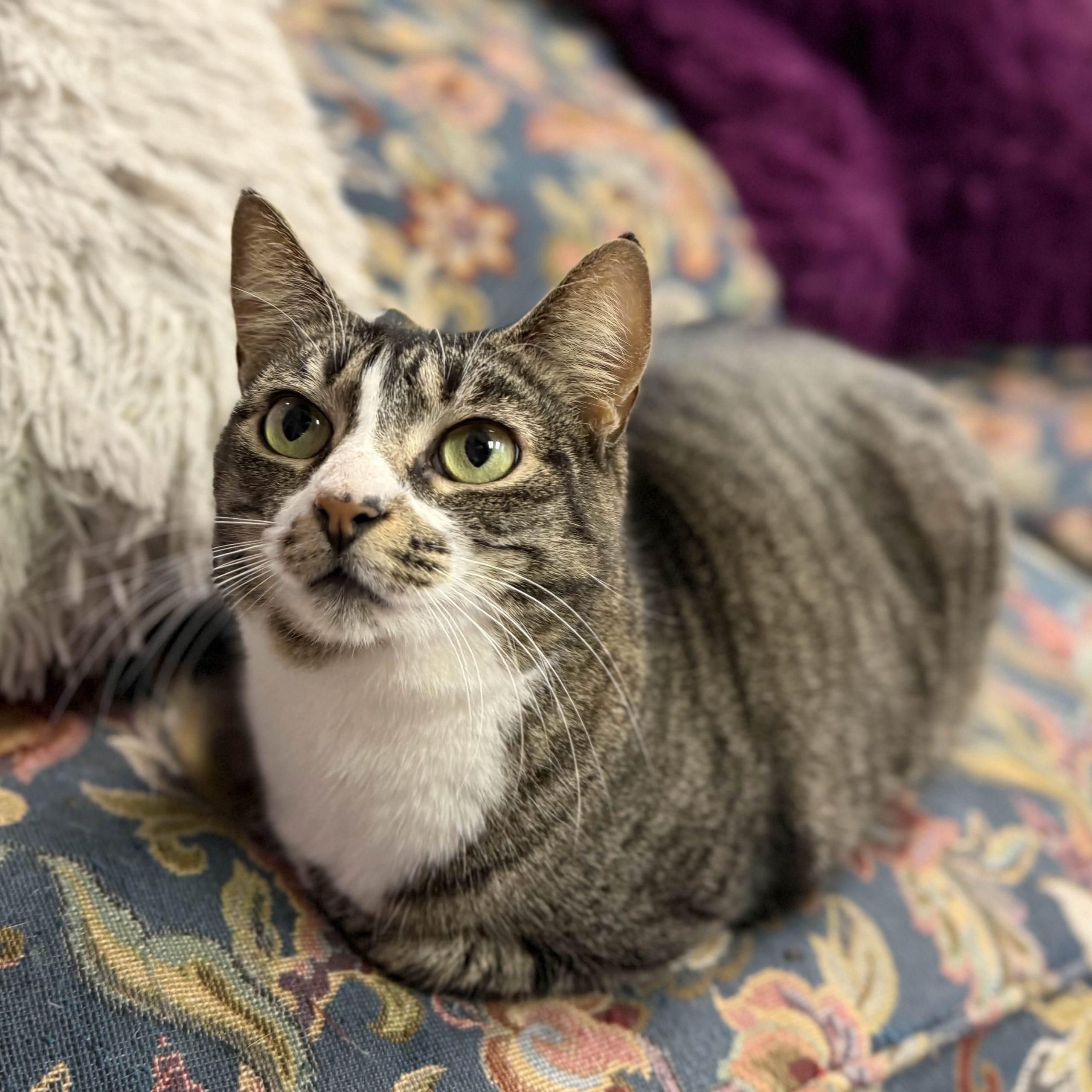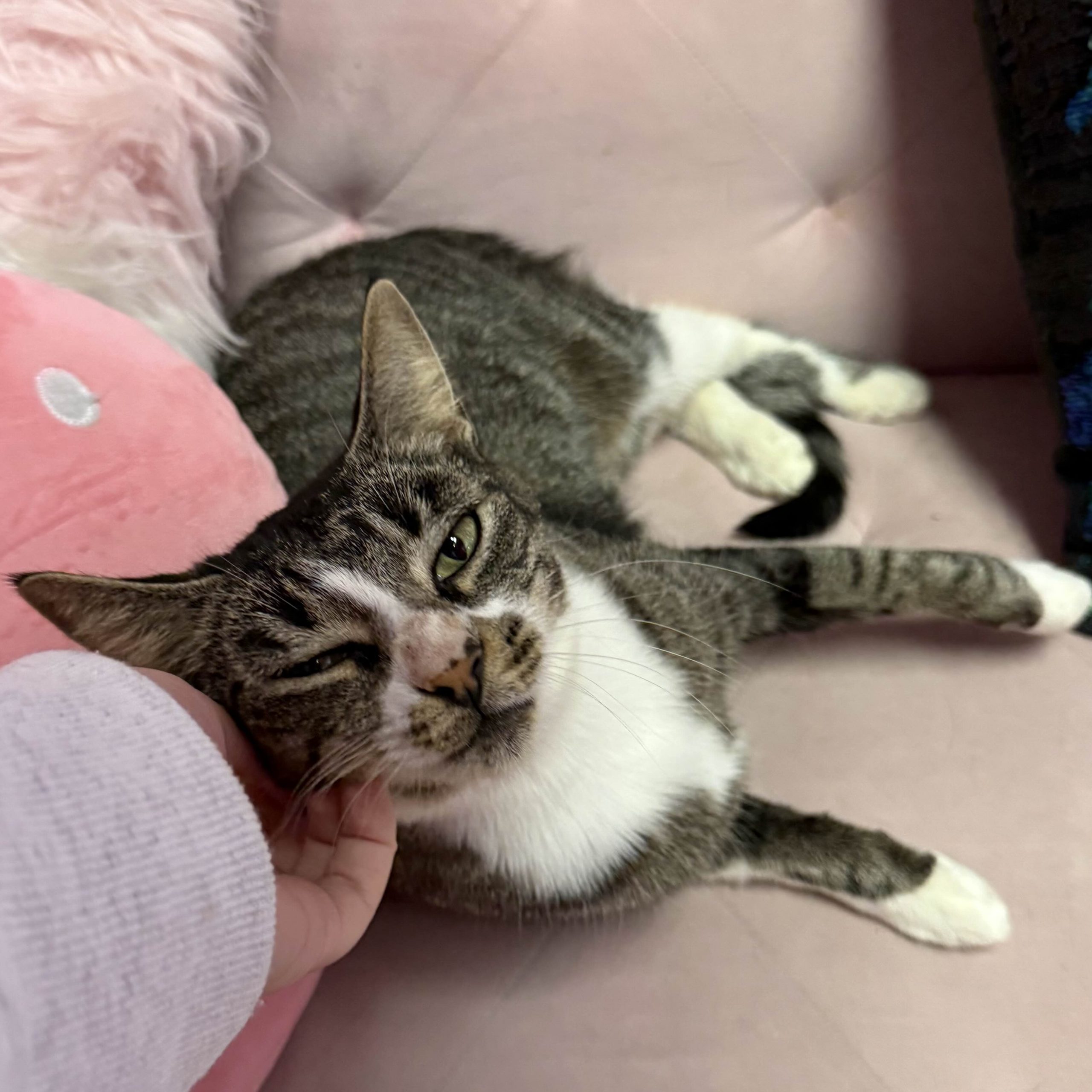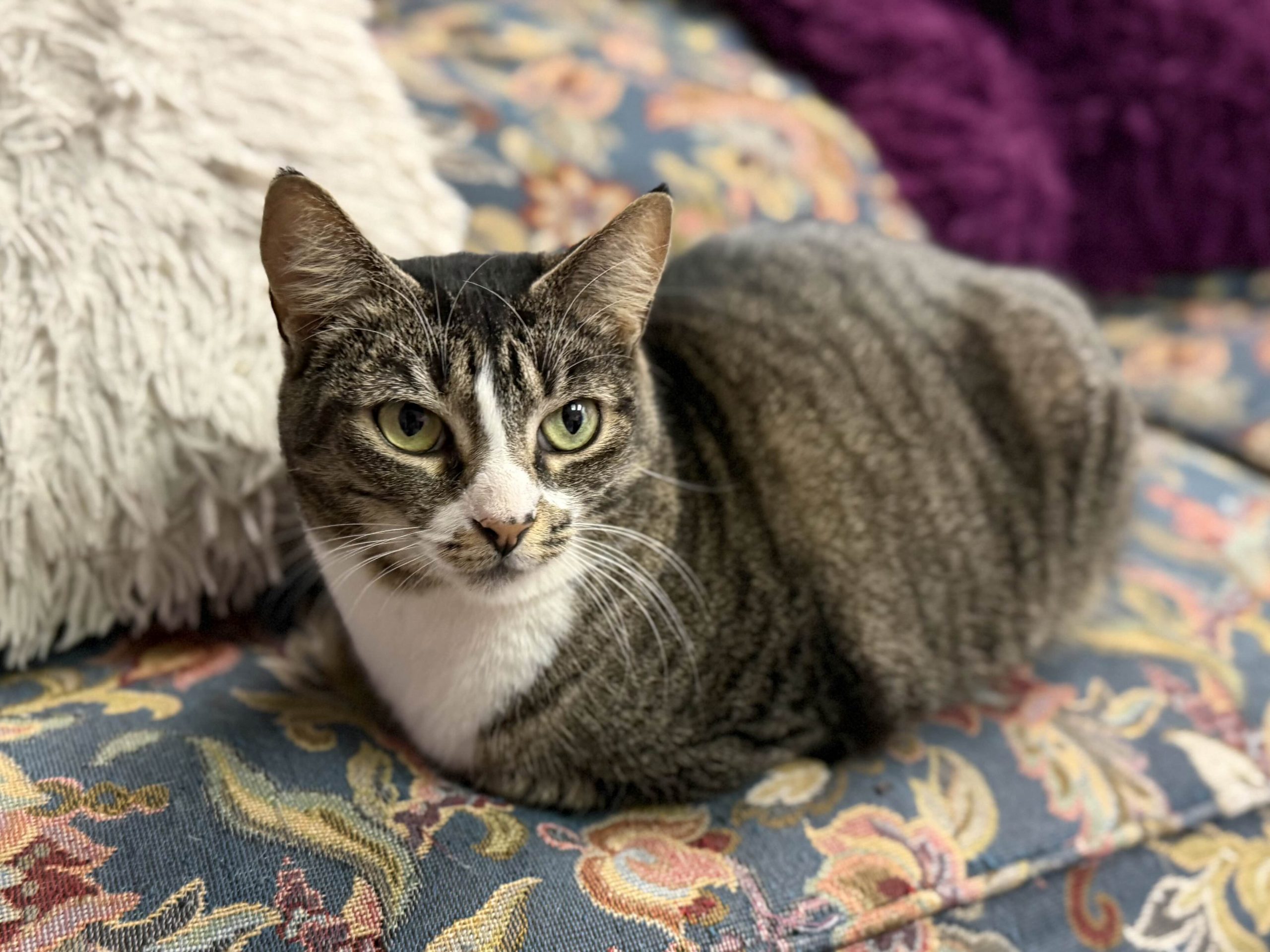 Hello, I'm Money Penny, a two-year old cat who showed up at a cat colony clearly not belonging. I was rescued after rolling around in the trap begging for pets when the colony was TNR'd. My foster mom calls me "heat seeker" because I am always trying to find a warm lap. I'm a big girl (10+ pounds) who loves nothing more than getting pats & cuddles. If you're looking for a loving companion to bring joy and laughter to your home, I'm your perfect match.