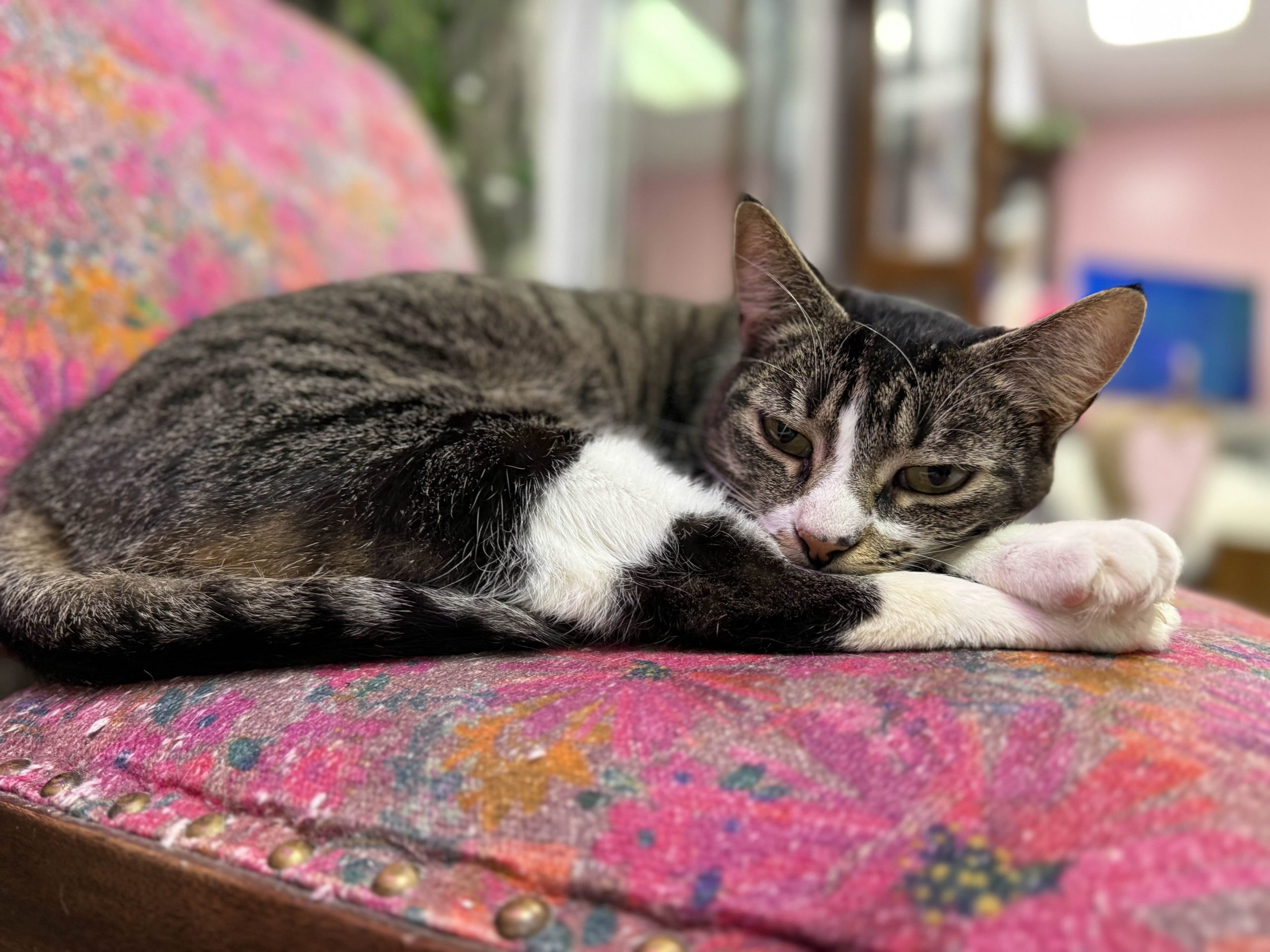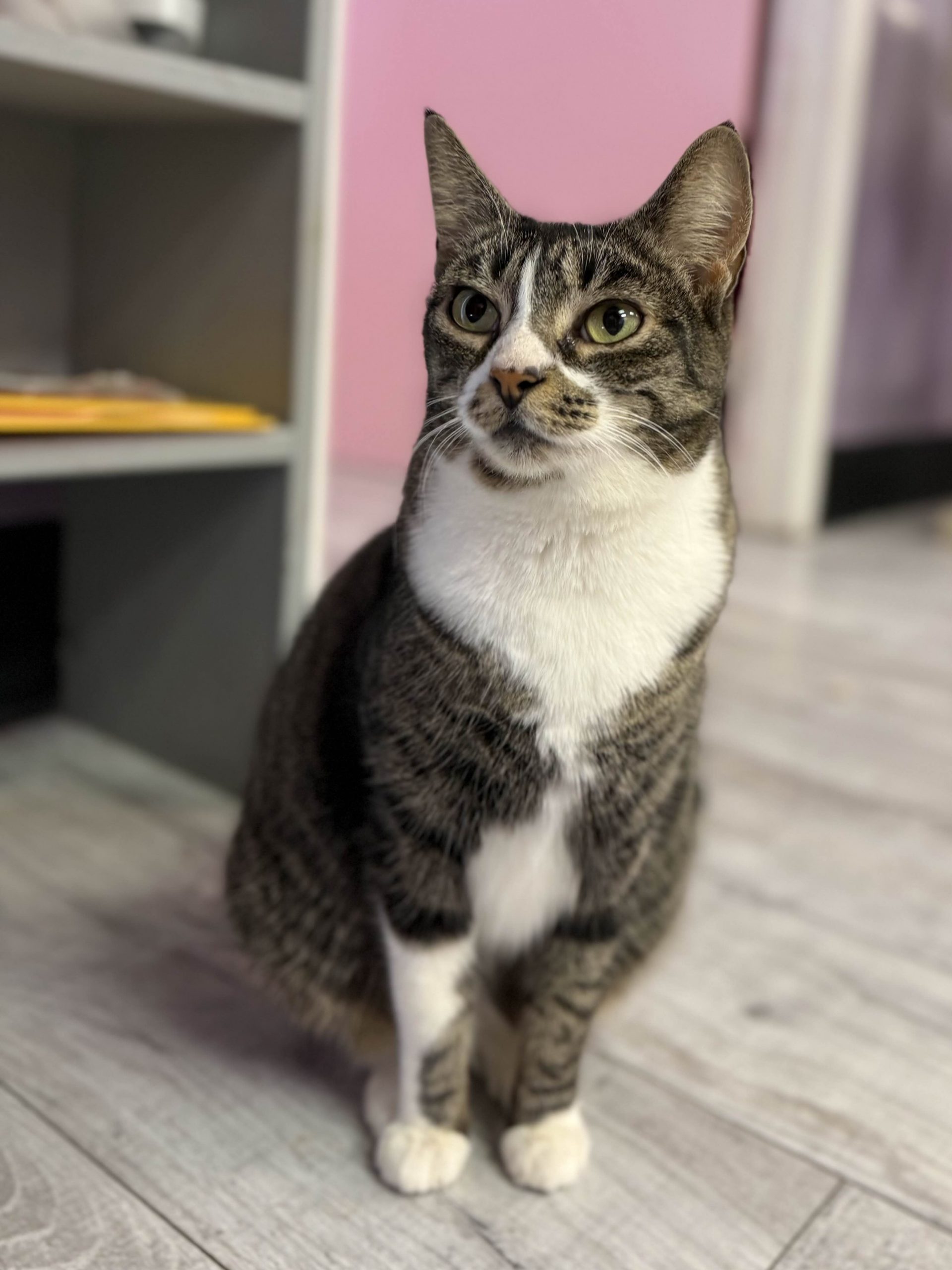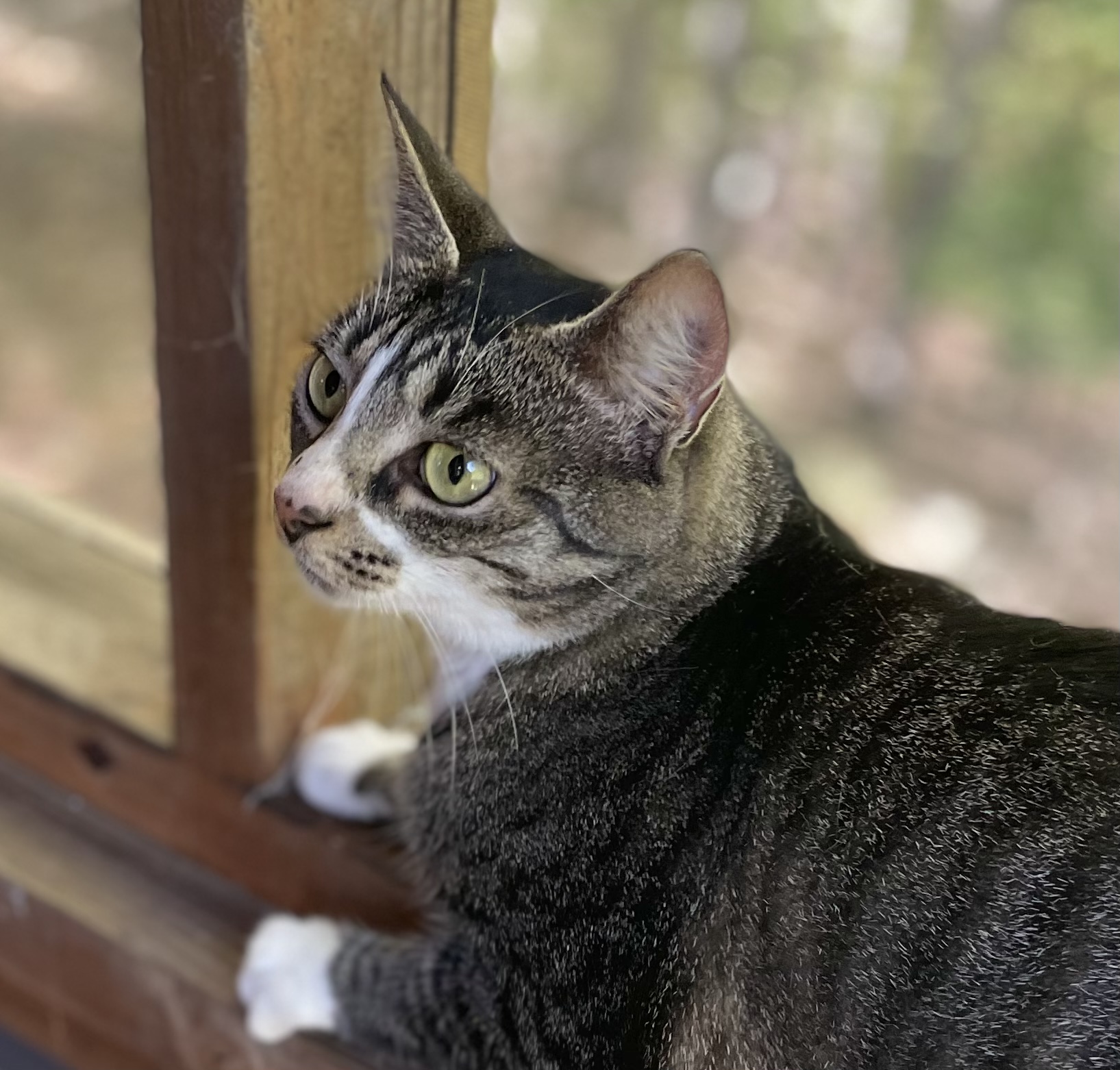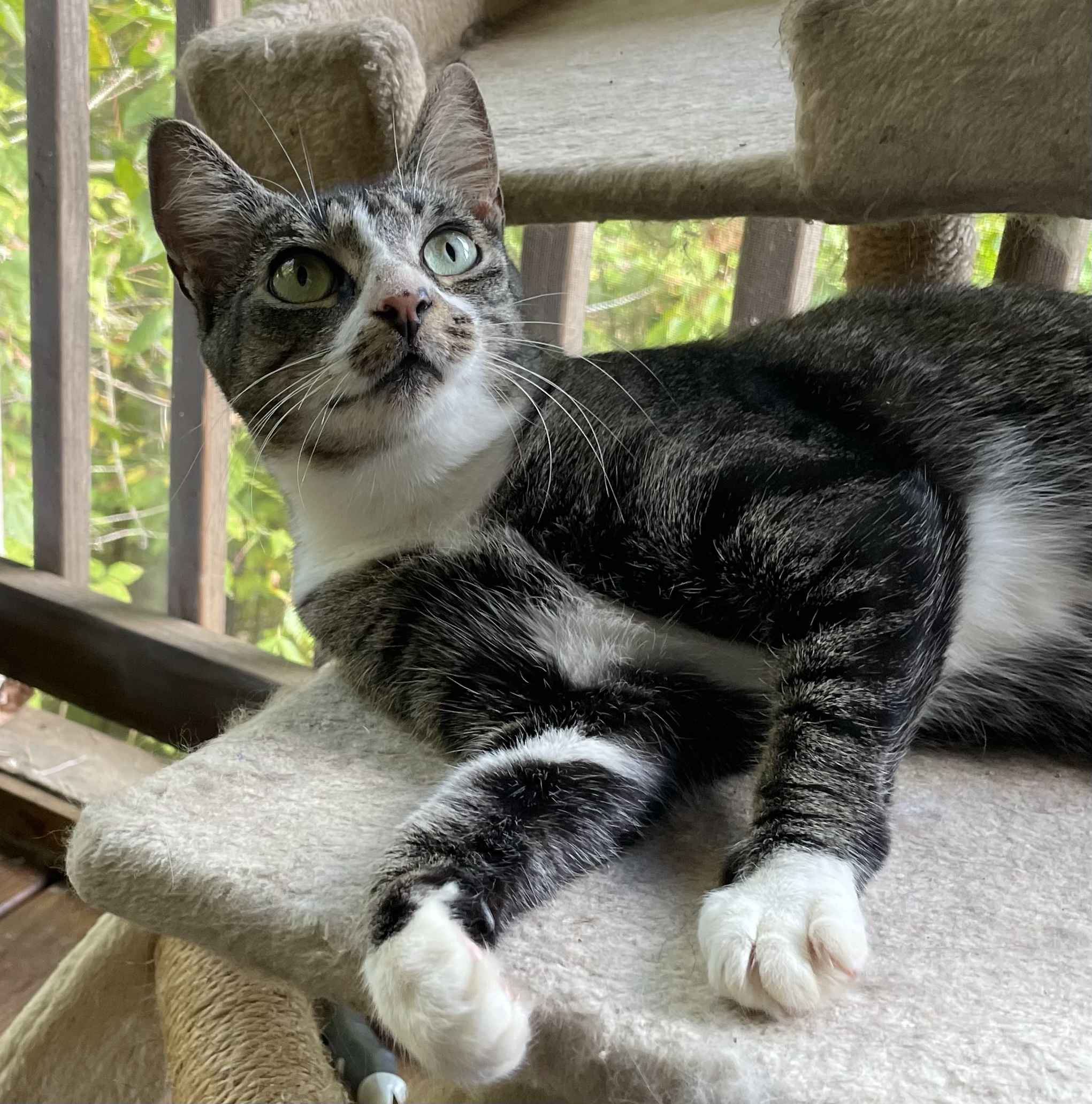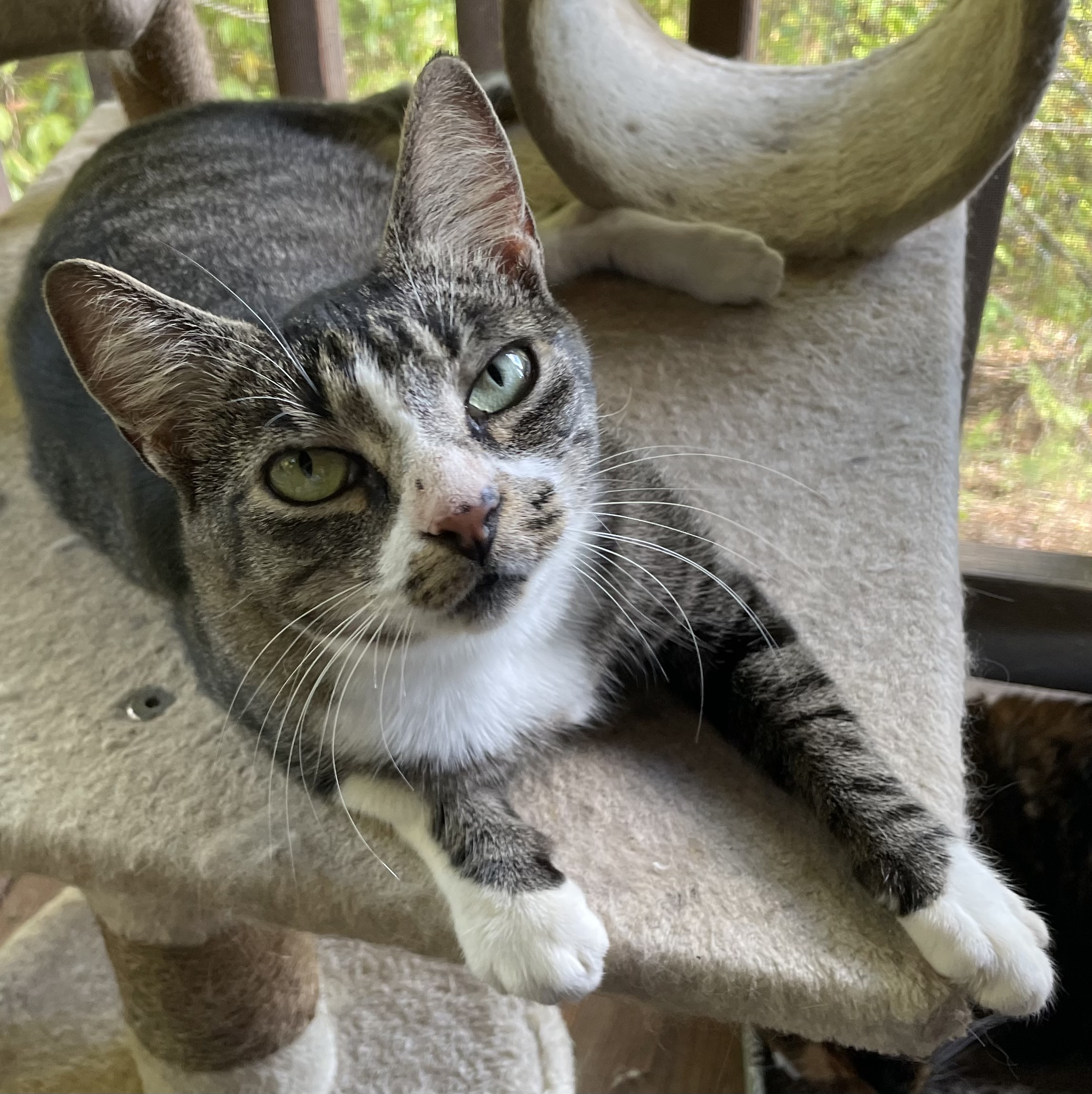 Hello, I'm Money Penny, a two-year old cat who showed up at a cat colony clearly not belonging. I was rescued after rolling around in the trap begging for pets when the colony was TNR'd. My foster mom calls me "heat seeker" because I am always trying to find a warm lap. I'm a big girl (10+ pounds) who loves nothing more than getting pats & cuddles. If you're looking for a loving companion to bring joy and laughter to your home, I'm your perfect match.