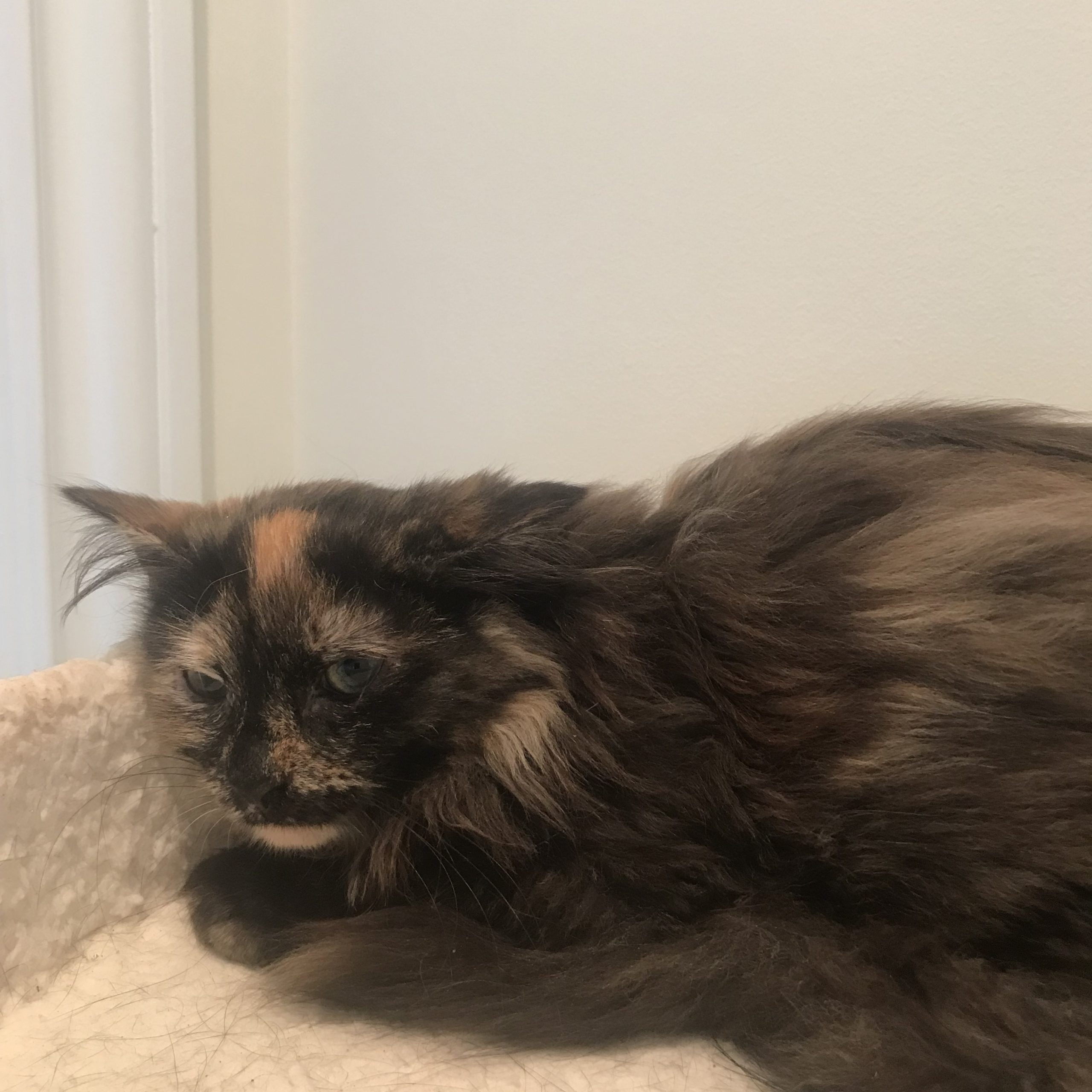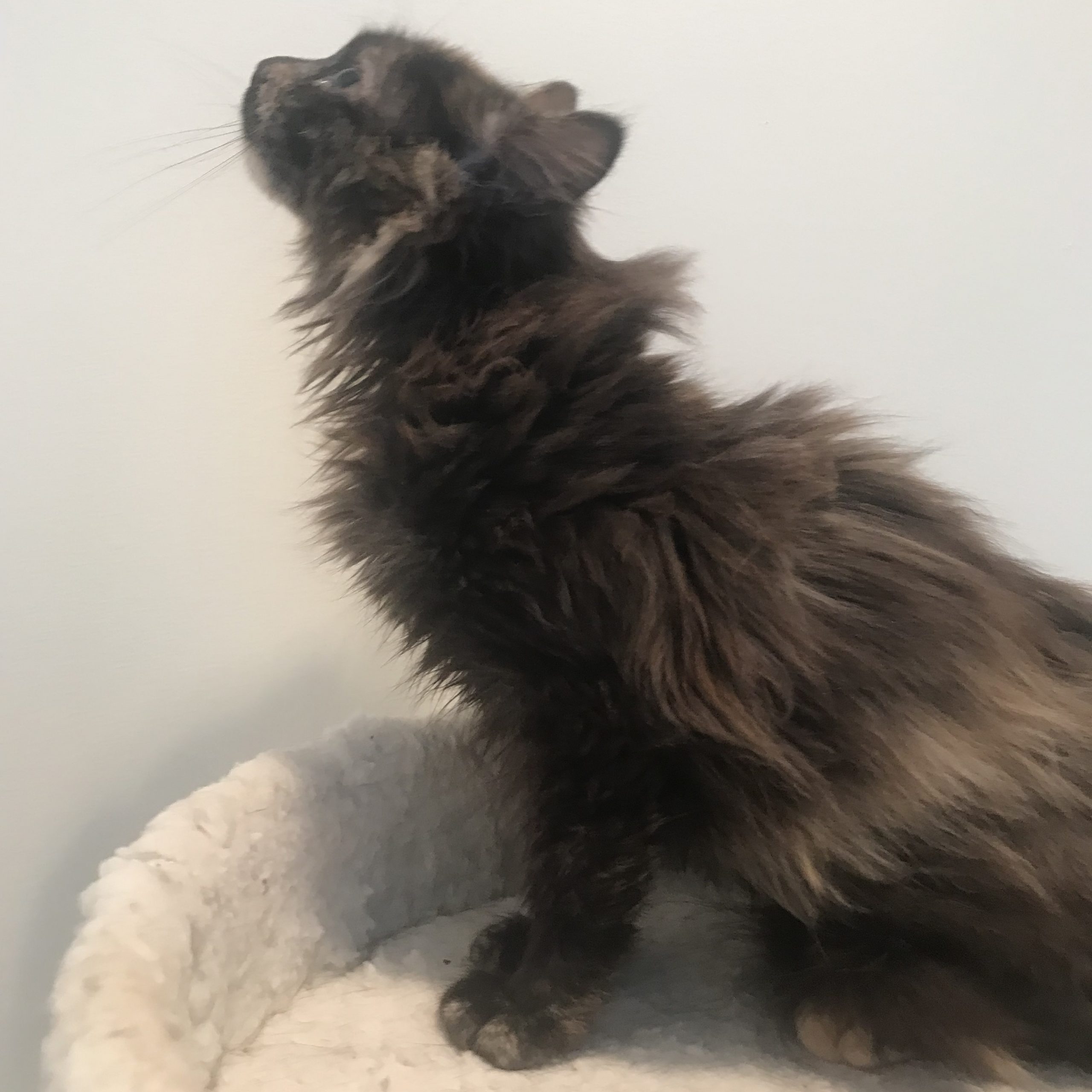 Hi, I’m MosCATo, a stunning long-haired tortoiseshell girl with the softest fur and the sweetest heart. My littermates and I were found abandoned far out in a rural area with no homes in sight. It took me a little time to learn that people can be kind and that a cozy house might actually be the safest, happiest place for me. I’m a gentle soul in a big, busy world. Now that I’m safe, I spend my days dreaming about a quiet home filled with warm laps, soft voices, and peaceful afternoons. I can be a little shy at first, but if you give me a moment, I’ll melt right into you and quietly claim a place in your heart. I love calm spaces and tender affection. If you’re searching for a chill, loving companion to share life’s slower, sweeter moments, I just might be your girl. Let’s create a peaceful little world together.