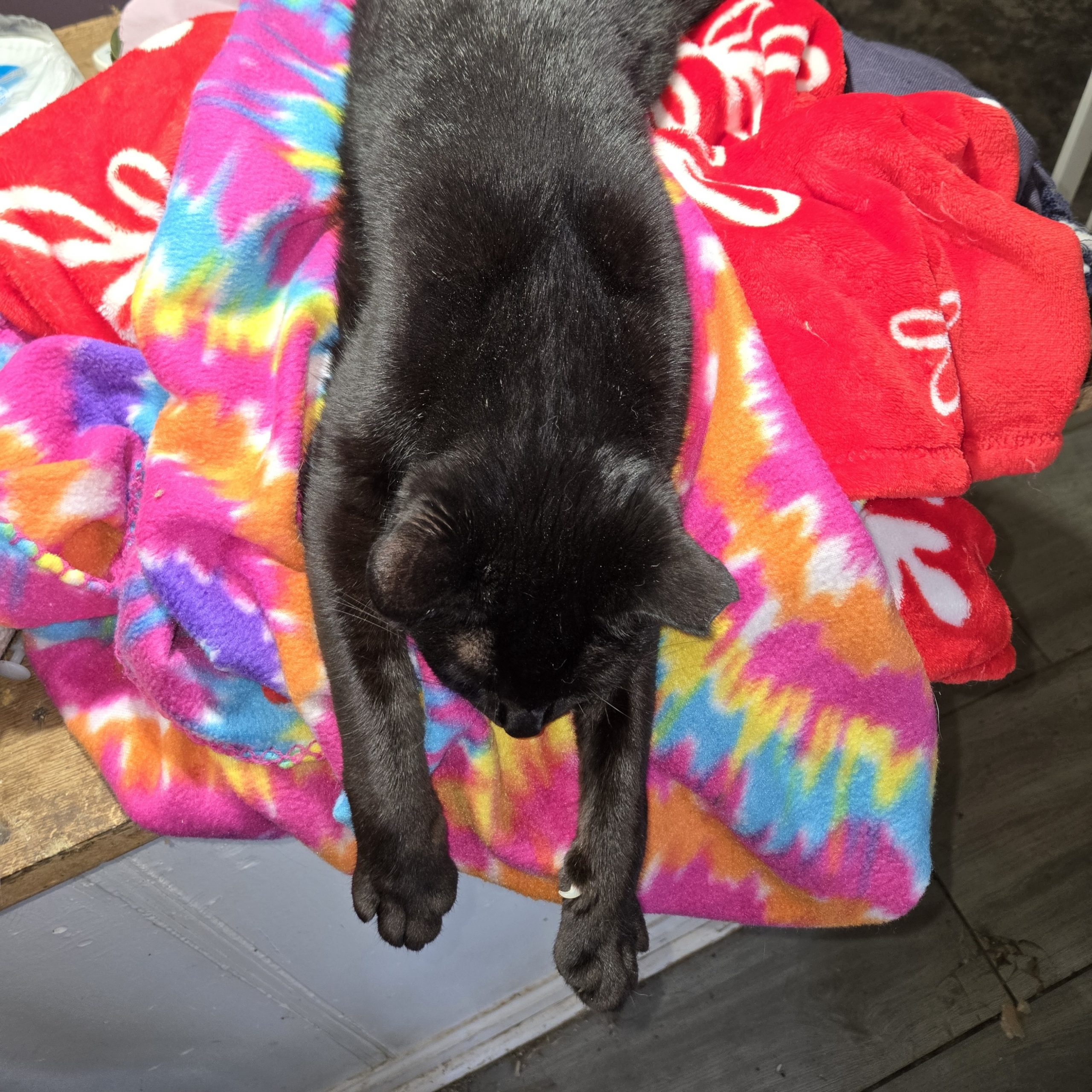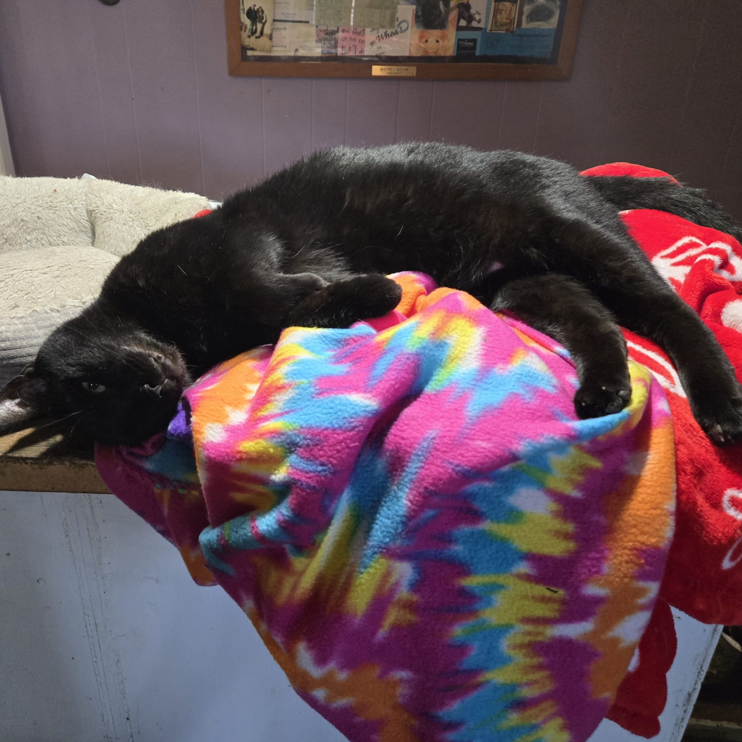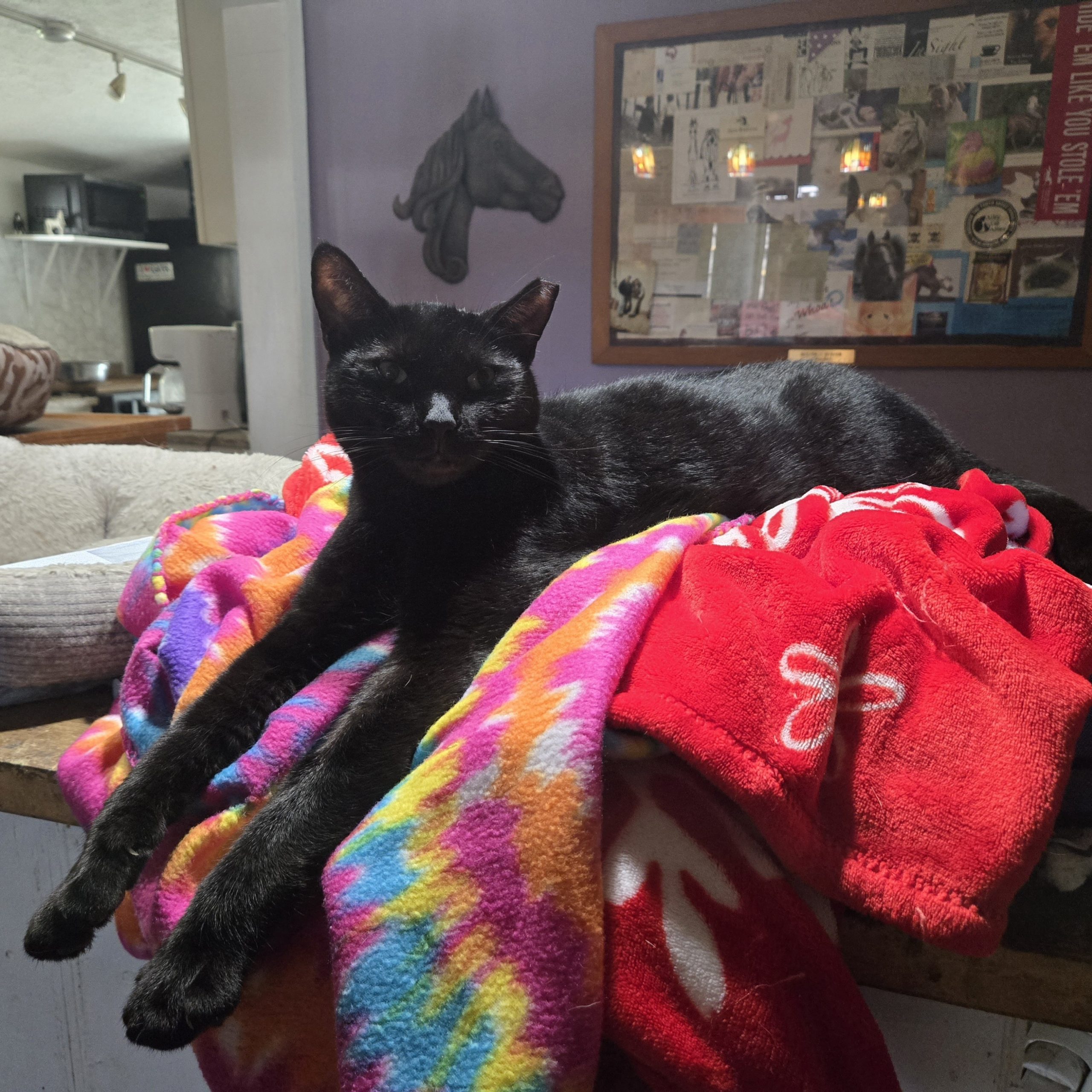If you’ve ever wanted a cat with thoughts, feelings, and absolutely no hesitation about sharing them… Mr. Midnight is your guy. This sleek, handsome house panther is equal parts snugglebug and cat-shaped philosopher. He’s chatty, expressive, and not afraid to tell you exactly what’s on his mind—whether that’s with a chorus of meows or, occasionally, a gentle “hey, I’m overwhelmed” nibble. It’s not aggression—just Mr. Midnight working through his big feelings in the only way he currently knows how. And oh, does he love comfort. Blankets, soft beds, cozy laps—if it’s plush, he’s on it (or dramatically draped across it like the king he is). Mr. Midnight does well with other cats and even dogs, but his current foster home is a bit busy for his sensitive soul. He would truly shine in a calmer environment where he can relax, decompress, and be understood. There’s a very good chance that with less stress, those little “opinion nibbles” will fade… but he’s looking for someone who will love him exactly as he is while he figures things out. He’s not a “plug-and-play” cat—but he is a deeply rewarding one. The kind of companion who will bond hard, love deeply, and keep you entertained with his big personality every single day.
