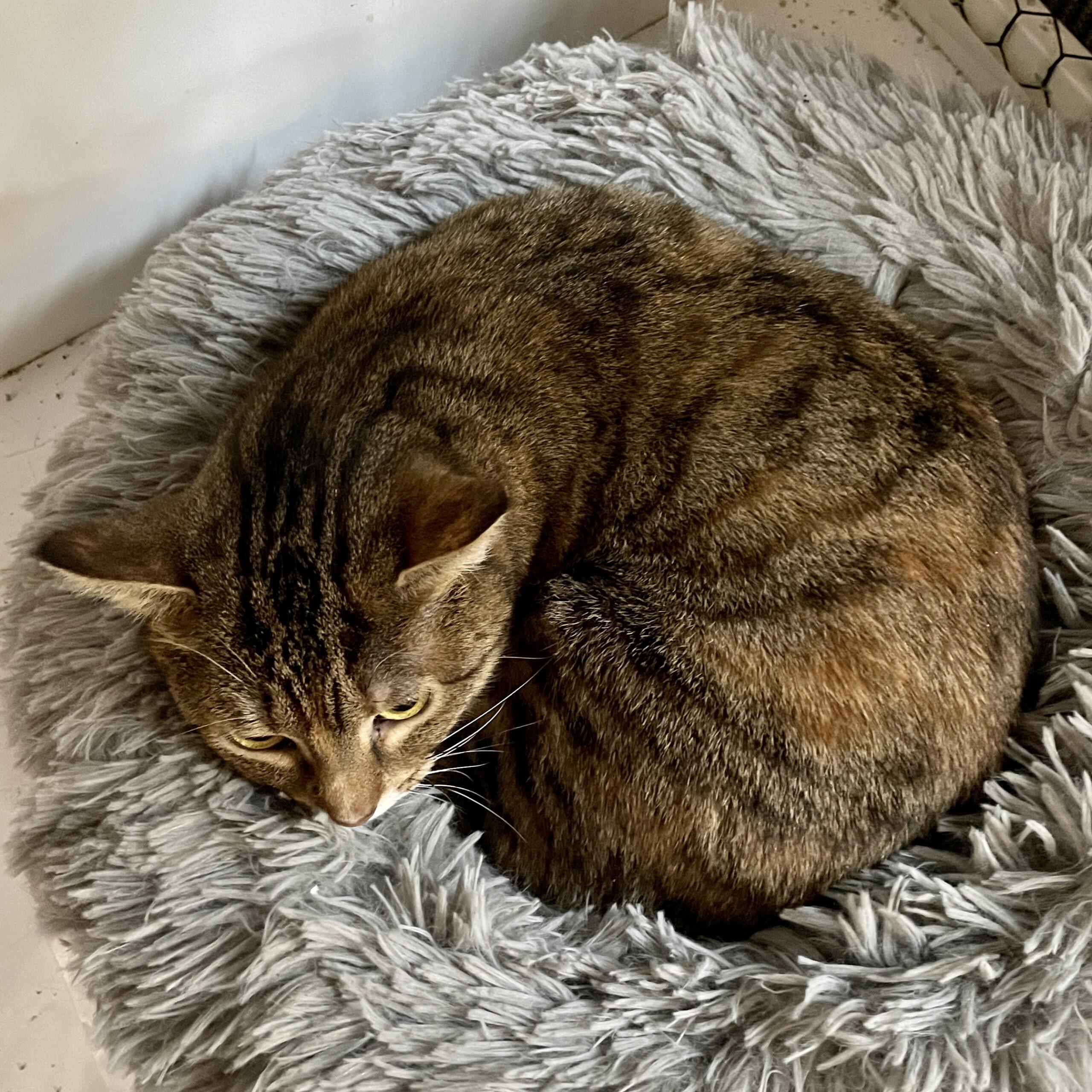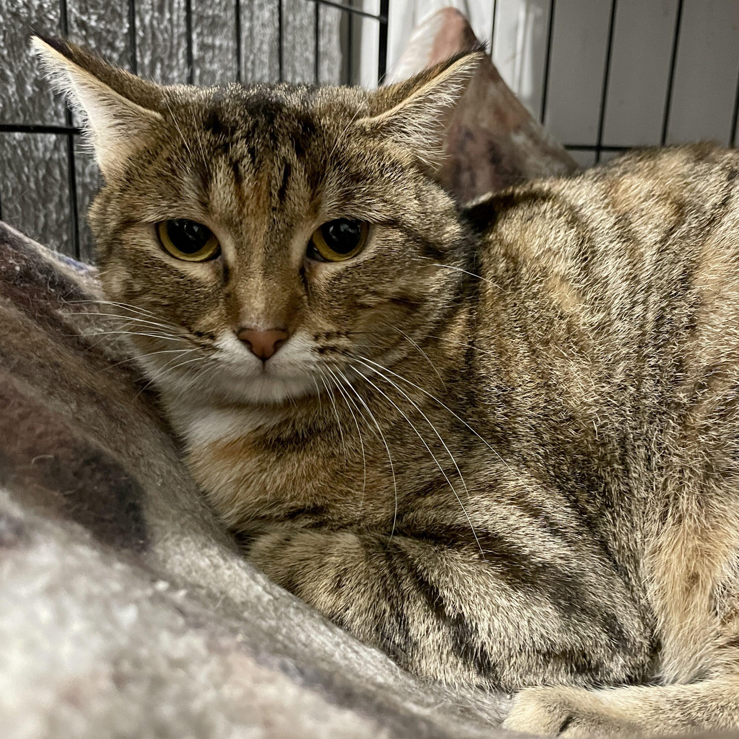 Nancy Nebraska has been a resident of Scruffy’s Cafe in downtown Knoxville for over A YEAR without a single adoption application! Why, you ask? Nancy is an introverted feline who has a calm, laidback demeanor about her. She’s not one to seek out affection or attention, but she’ll quietly allow you to pet her and admire her striking torbie coat. She’s come light years from where she started as a timid, scared girl, but she’s still appreciate having a quiet forever home where she can lounge in a window hammock or on the back of a comfy couch. Come to Scruffy’s ASAP to meet our best girl!