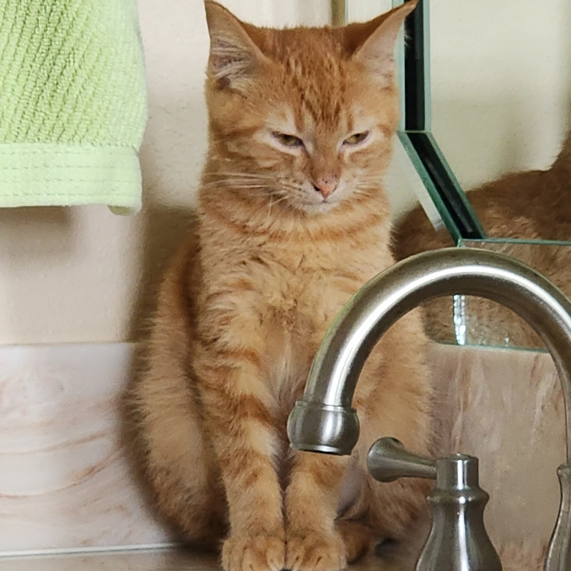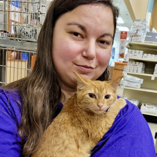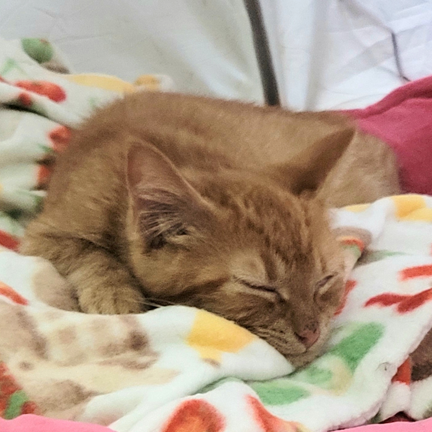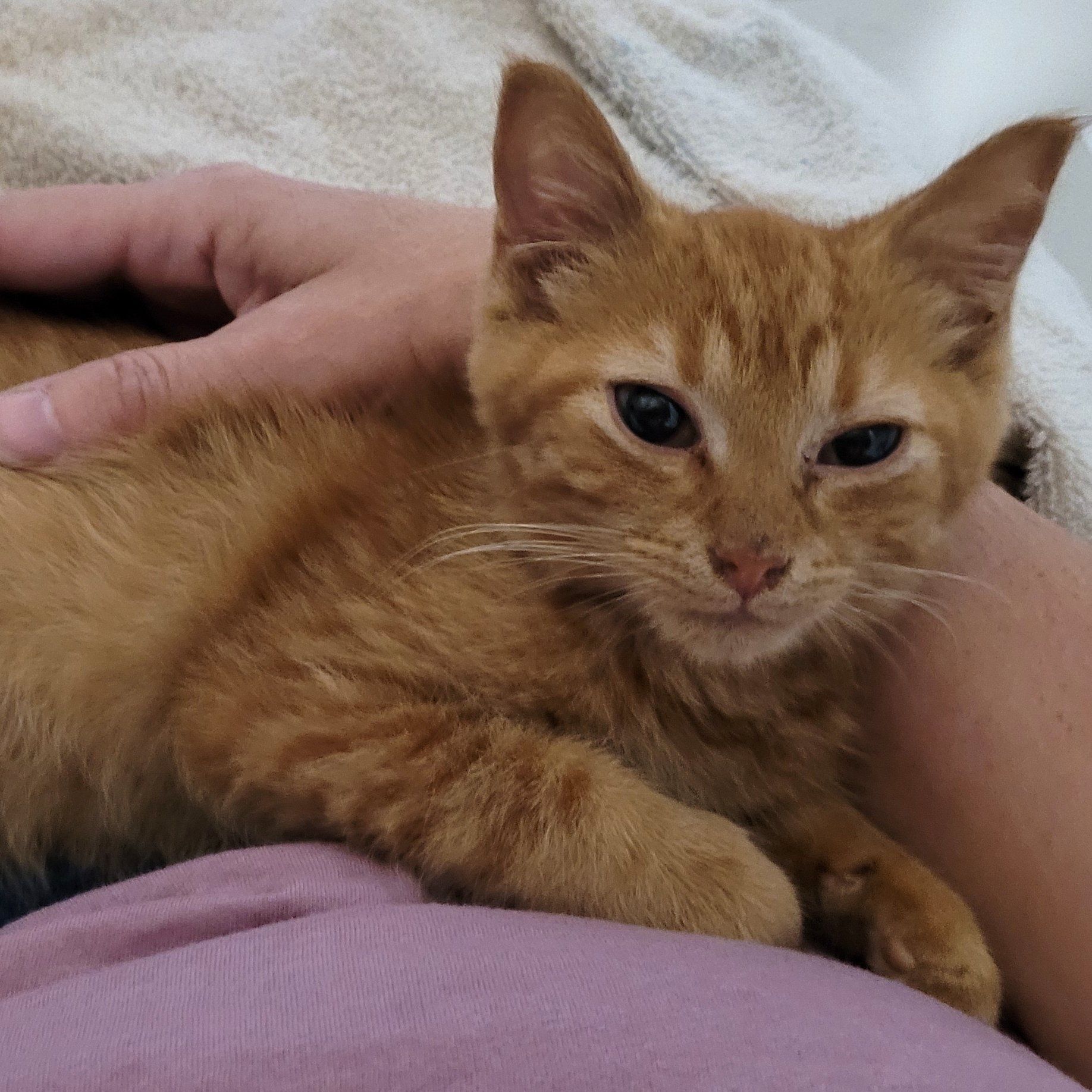 Nubs is a sweet orange tabby with a "rumpy riser" manx tail, meaning he basically has one vertebrae in his tail. We think it really suits him. He likes to play and is curious about toys. Most of the time he is a calm and quiet boy, unless you take him away from his friends... Nubs LOVES other cats and must be in a home with at least one cat. He is looking forward to getting to know his new family and spending evenings on the couch.