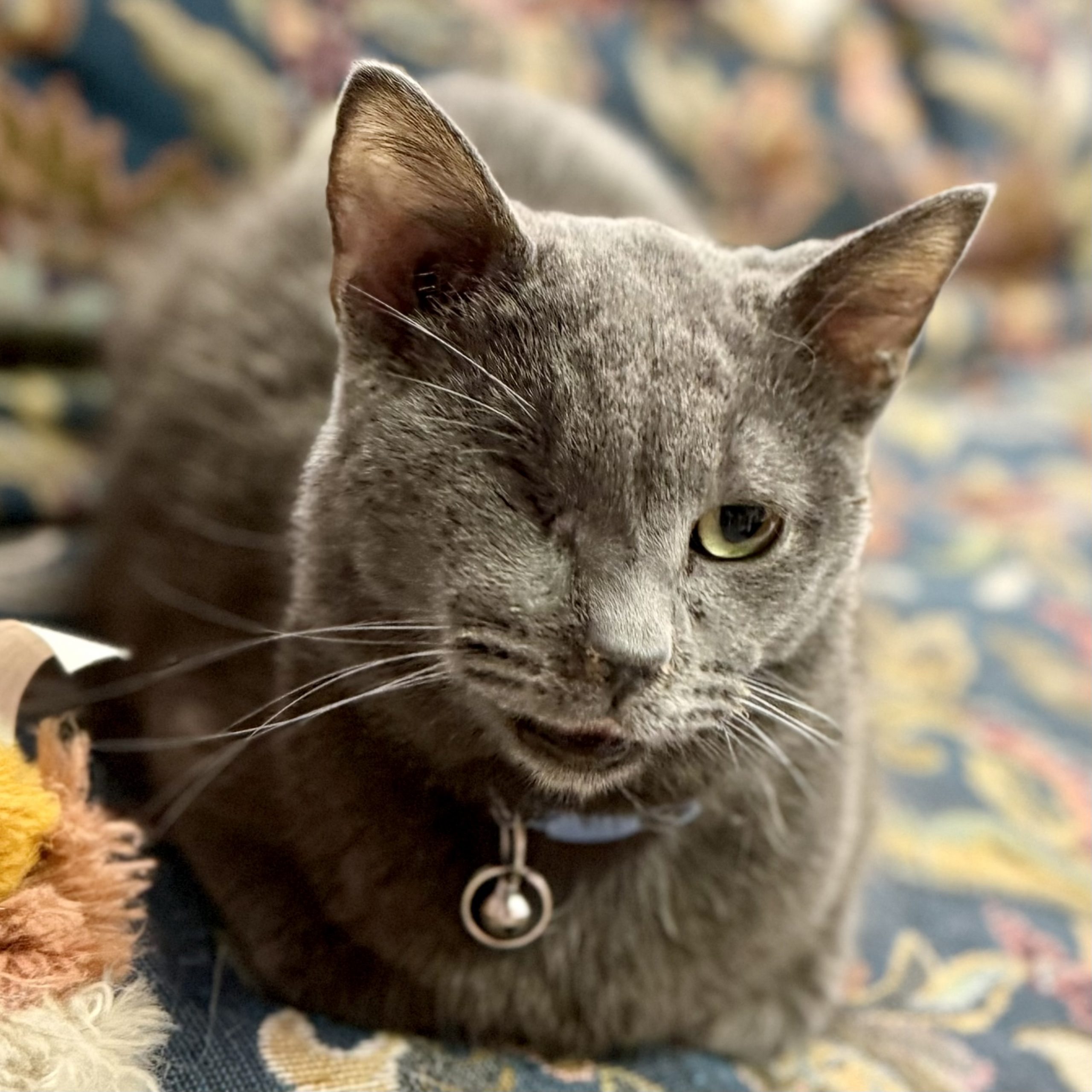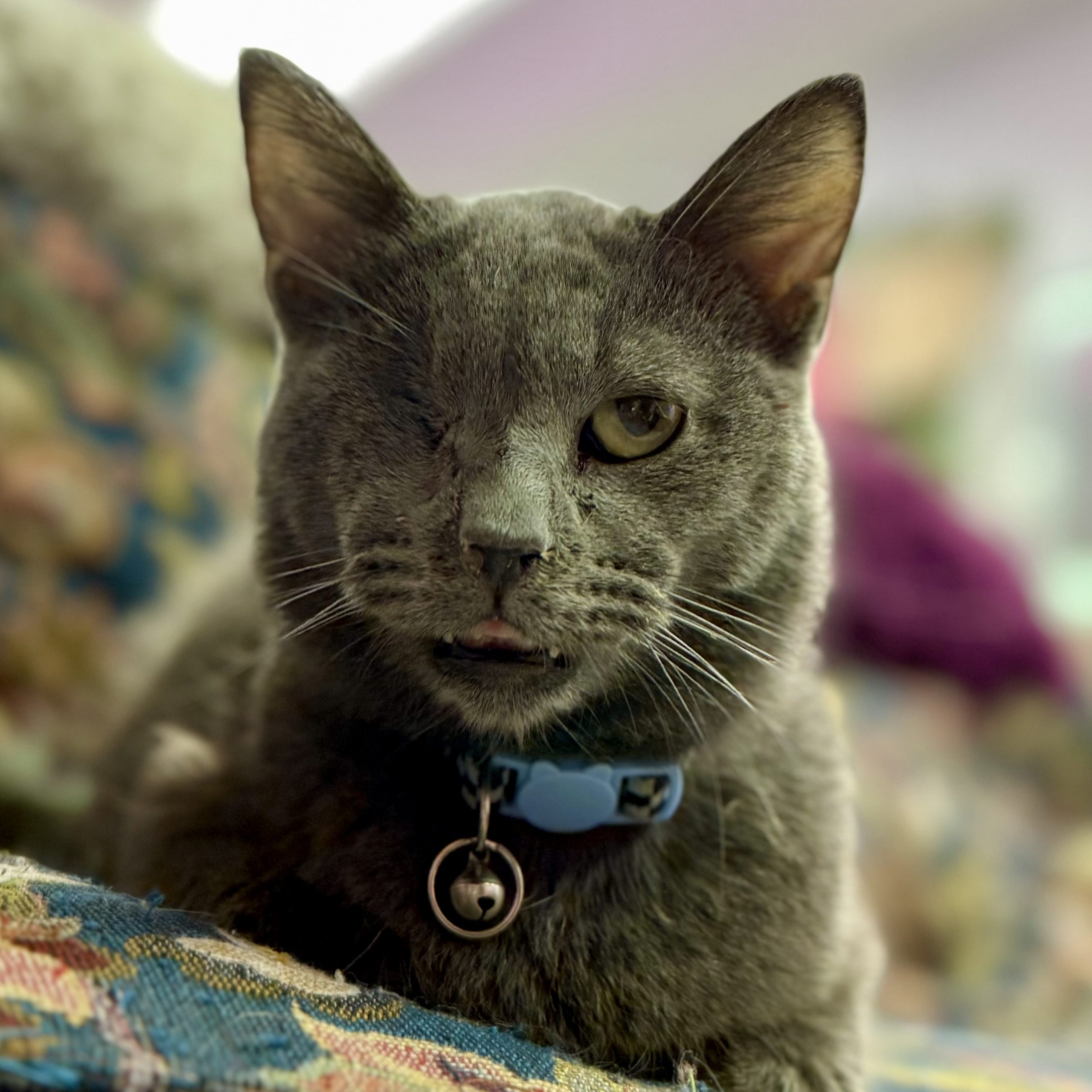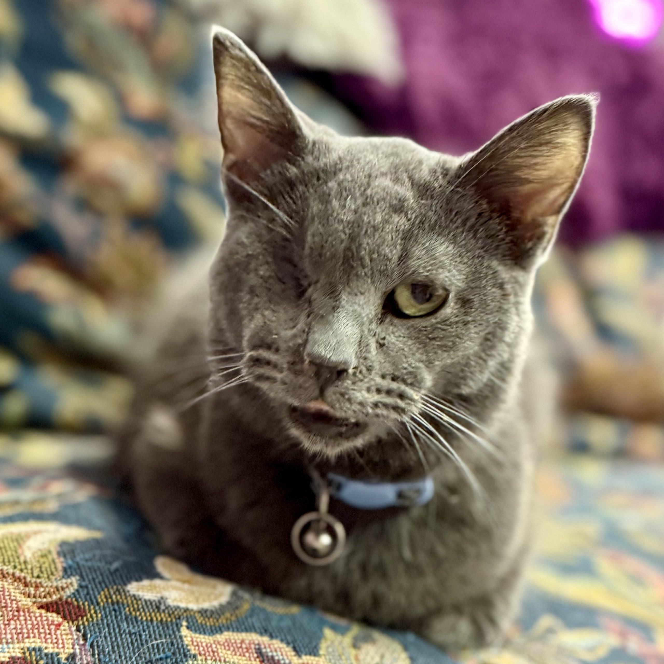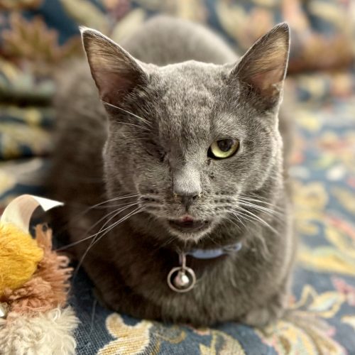If absolute happiness and love for life were a cat and if that cat had a name…..it would be Nick.  Nick came into rescue in such a horrible medical condition he was not expected to survive. He was given the name Nick because he was rescued in just the nick of time.  Due to his absolute neglect, Nick has several conditions that even world-class medical care and love would not help him to overcome.  Nick is deaf and he did lose one eye…but he has never for a second let anything stop him from sharing his joy.  Nick loves feet, so he would not be a good fit for anyone with mobility issues….did I mention he loves to play with feet.  Nick, also, loves to share your space, so you will never be alone…ever.  Nick is not just a cat, he’s a companion, a friend, and a source of so much joy.