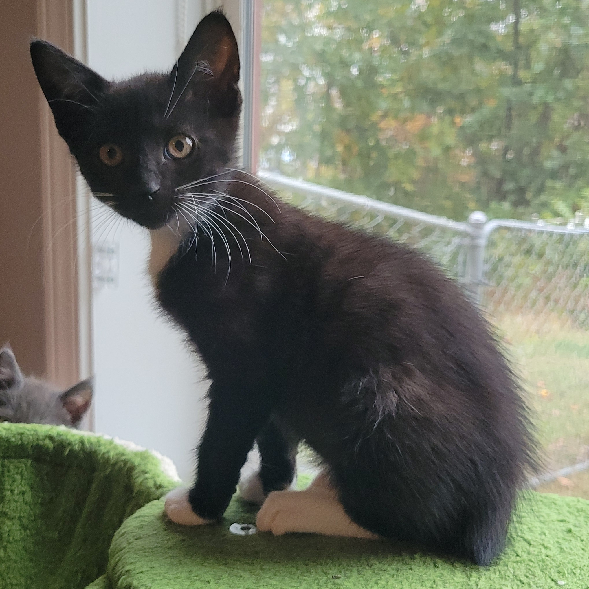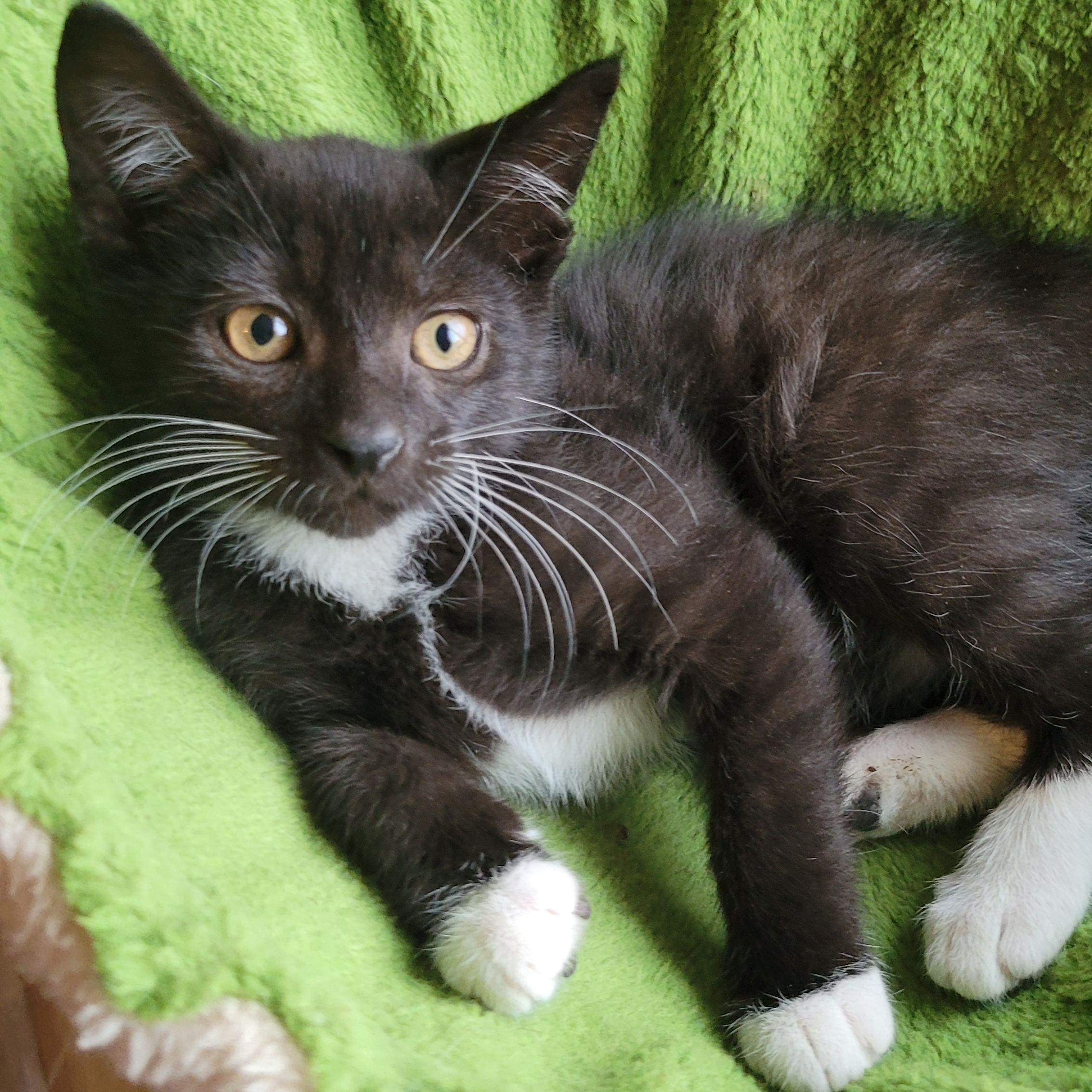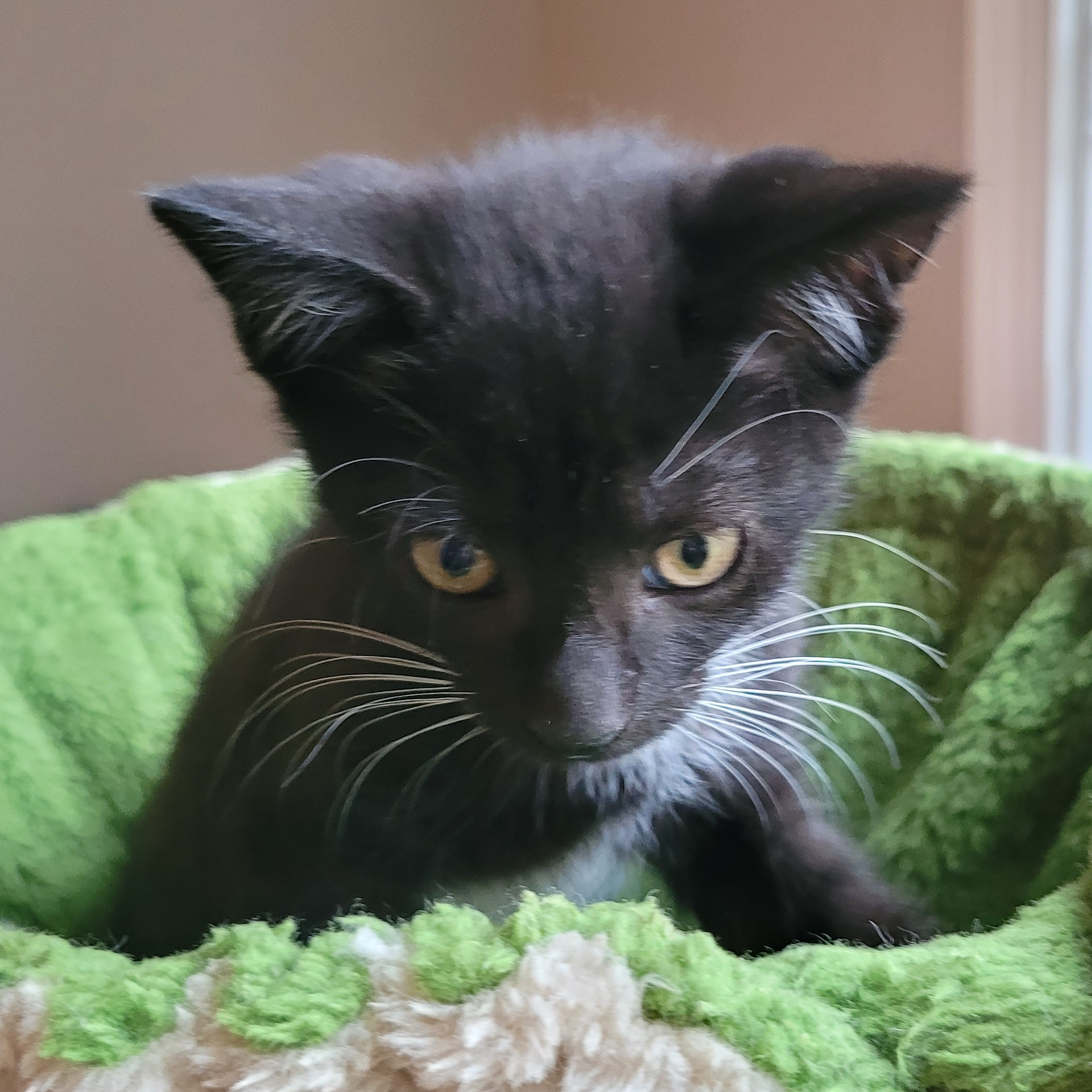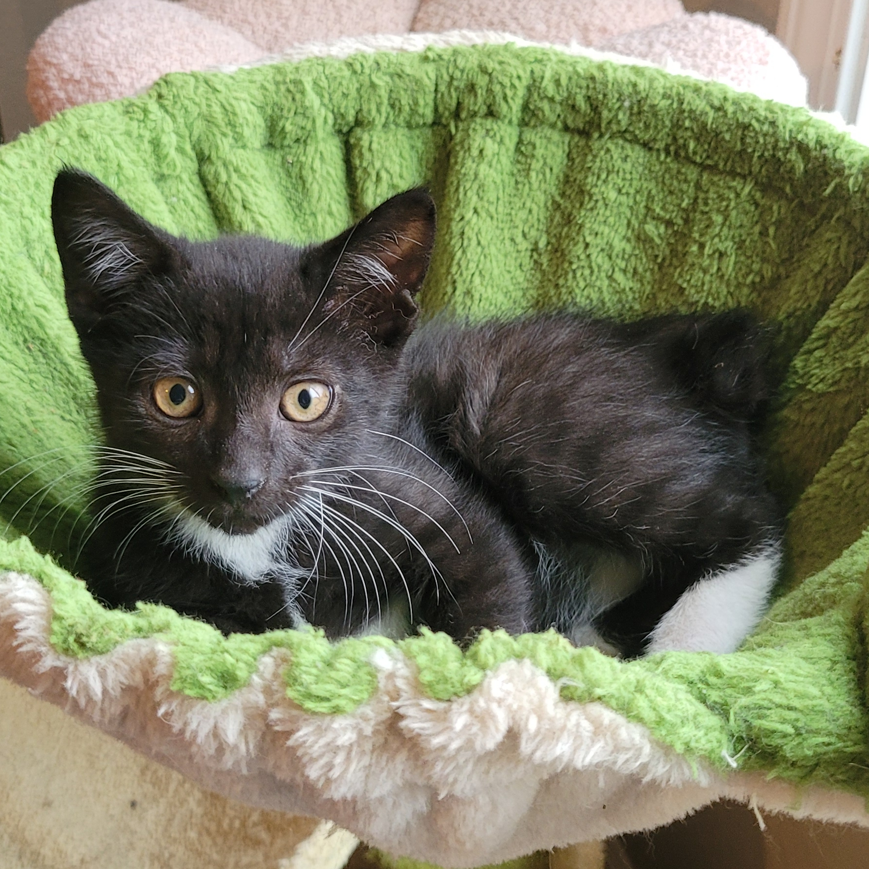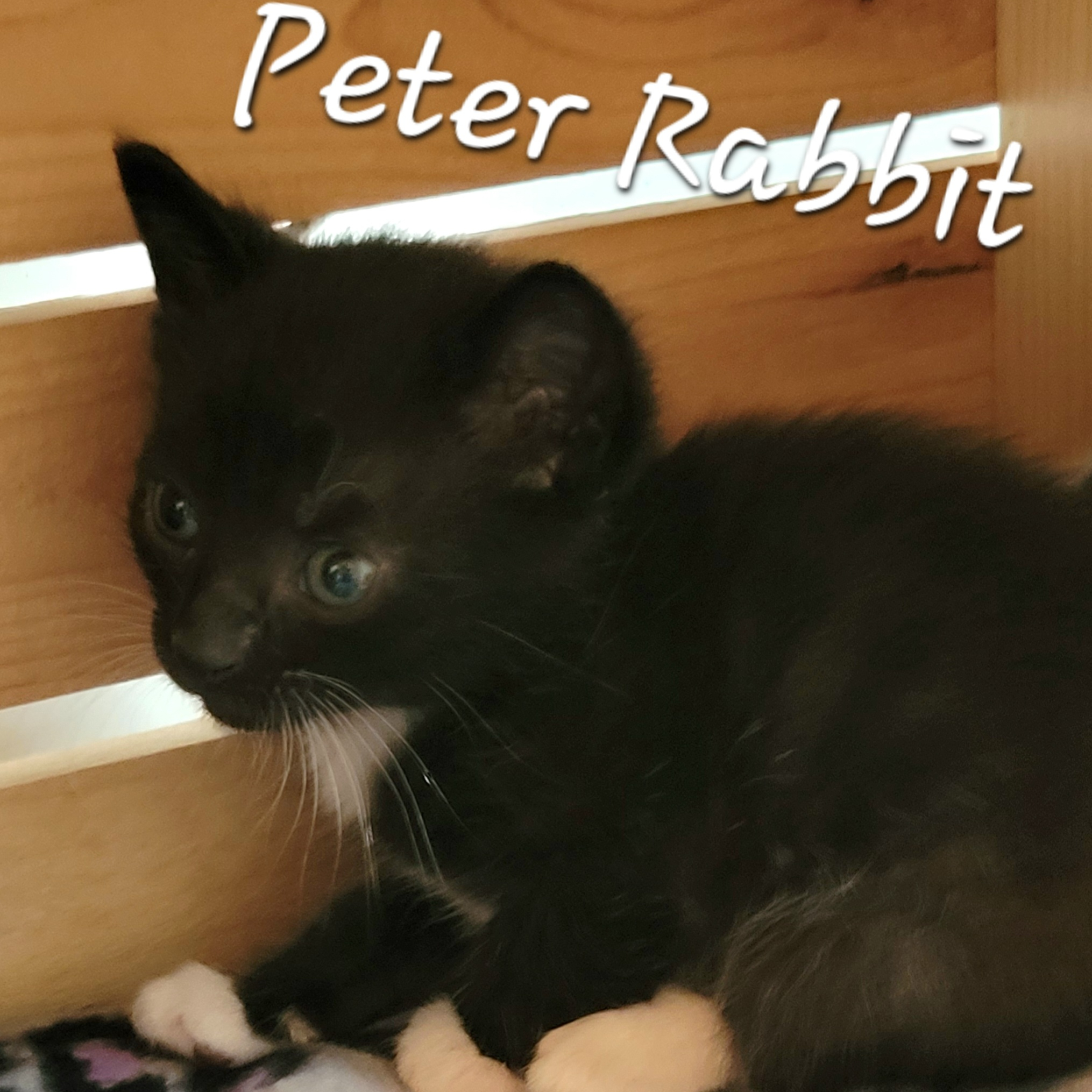 Peter Rabbit and his brother, Mopsy, are the wild, rowdy boys of the litter. They like doing extreme sports like racing, jumping, litter box wrestling, and most of all, climbing! They may have bunny names, but they act like bear cubs, climbing up their cat trees (and their foster mom's legs) with four-footed jumps.