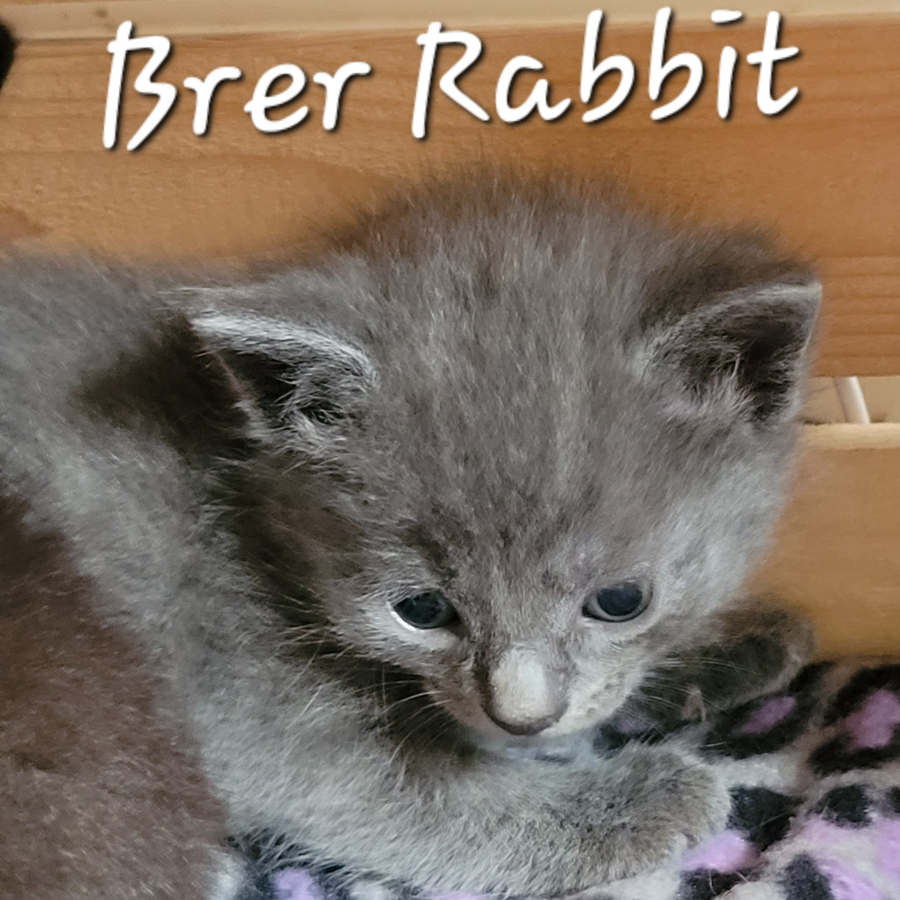 Brer Rabbit and his brother, Flopsy, are the silly, funny boys of the litter. They like running and tumbling with each other. They play with spring toys and ping pong balls. Brer liked to jump and catch his mom's tail, even though it was only 5 inches long.