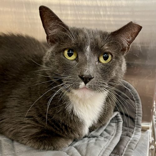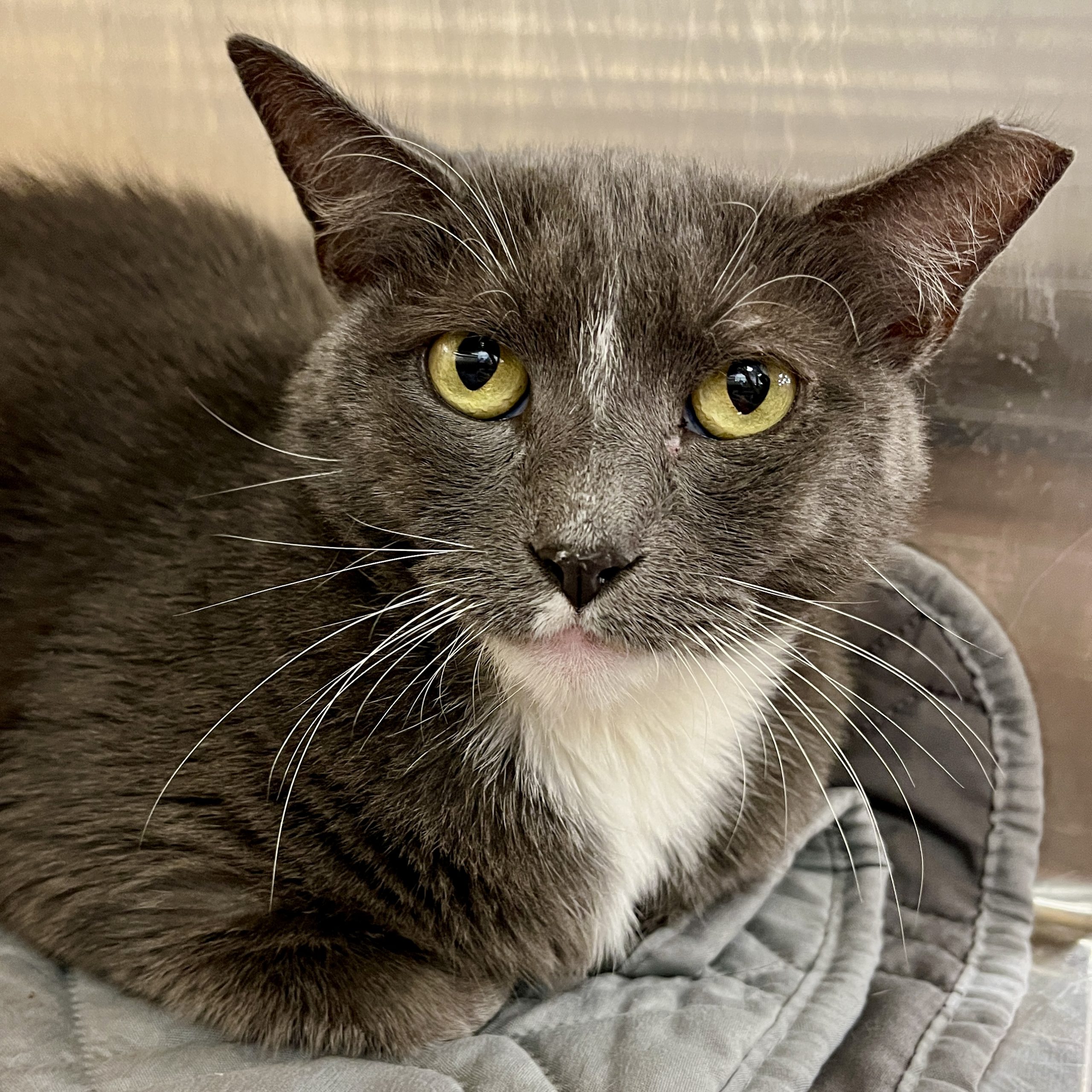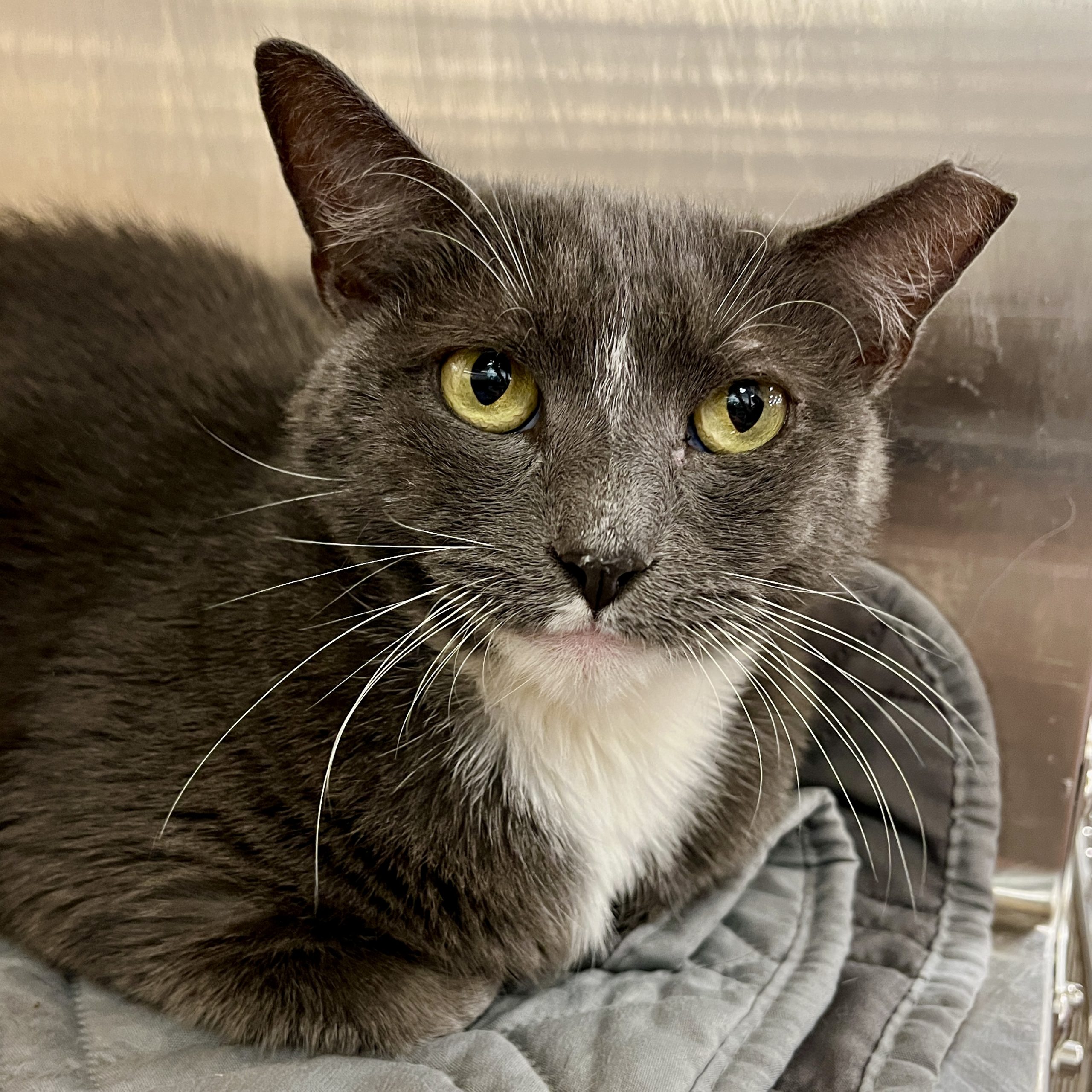 Purrmela Anderson is a six year old female who had been abandoned in the heat of the summer. No longer dirty, skinny, and dehydrated, she is ready for a loving indoor home. She doesn’t like to share the spotlight, so she needs to be an only cat. She likes to talk and have conversations with you. She is very affectionate and needs a super lovey home!
