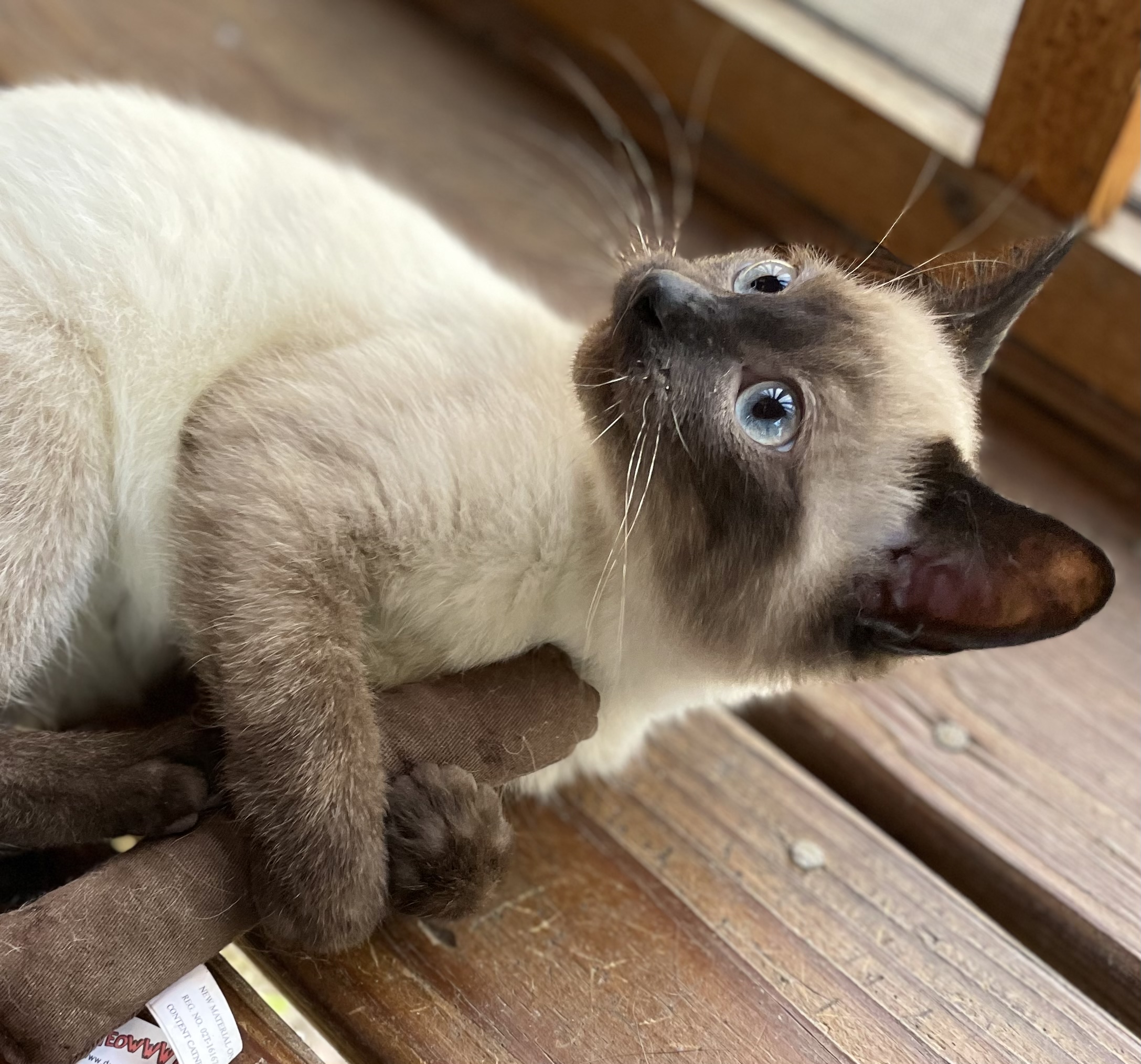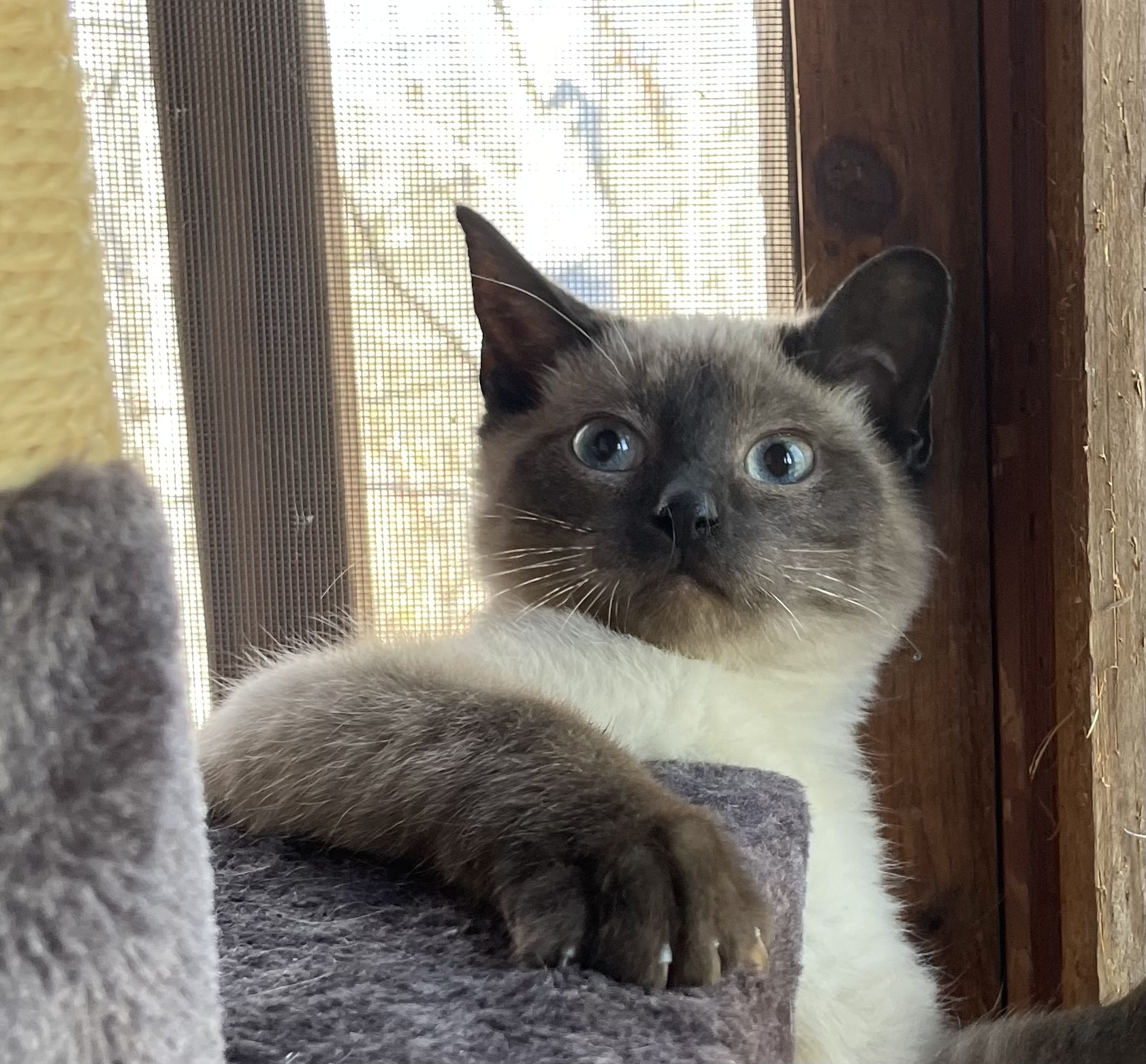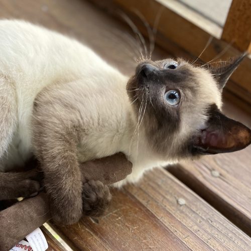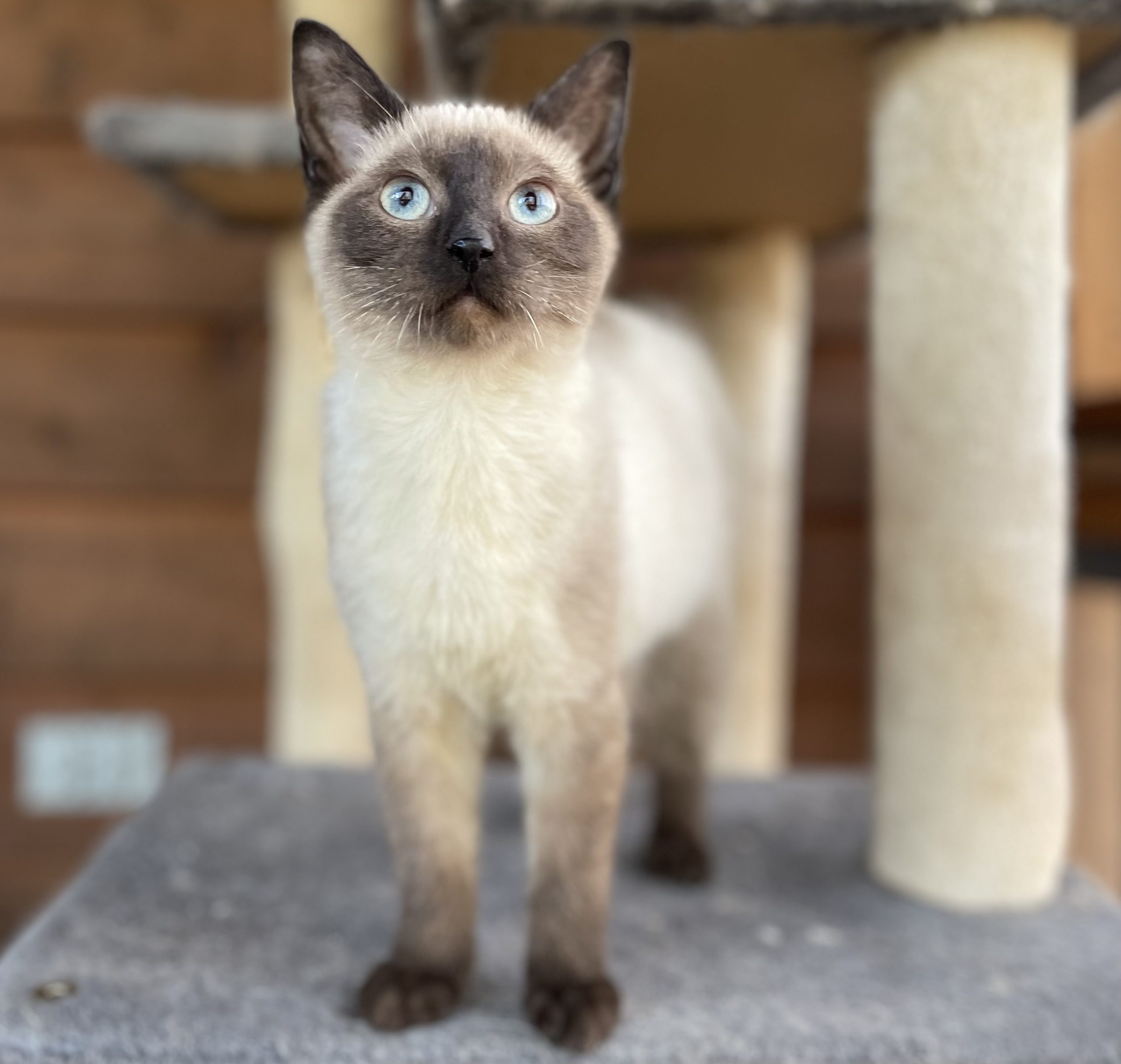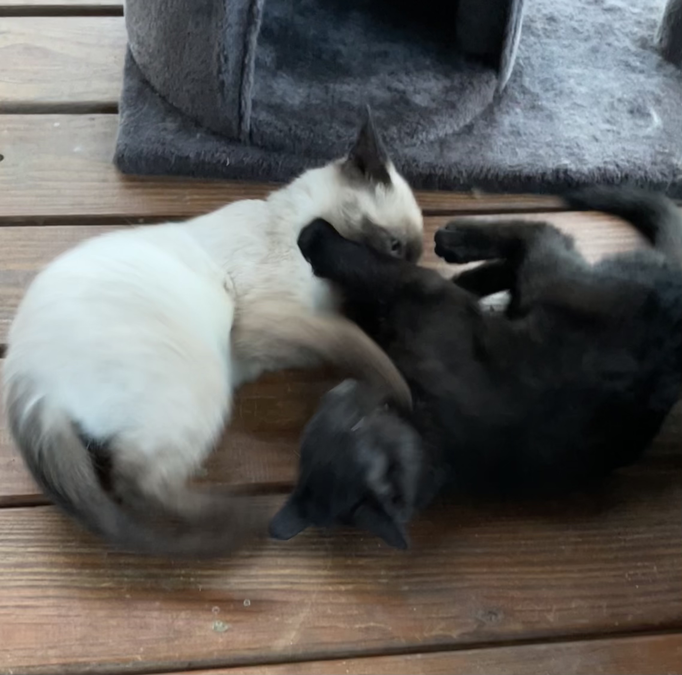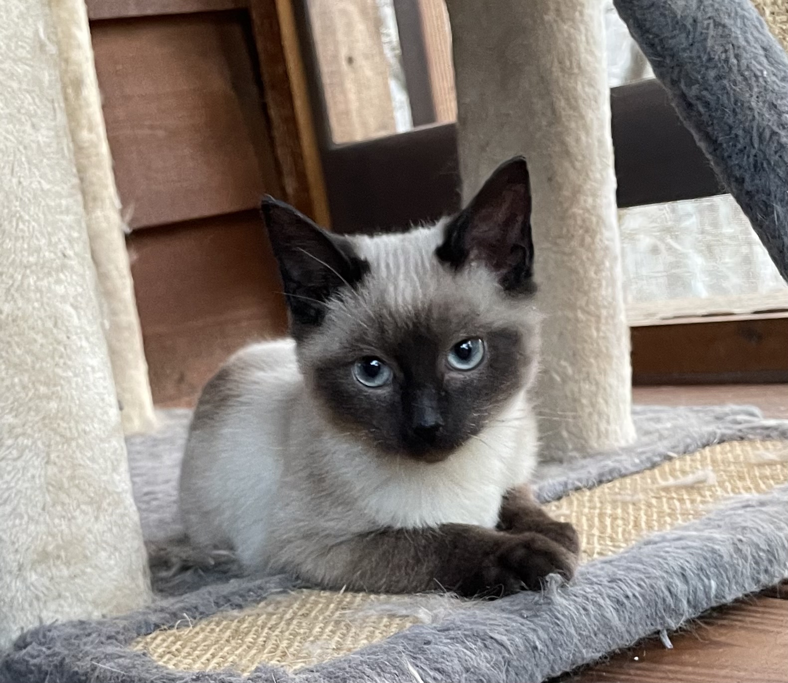 Glitter (a sleek black girl) and Shimmer (a handsome Siamese boy) were rescued together from a dire situation. Found underweight and struggling to survive under a trailer, these siblings were in very bad shape.