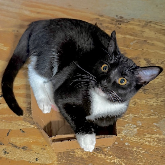 Silkience is a precious little snuggly playful purrbox! When she isn’t running around with her littermates, she’s curled up next to you with her little motor going! Since she has grown up with seven other kittens (three siblings and four cousins) Silkience needs to be adopted with another kitten, preferably one of her relatives! Let Silkience give your life the silky finish it needs!