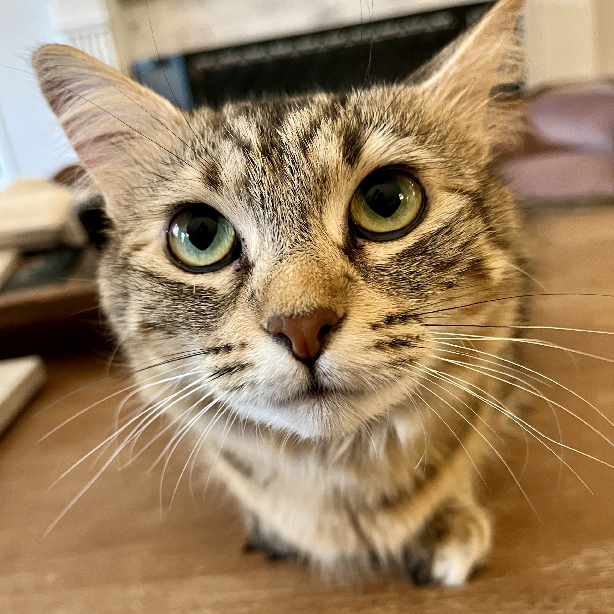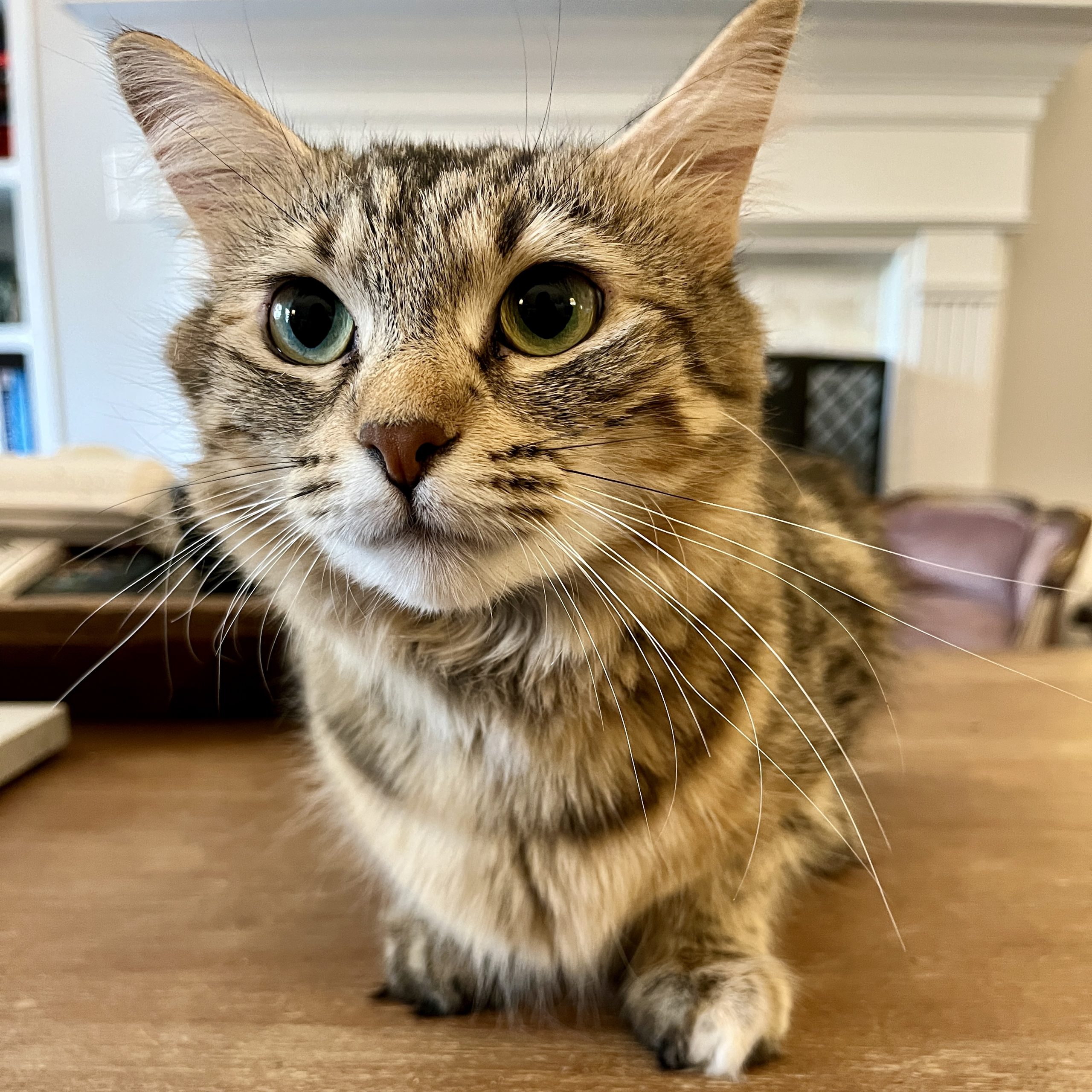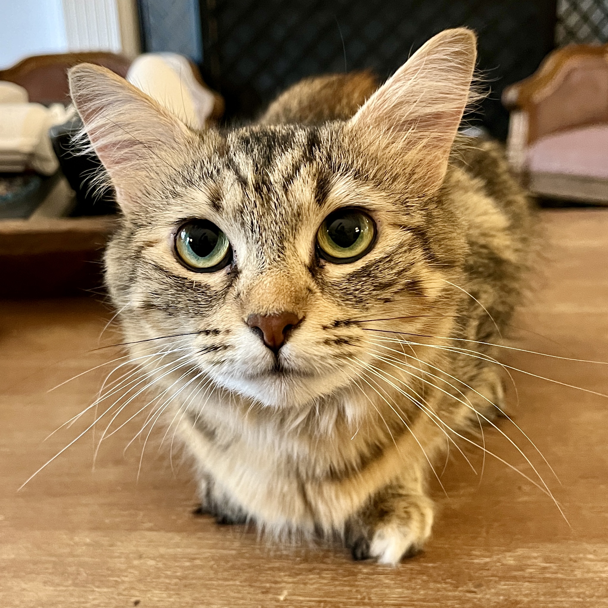Skunki Nevada came to us after another rescue reached out for assistance. It turns out they gave us a true gem of a feline. Skunki is one of the sweetest, friendliest cats ever. She loves attention from her humans and will put both paws on your shoulders and rub her face all over hers when she greets you! Skunki has spent her time in foster care raising her kittens, but she’s finally ready to let them go and land in the perfect home for her.