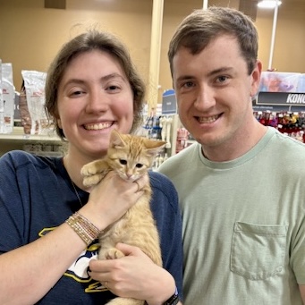 What’s cuter than a crazy big orange tom cat? Of course, it’s a tiny baby boy orange kitten named Summit! This little guy is just the best. He’s playful, friendly, curious and ready to find the perfect home. He’s from a litter of seven kittens so would do best in a home with another playful feline! He seems unbothered by the occasional loud barking by the dog in his foster home and should be fine with kids. He’s never met a stranger when it comes to people or felines!