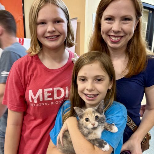 This sweet, quiet bundle of fur has the most pitiful little meow, and giant eyes that will melt your heart. As soon as you pick up and starting petting this calico baby, you'll be hit with the sweetest, loudest purrs you've ever heard. Tayto is not much for playing, but loves snuggling with her siblings, so would do well in a house with other cats.